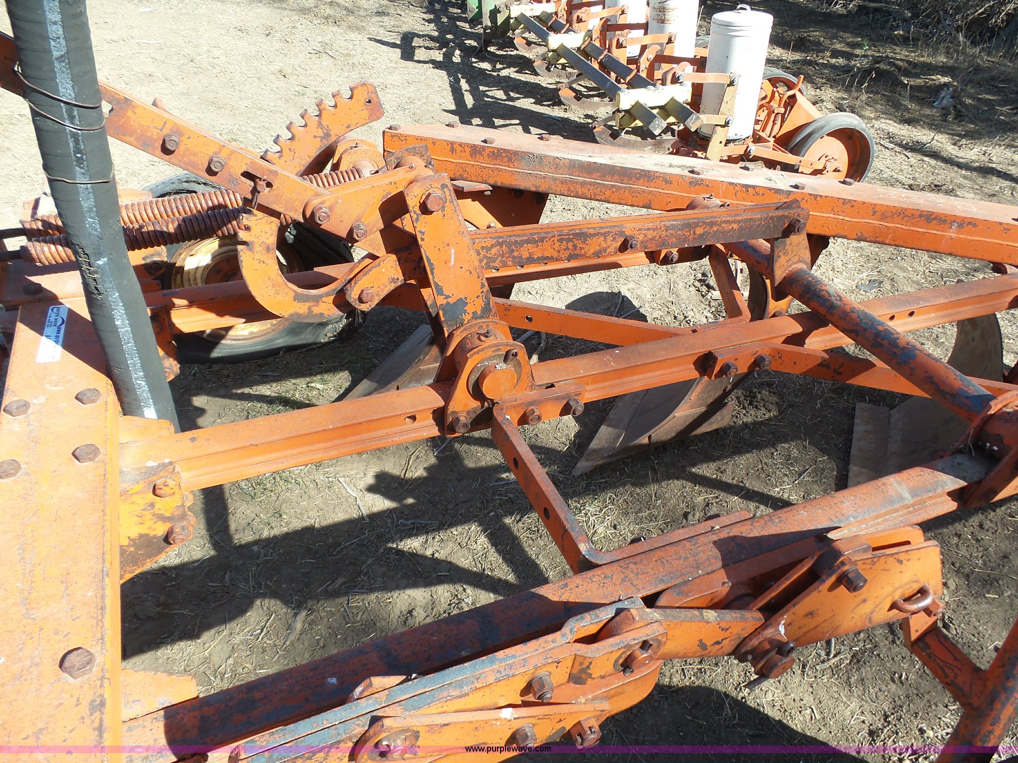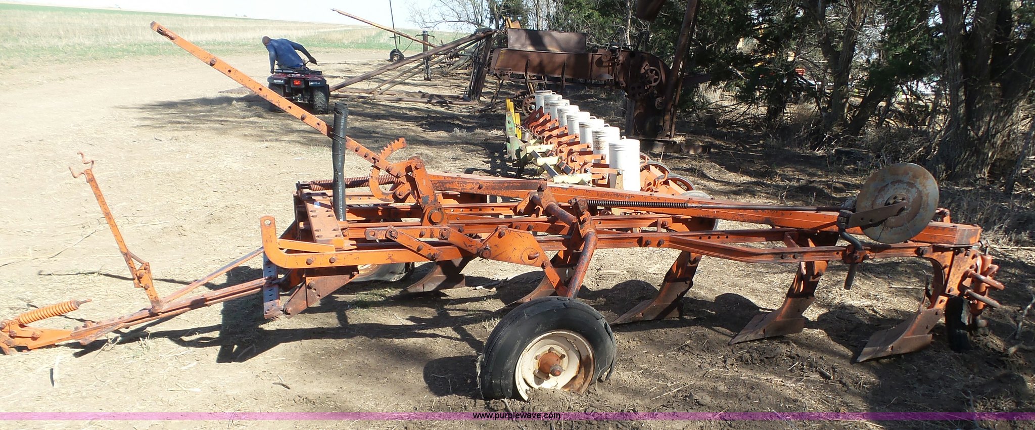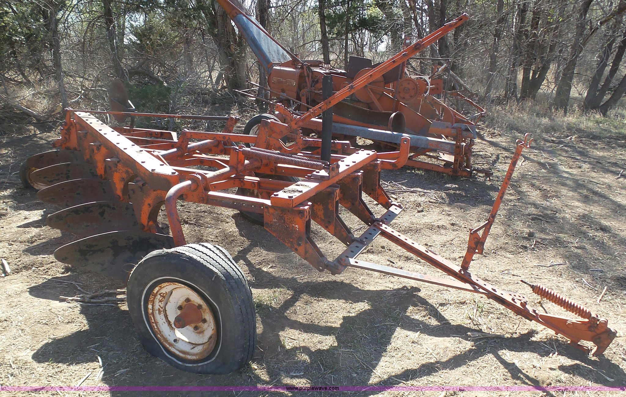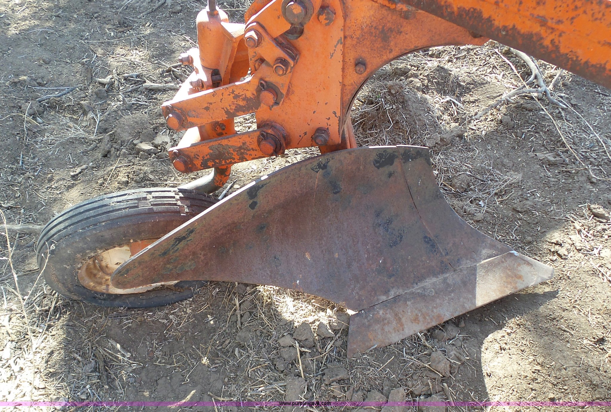 Purple Wave is selling a used Plow in Kansas. This item is a J.I. Case five bottom plow with the following: Manual adjust, 8-15-15 tires, 4.00-12 trail wheels, Tires need to be replaced