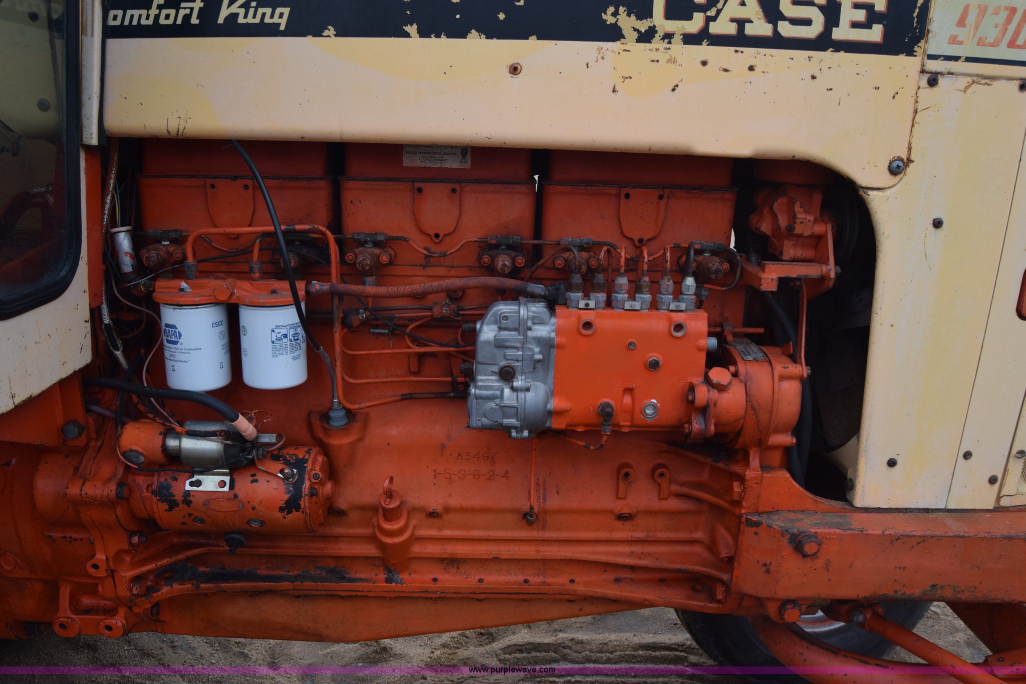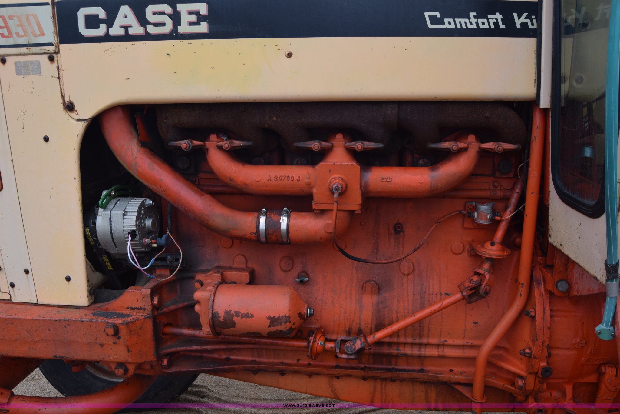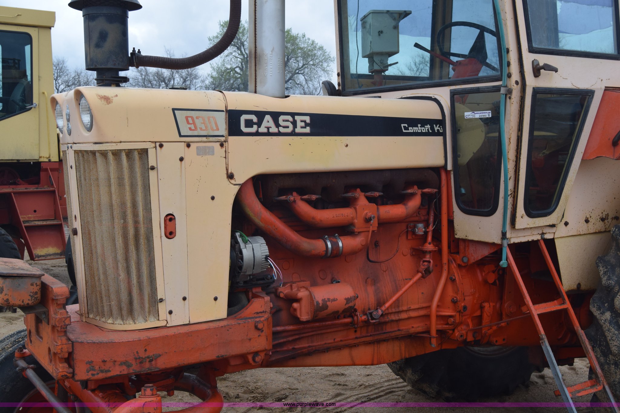 Purple Wave is selling a used Tractor in Kansas. This item is a Case 930 Comfort King tractor with the following: 9,031 hours on meter, Case 6.6L six cylinder diesel engine, Manual transmission, 6F-1R gears, Enclosed cab, Work lights, 540 PTO, (2) rear hydraulic remote sets, 48 gallon fuel tank, 84" wheelbase, 10.00-16 front tires, 18.4-38 rear tires