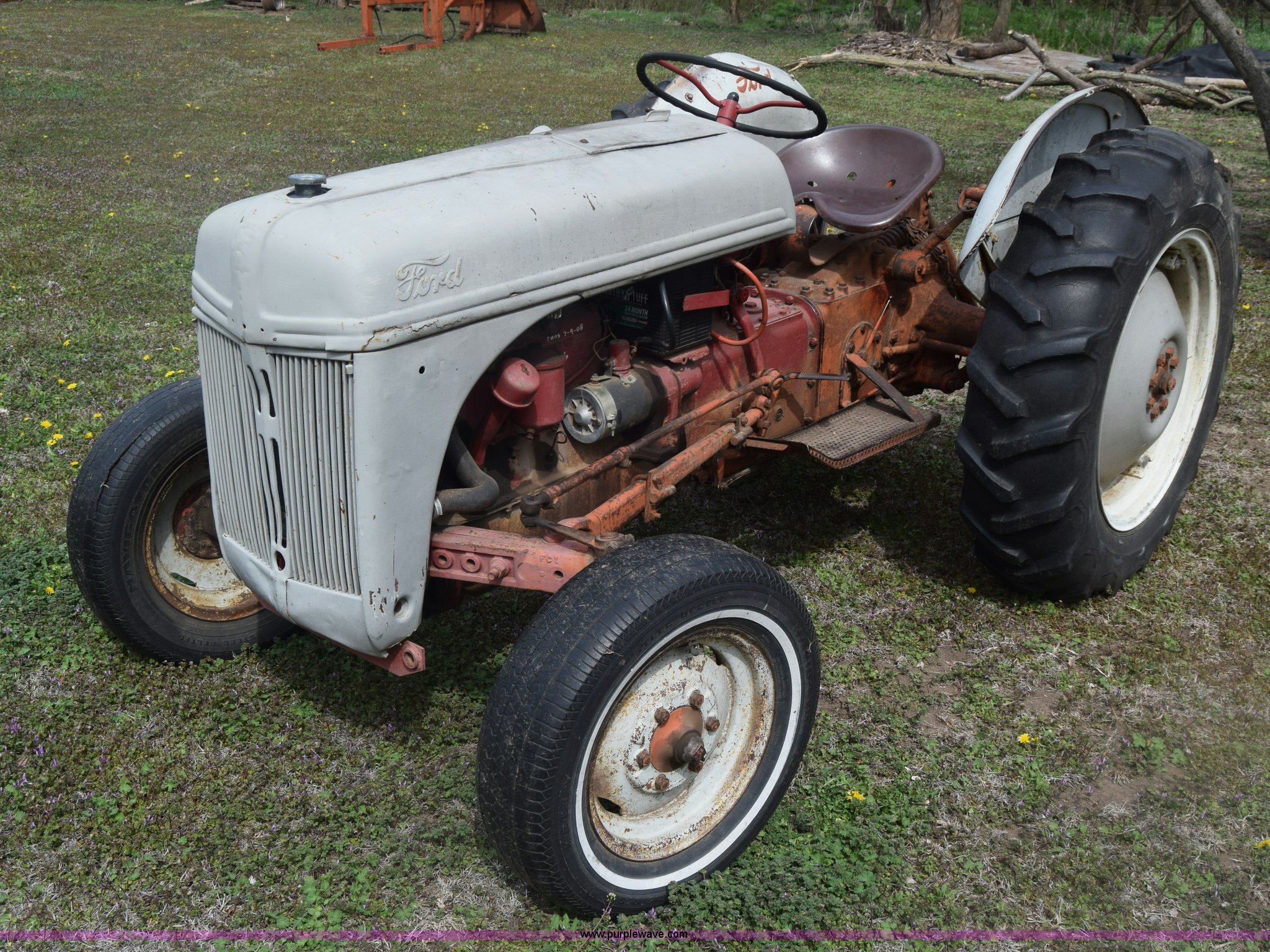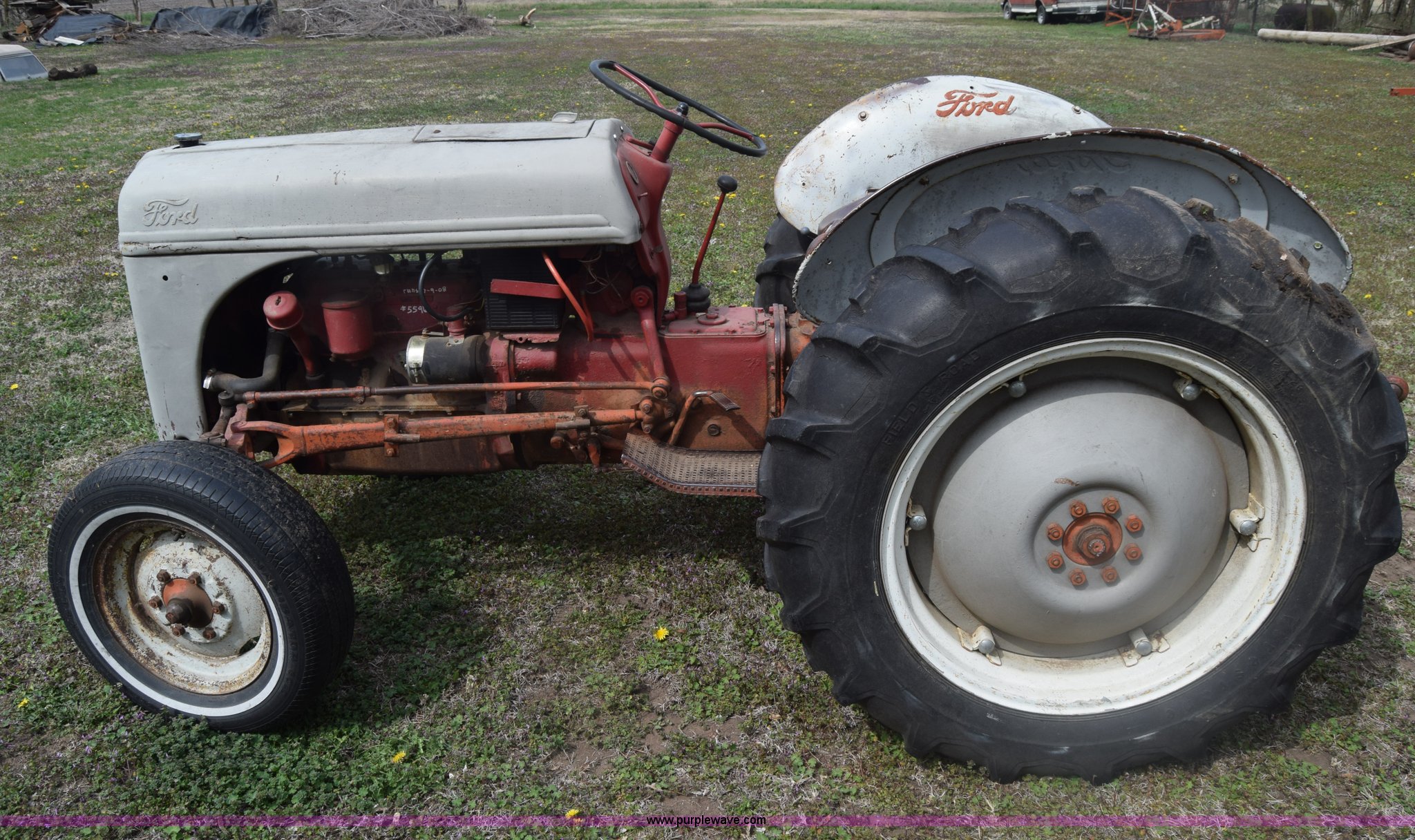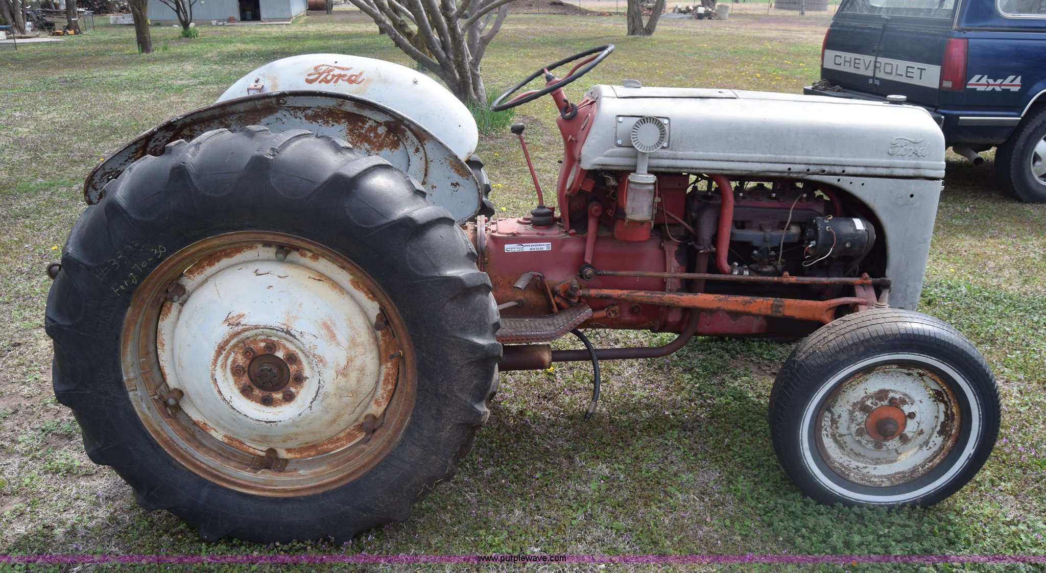 Purple Wave is selling a used Tractor in Kansas. This item is a Ford 8N tractor with the following: 5,213 hours on meter, Ford four cylinder gas engine, Manual transmission, 4F-1R gears, Ford loader, 40"W bucket, 540 PTO, 15" front wheels, 12.4-28 rear tires, Engine has been replaced