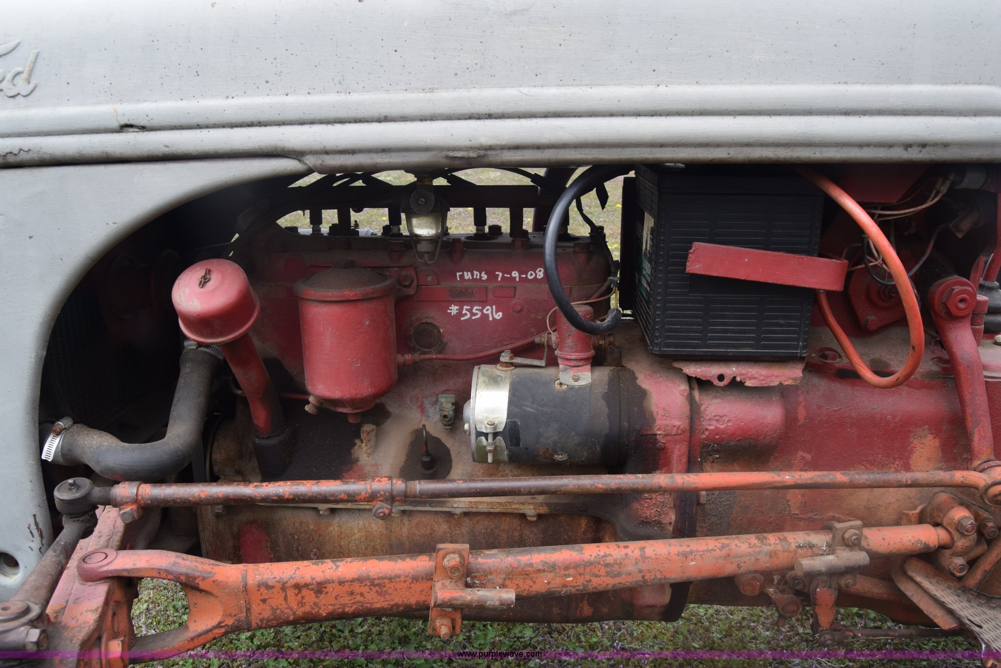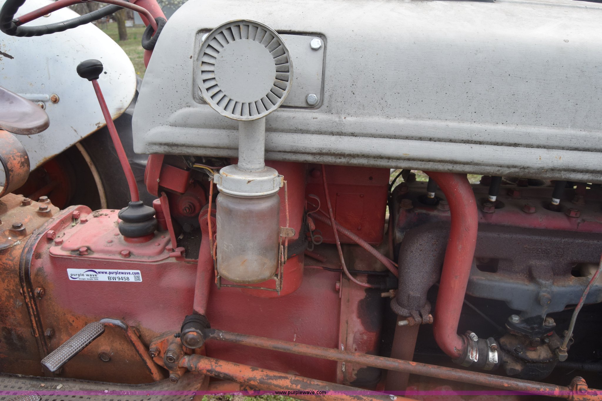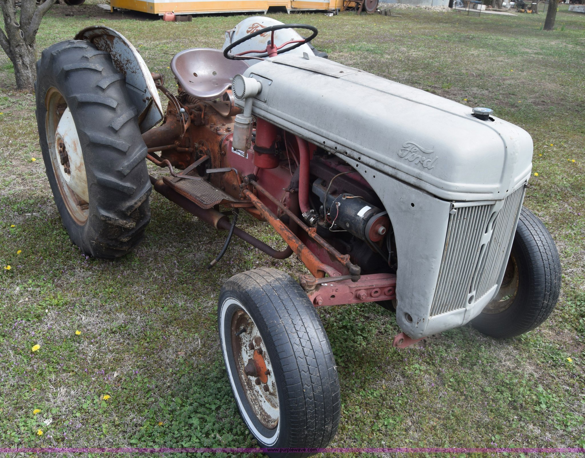 Purple Wave is selling a used Tractor in Kansas. This item is a Ford 8N tractor with the following: 5,213 hours on meter, Ford four cylinder gas engine, Manual transmission, 4F-1R gears, Ford loader, 40"W bucket, 540 PTO, 15" front wheels, 12.4-28 rear tires, Engine has been replaced