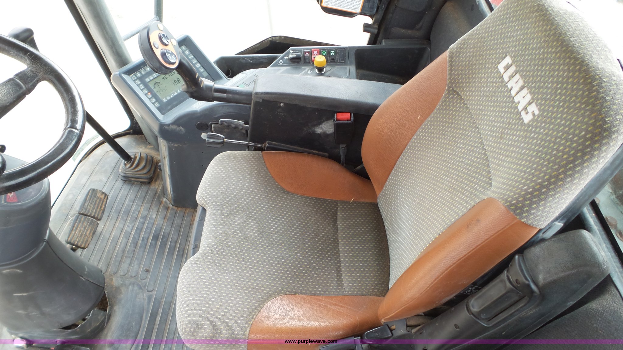 Purple Wave is selling a used Forage Harvester in Texas. This item is a 2006 Claas 900 forage harvester with the following: 6,195 engine hours on meter, 4,579 cutting hours on meter, Mercedes Benz eight cylinder turbo diesel engine, Hydrostatic transmission, AC and heat, Tilt steering wheel, AM/FM, Suspension seat, Instructor's seat, On-board air, High arch spout, Hydraulic adjust, 800/65R32 front tires, 540/65R24 rear tires, Serial 49205196