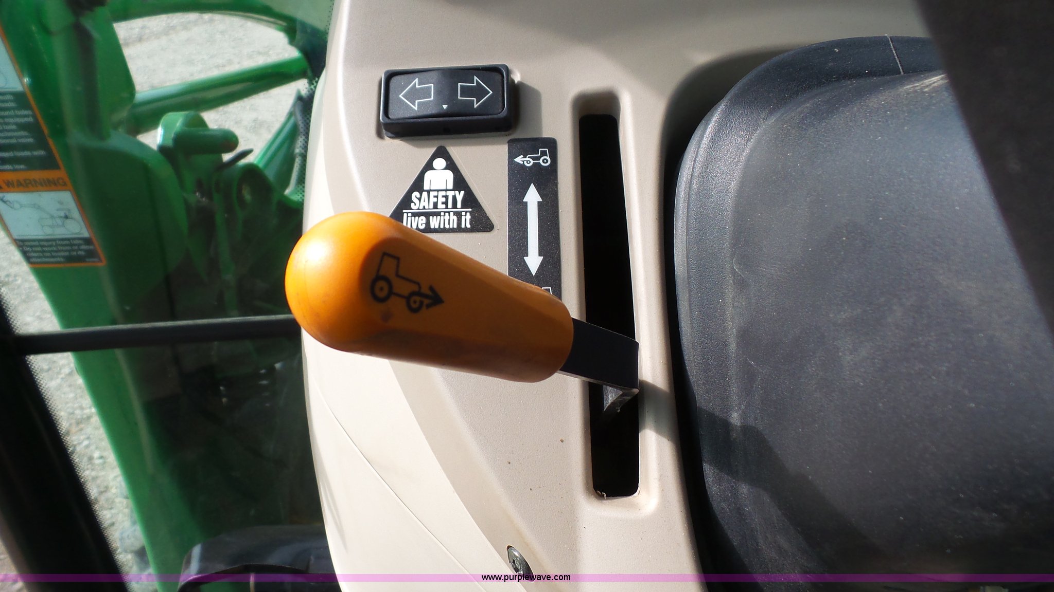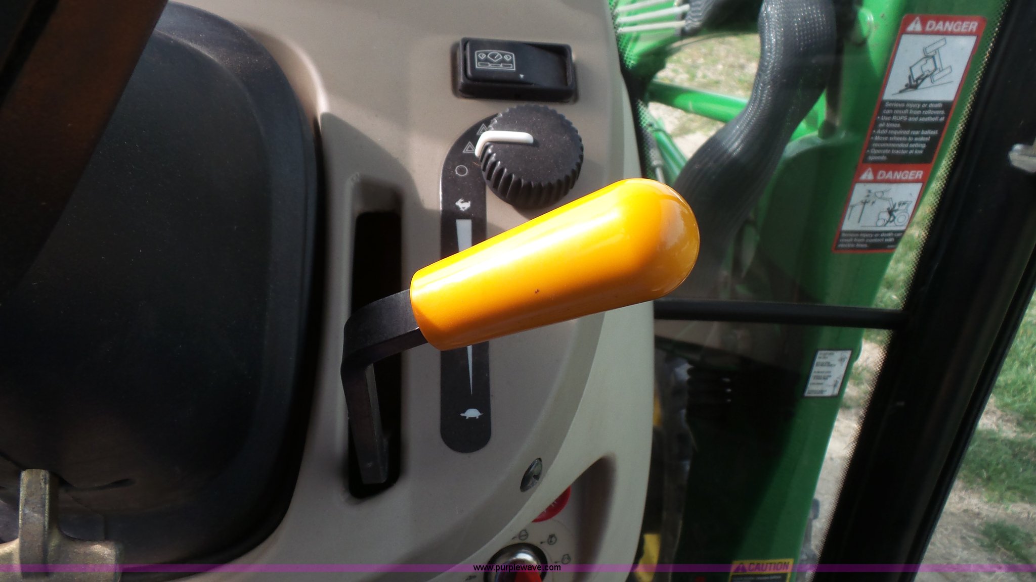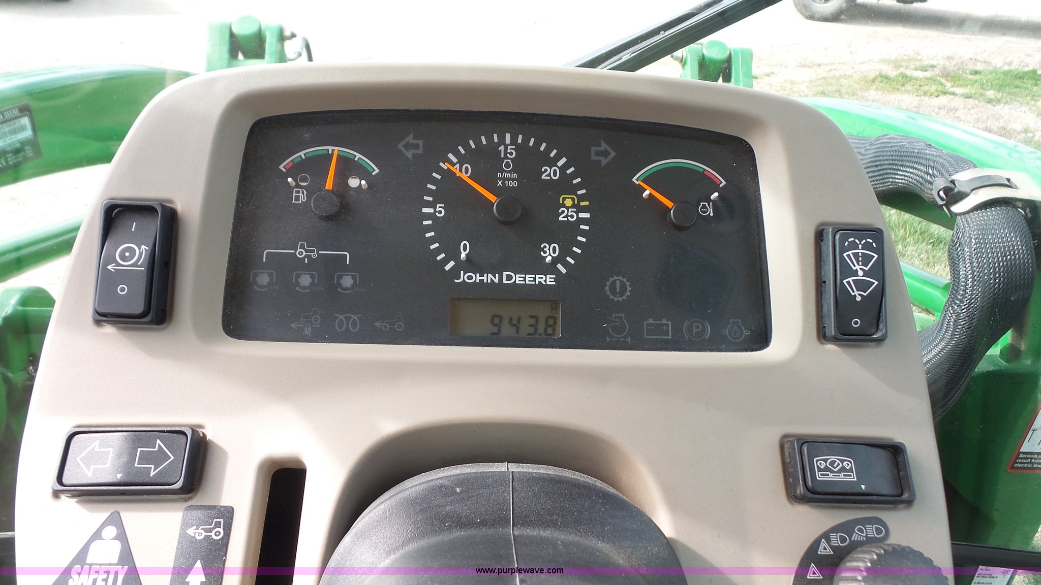 Purple Wave is selling a used Tractor in Kansas. This item is a 2007 John Deere 4720 MFWD tractor with the following: 944 hours on meter, John Deere 4024TLV08 four cylinder diesel engine, Serial PE4024T112387, Three speed hydrostatic transmission, AC and heat, Tilt steering wheel, Cruise, AM/FM/CD/weatherband, Air suspension seat, Grill guard, John Deere 400LX loader, 73"W bucket, Self-leveling, Joystick controls, Three point, Hydraulic top and side link, 540 PTO, (3) rear hydraulic remote sets, 10-16.5 front tires, 17.5-24 rear tires, One owner, Serial LV4720H470227