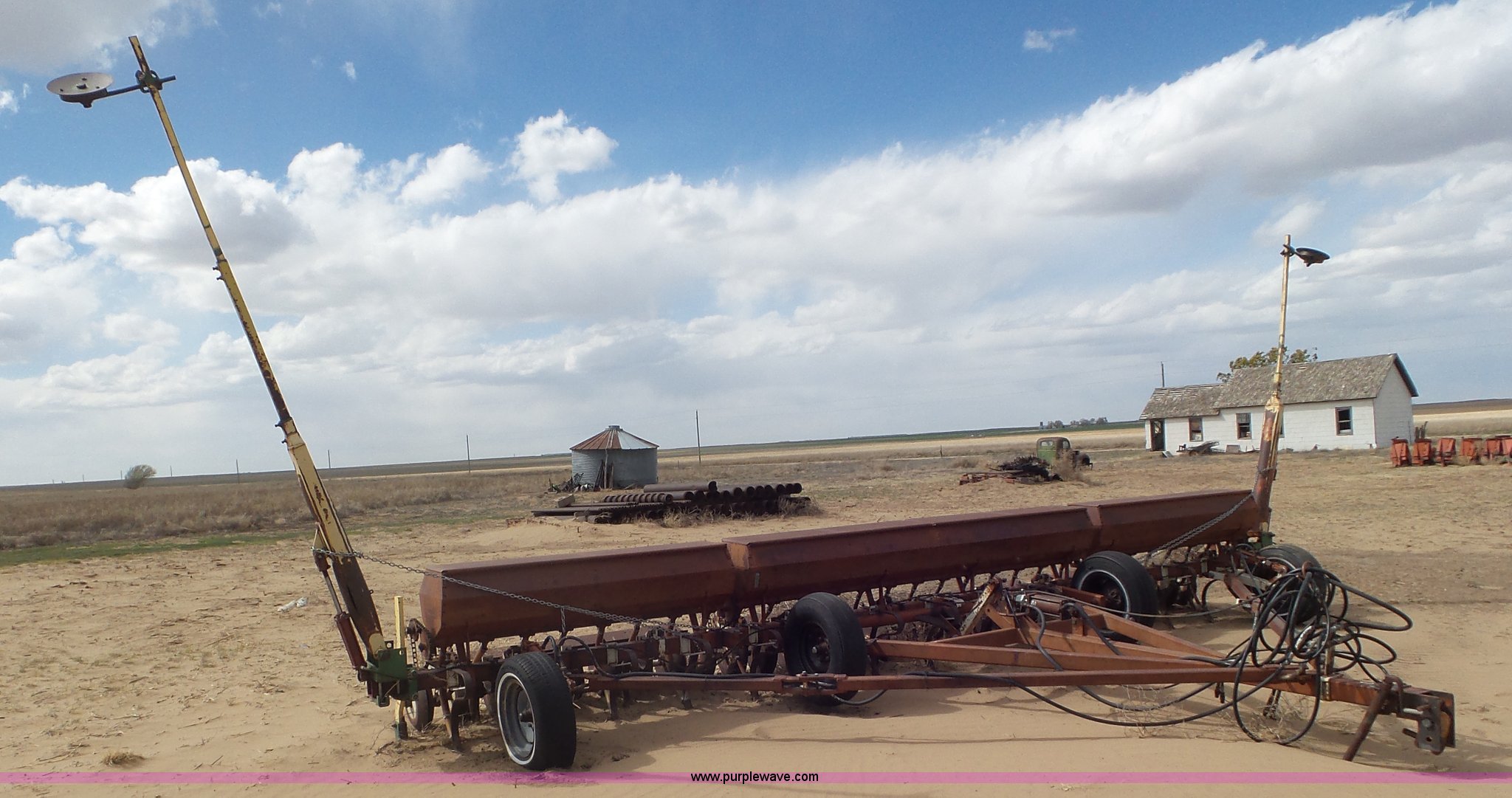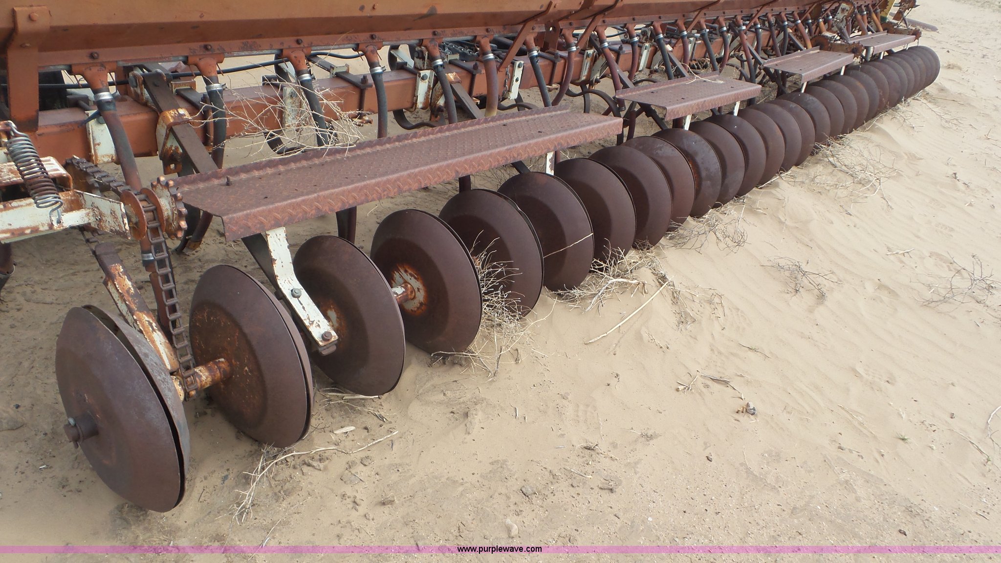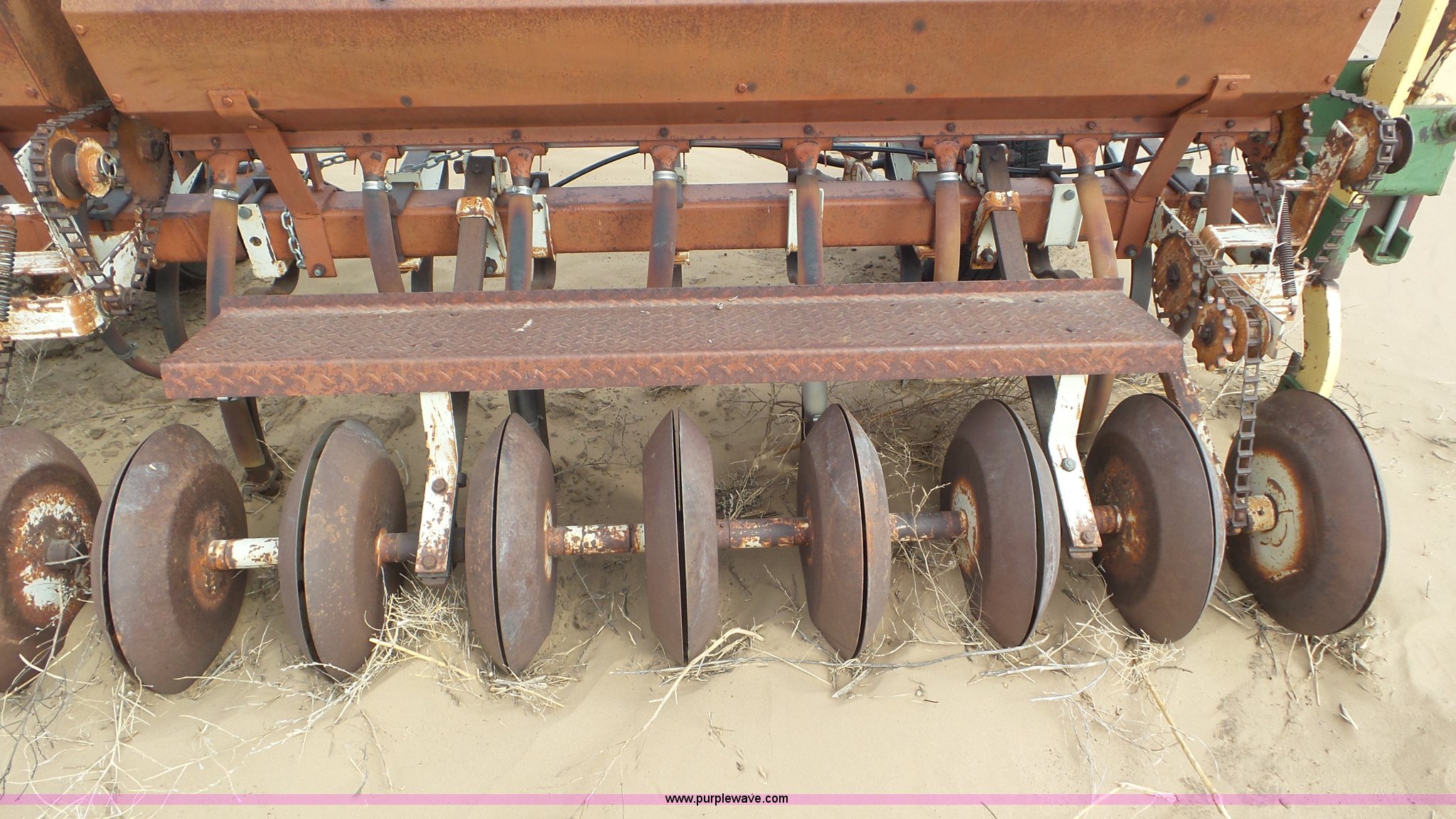 Purple Wave is selling a used Grain Drill or Seeder in Kansas. This item is a CrustBuster hoe drill with the following: 24'W, 10" spacing, Hydraulic fold markers, Pin hitch, 14" tires, Serial 1041