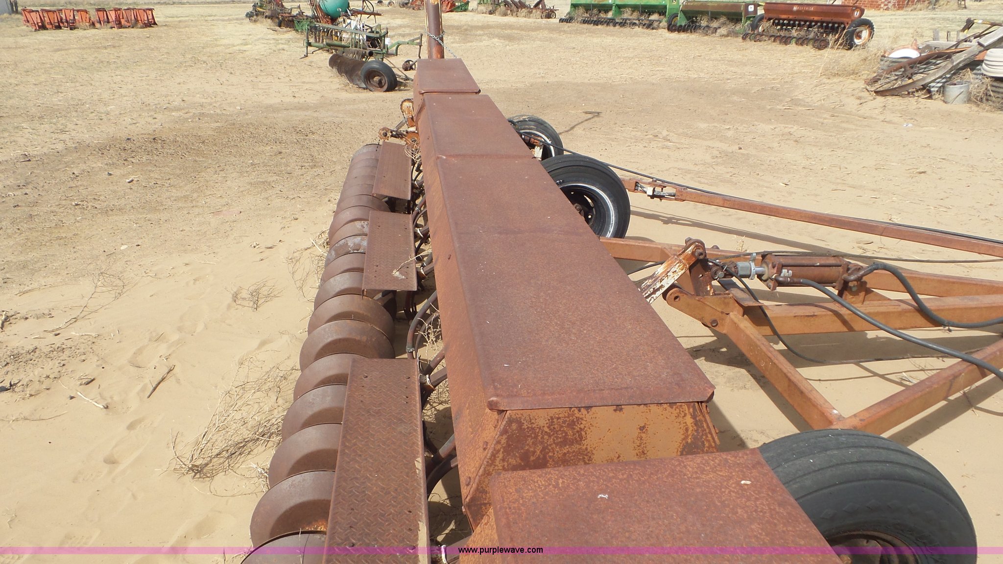 CrustBuster hoe drill. 24'W, 10" spacing, Hydraulic fold markers, Pin hitch, 14" tires, Serial 1041. Paul & Rena Hershey Living Trust. Rolla, KS 67954