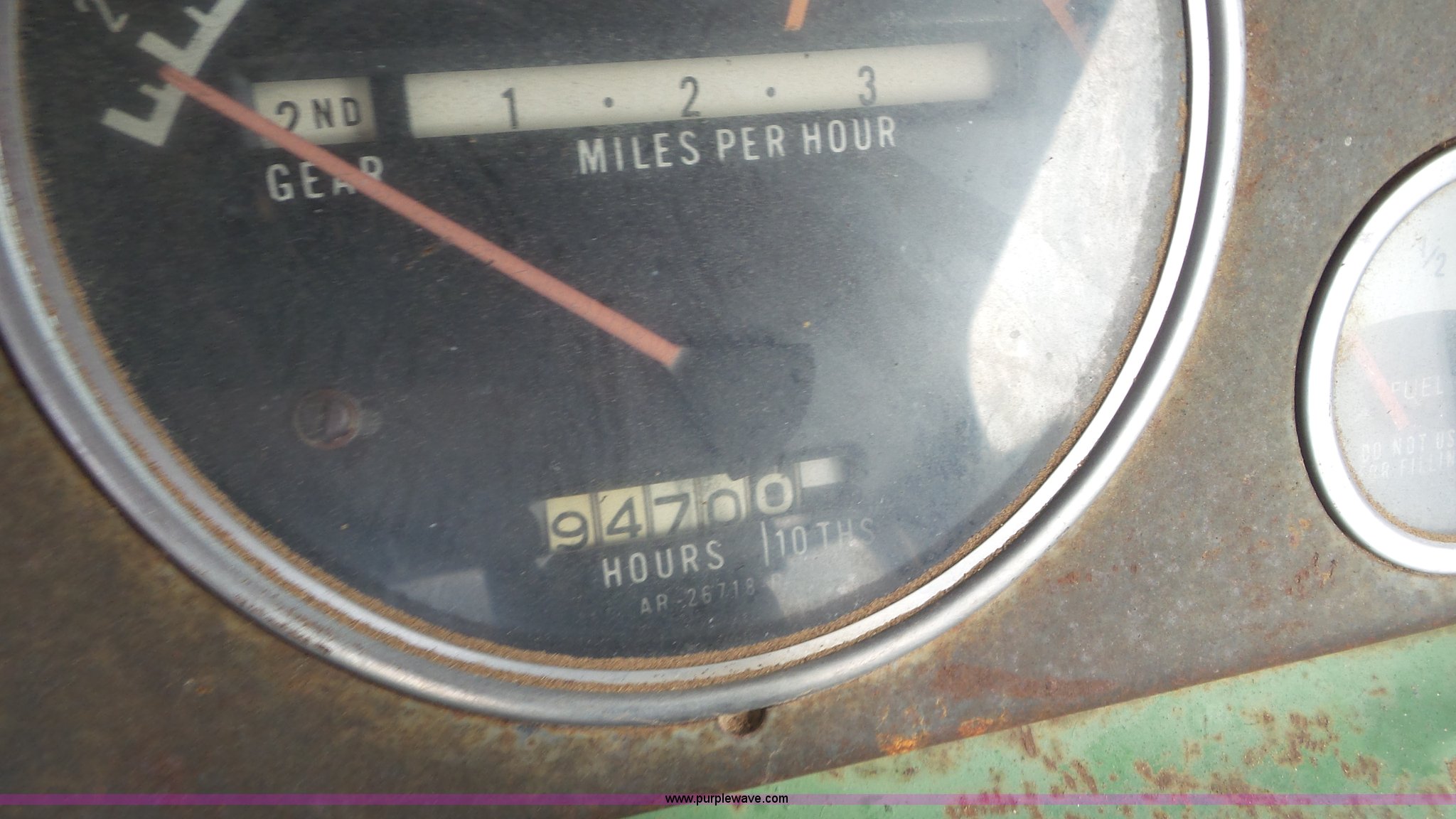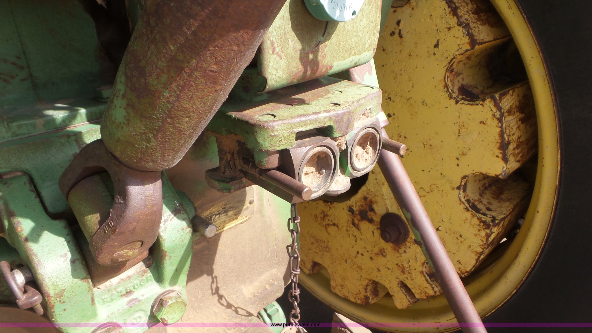 Purple Wave is selling a used Tractor in Kansas. This item is a 1963 John Deere 4010 tractor with the following: 9.470 hours on meter, John Deere 4.9L six cylinder propane engine, Partial syncro transmission, 8F-3R gears, Heat, Suspension seat, Three point, Top link, 540 PTO, Rear hydraulic remote set, (3) suitcase weights, (2) rear wheel weights, 7.5-15 front tires, 18.4-34 rear tires, Cracked glass, Non-operational unit, Serial 46441