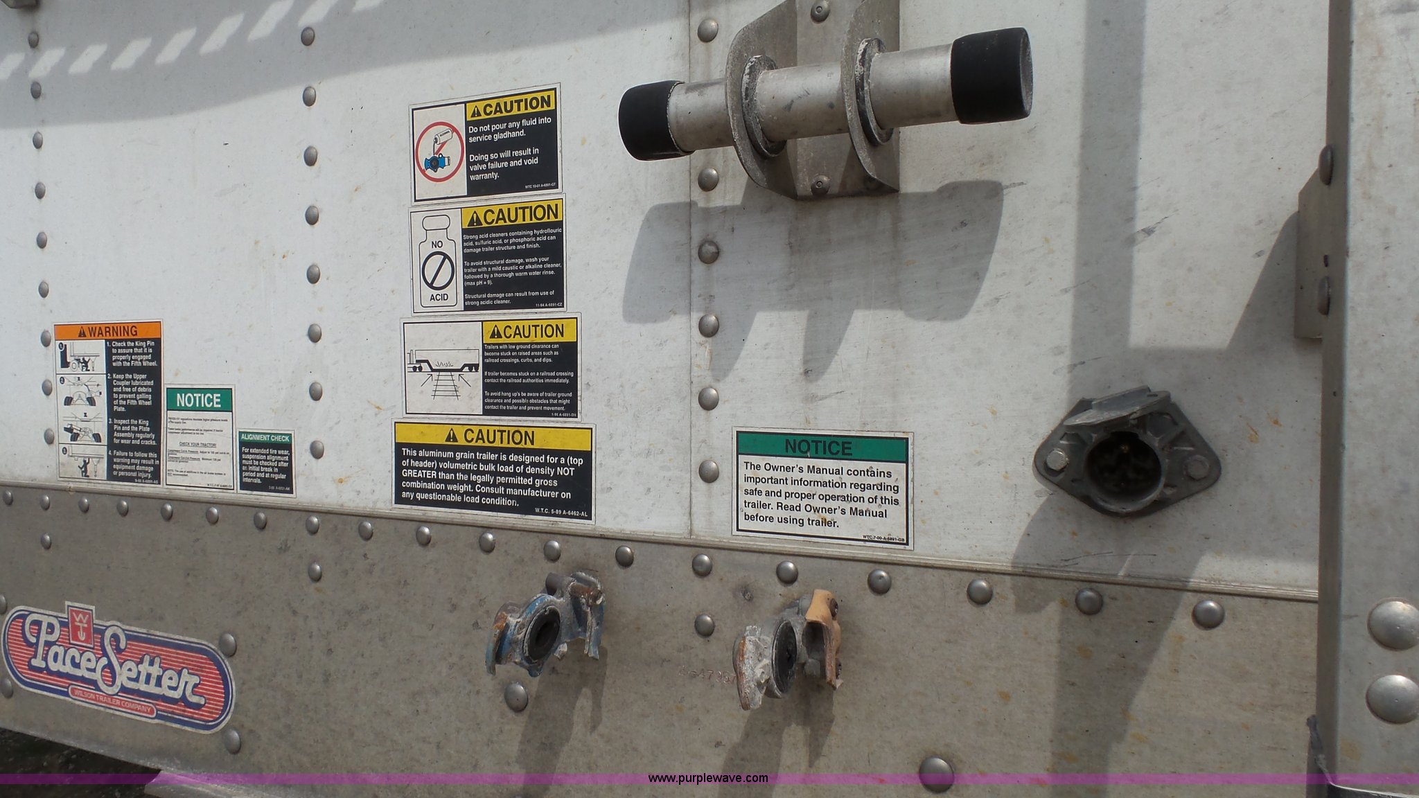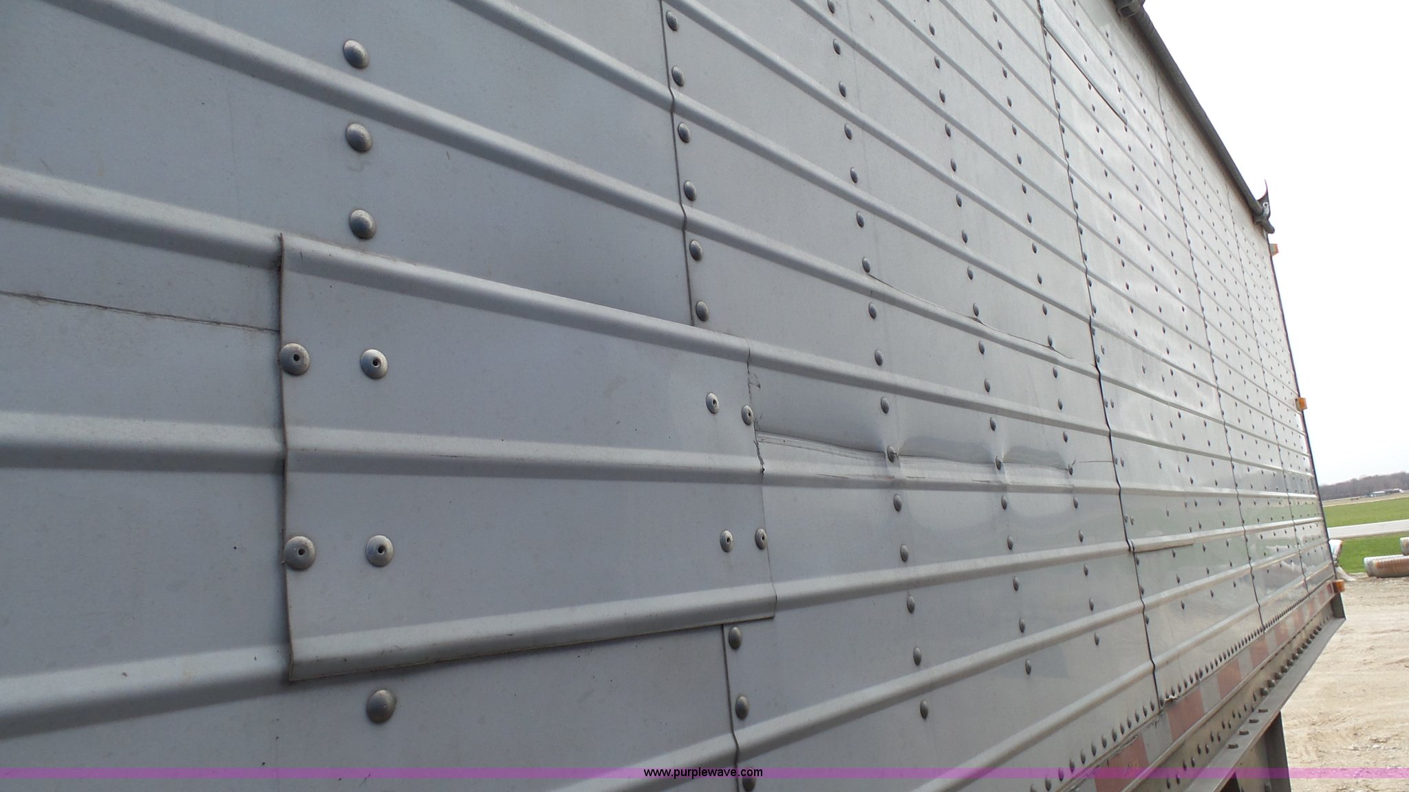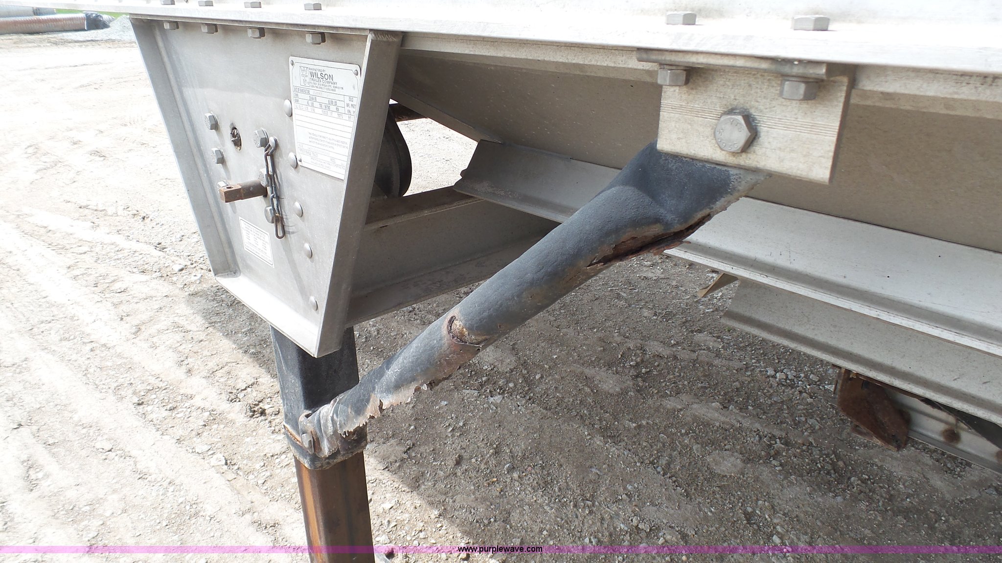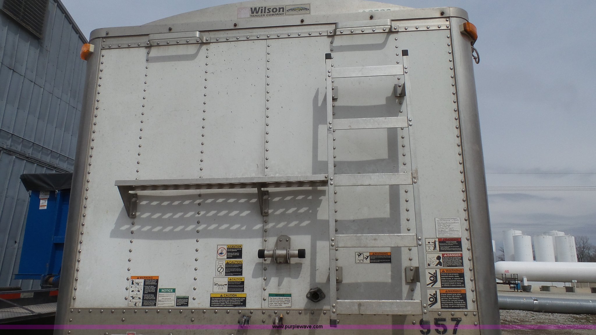 Purple Wave is selling a used Grain or Commodity Trailer in Indiana. This item is a 2007 Wilson double hopper grain trailer with the following: 42'L x 8'W, Manual trap gates, Manual rollover tarp, Front and rear access ladders, Aluminum construction, Fifth wheel plate, Dual leg landing gear, Air suspension, Air brakes, Aluminum wheels, 11R24.5 tires, GVWR 65,000 lbs