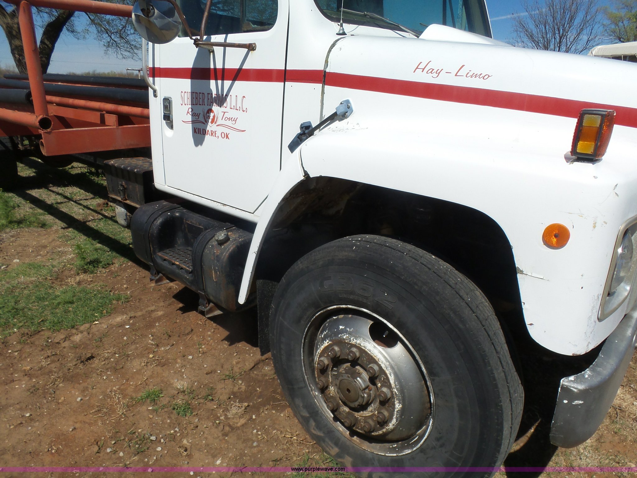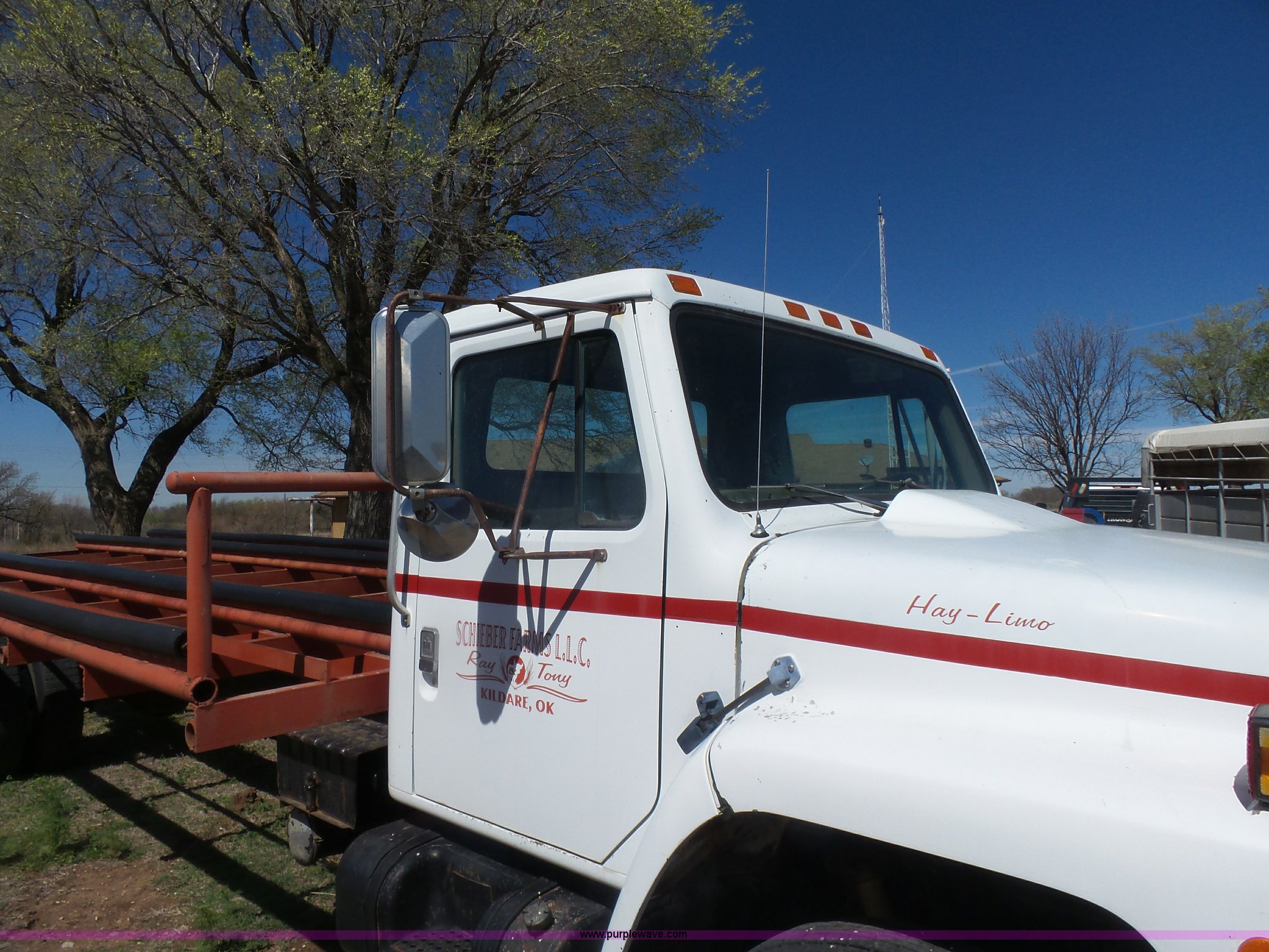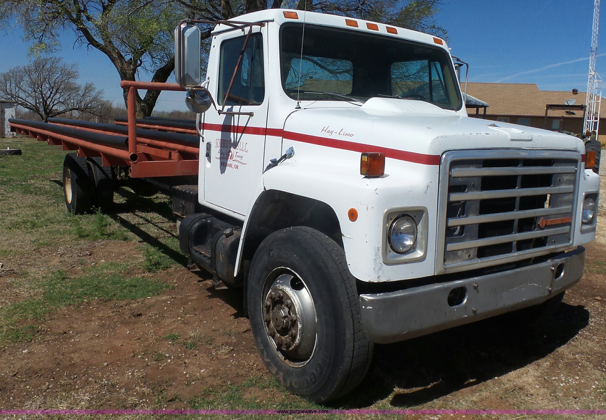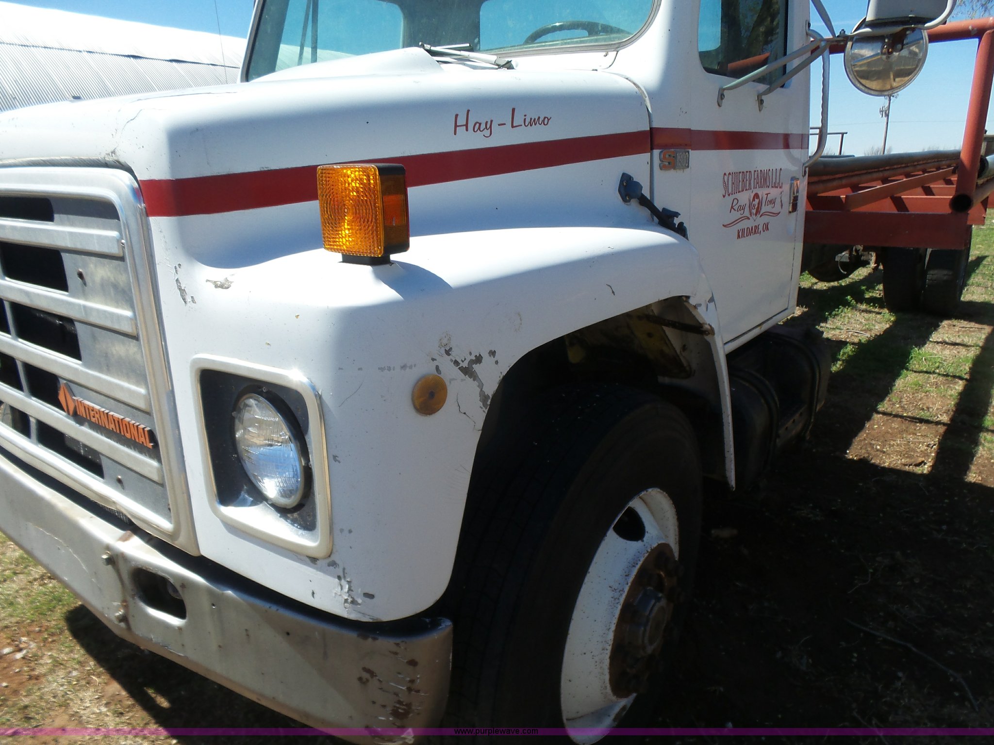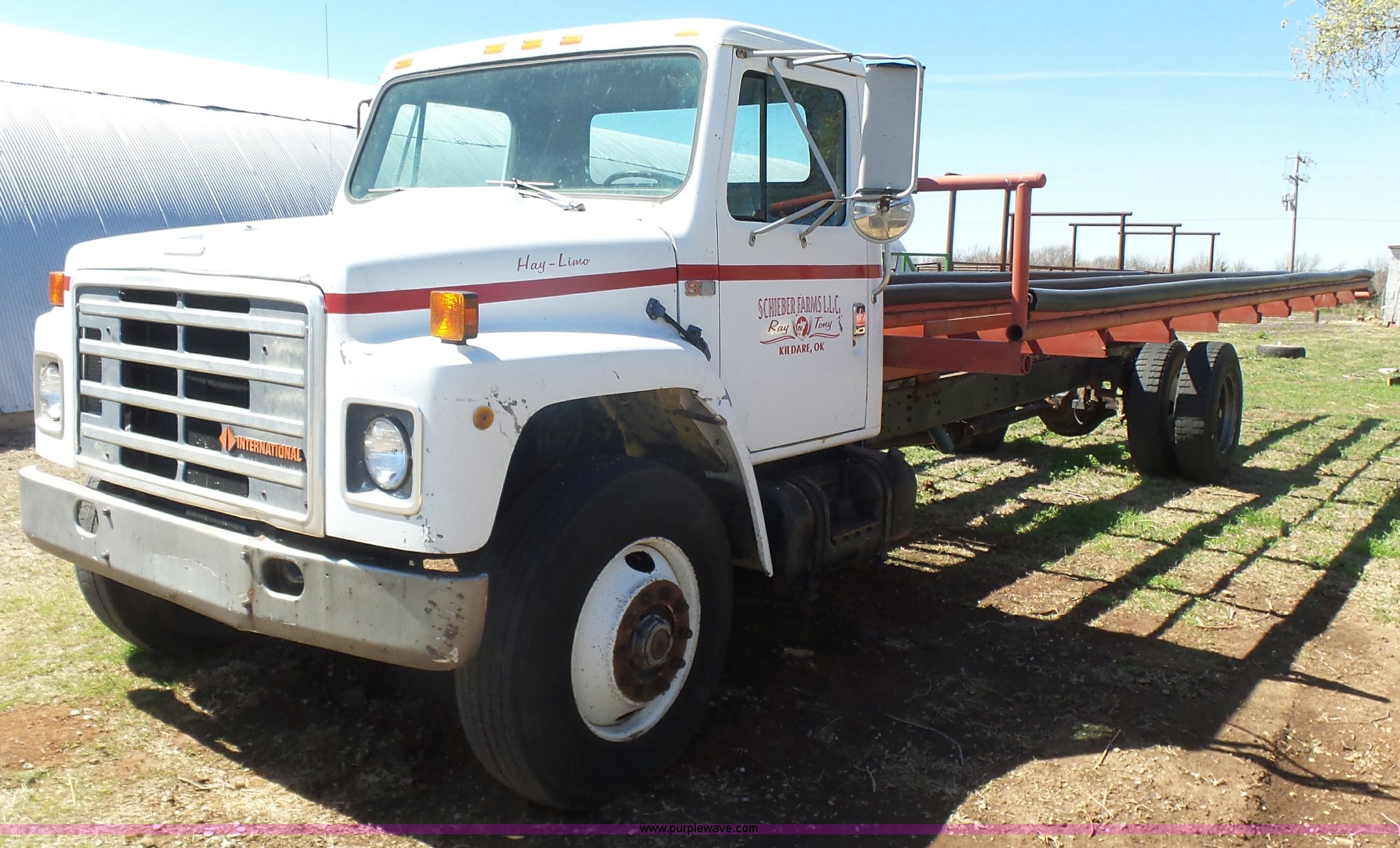 Purple Wave is selling a used Flat Bed Truck in Oklahoma. This item is a 1985 International S1900 Hay-Limo truck with the following: 305,498 miles on odometer, Six cylinder diesel engine, Five speed manual transmission, Two speed rear end, Manual windows and locks, Vinyl interior, 30'L x 10'W bed, Harsh dual ram hoist, Spring suspension, 11R22.5 tires