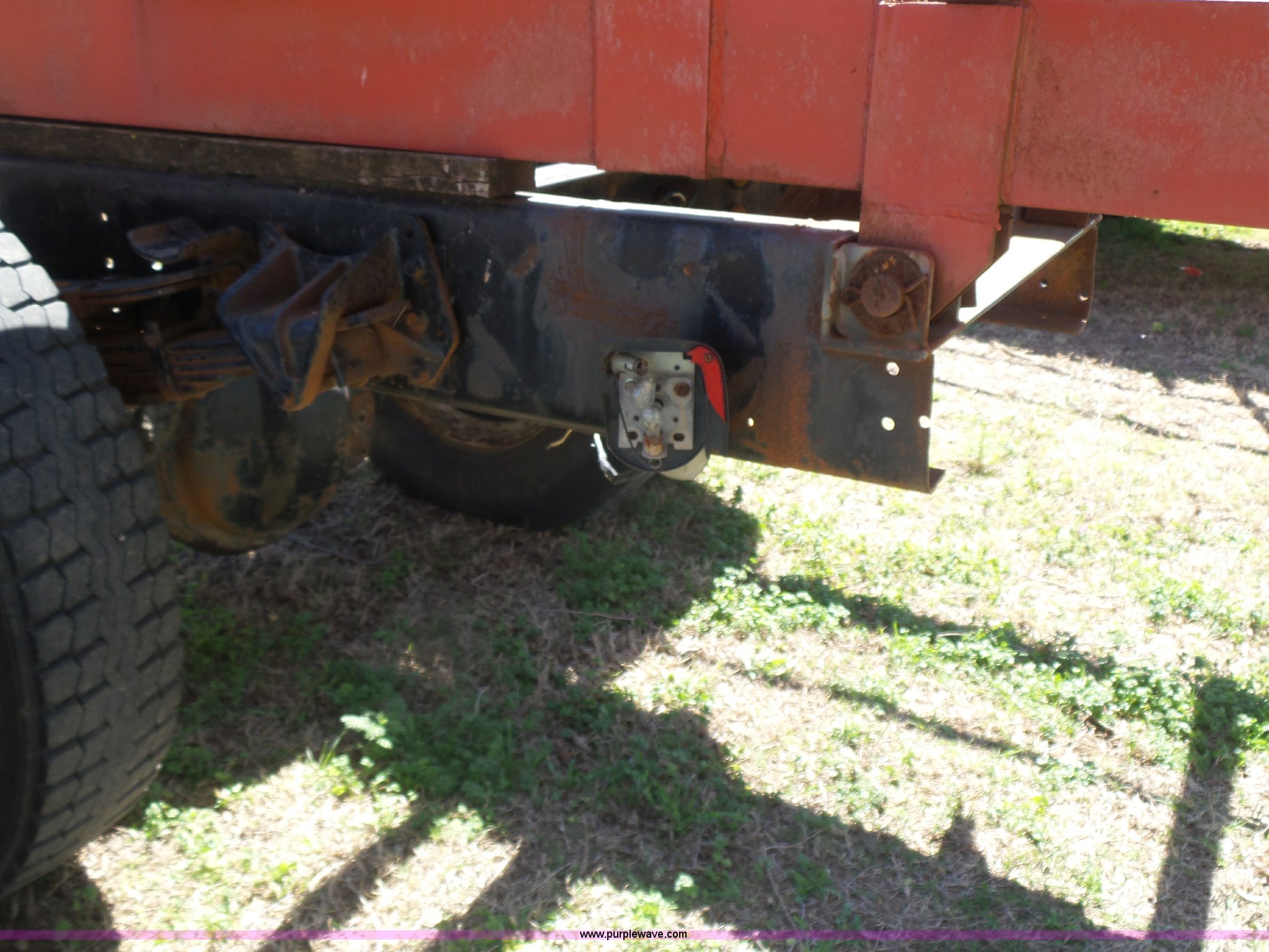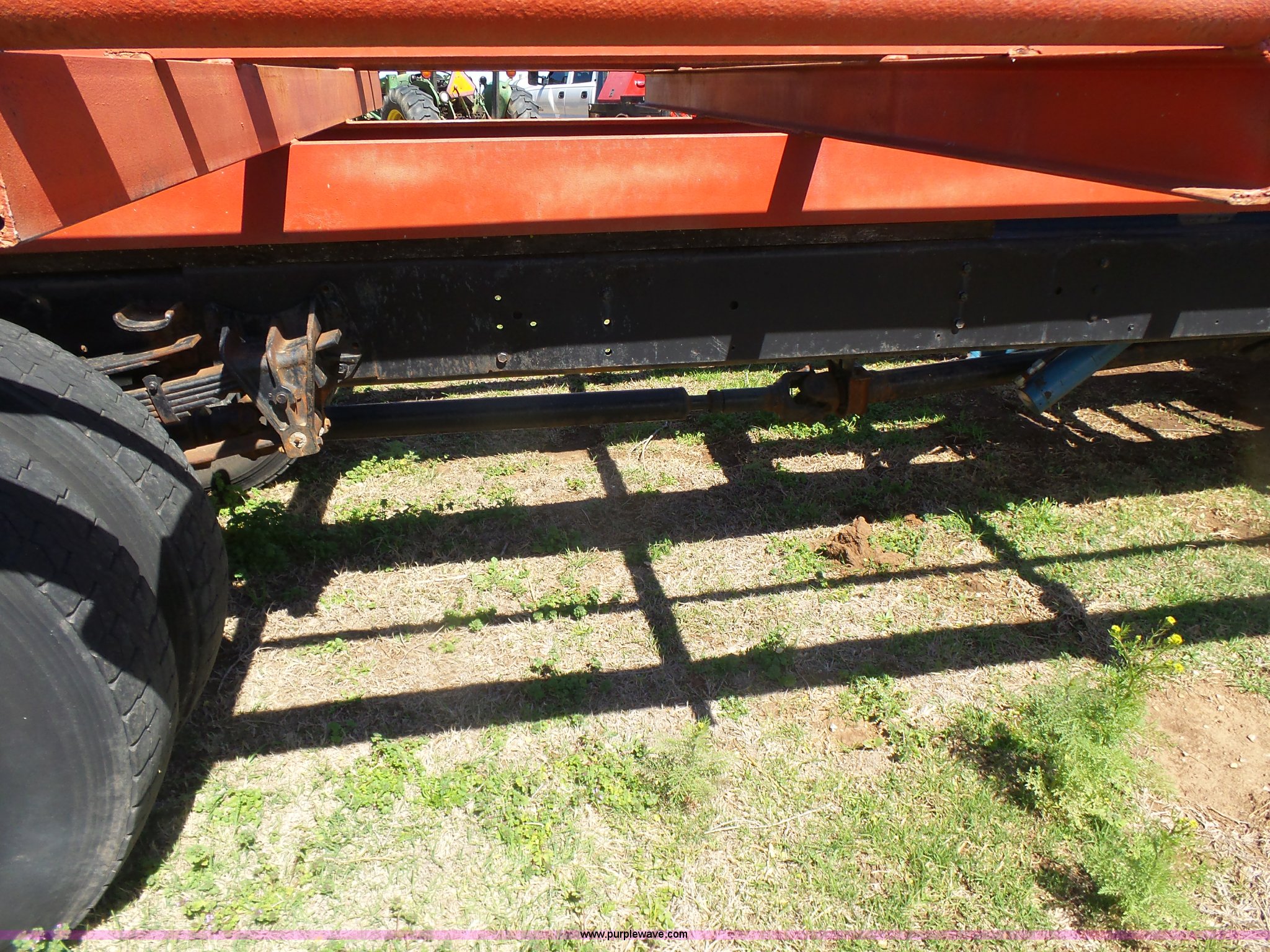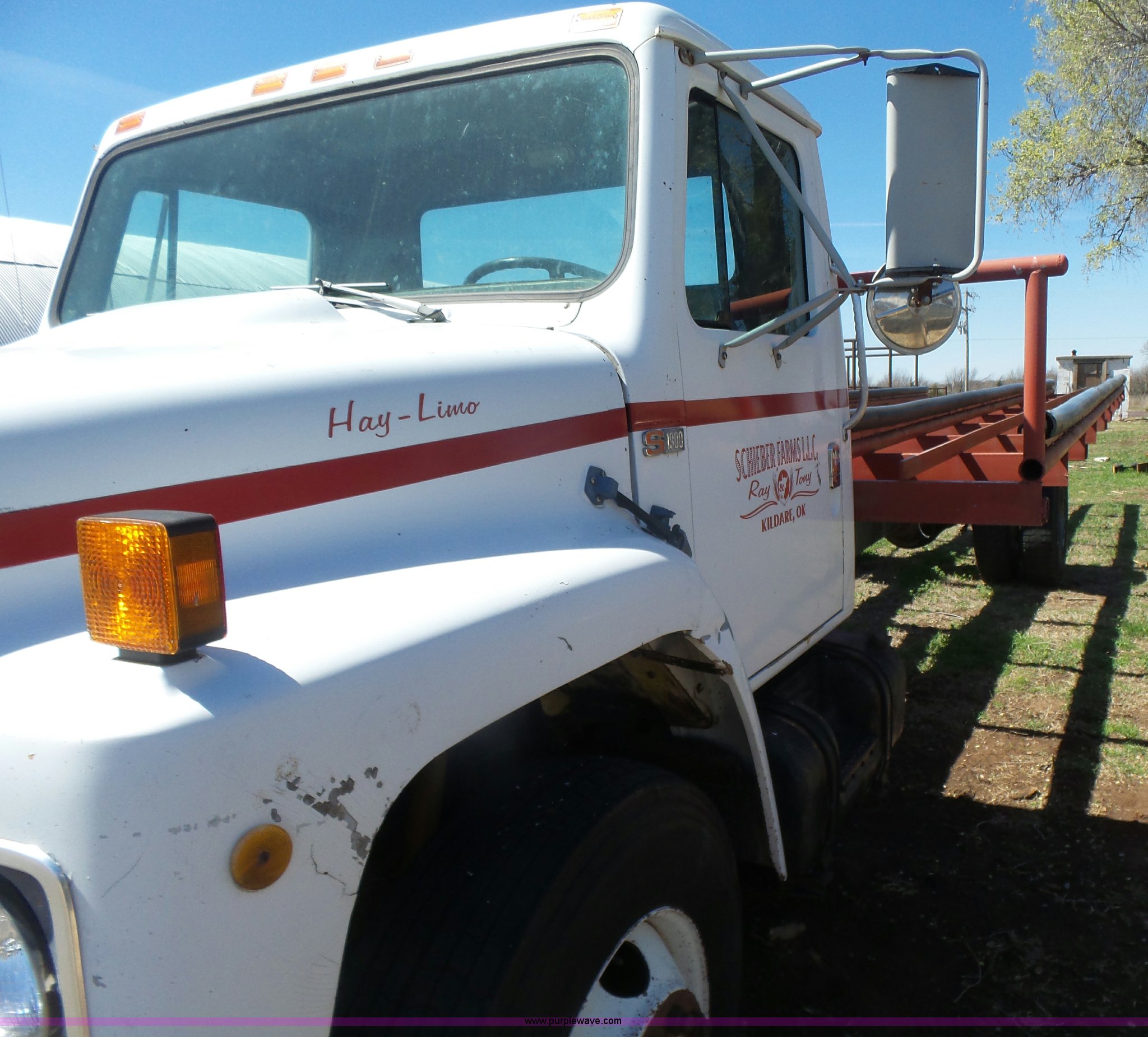 1985 International S1900 Hay-Limo truck. 305,498 miles on odometer, Six cylinder diesel engine, Five speed manual transmission, Two speed rear end, Manual windows and locks, Vinyl interior, 30'L x 10'W bed Harsh dual ram hoist, Spring suspension, 11R22.5 tires. Oklahoma title. 1HTLDUXP4FHA25043. Schieber Farms. Ponca City, OK 74604