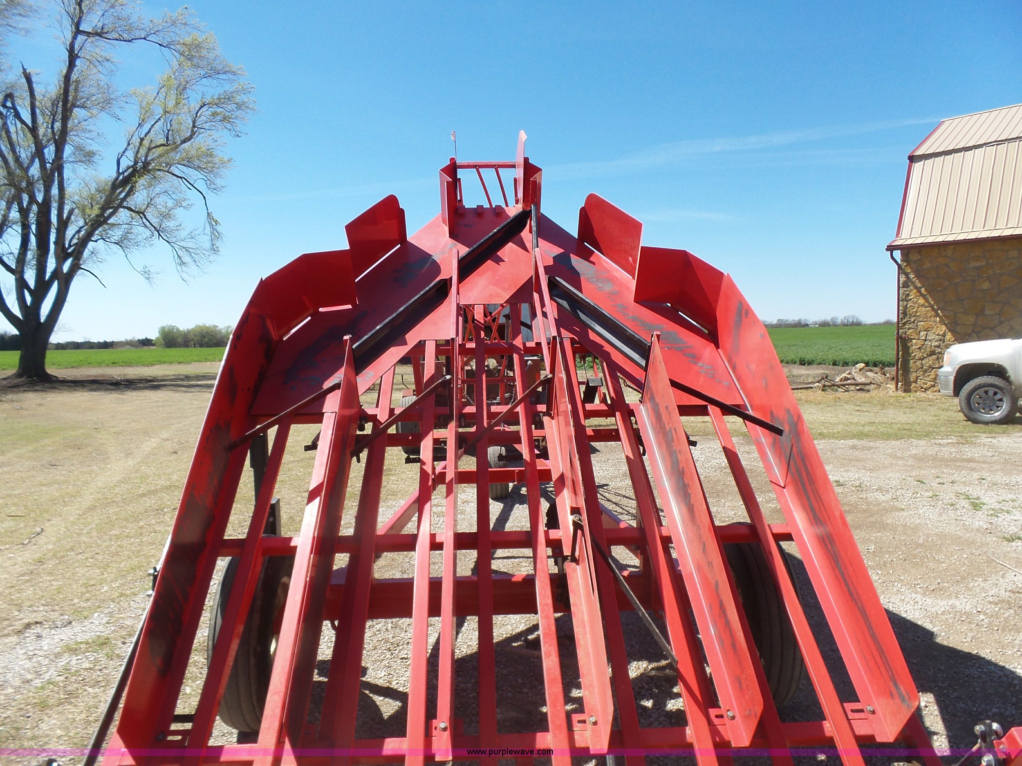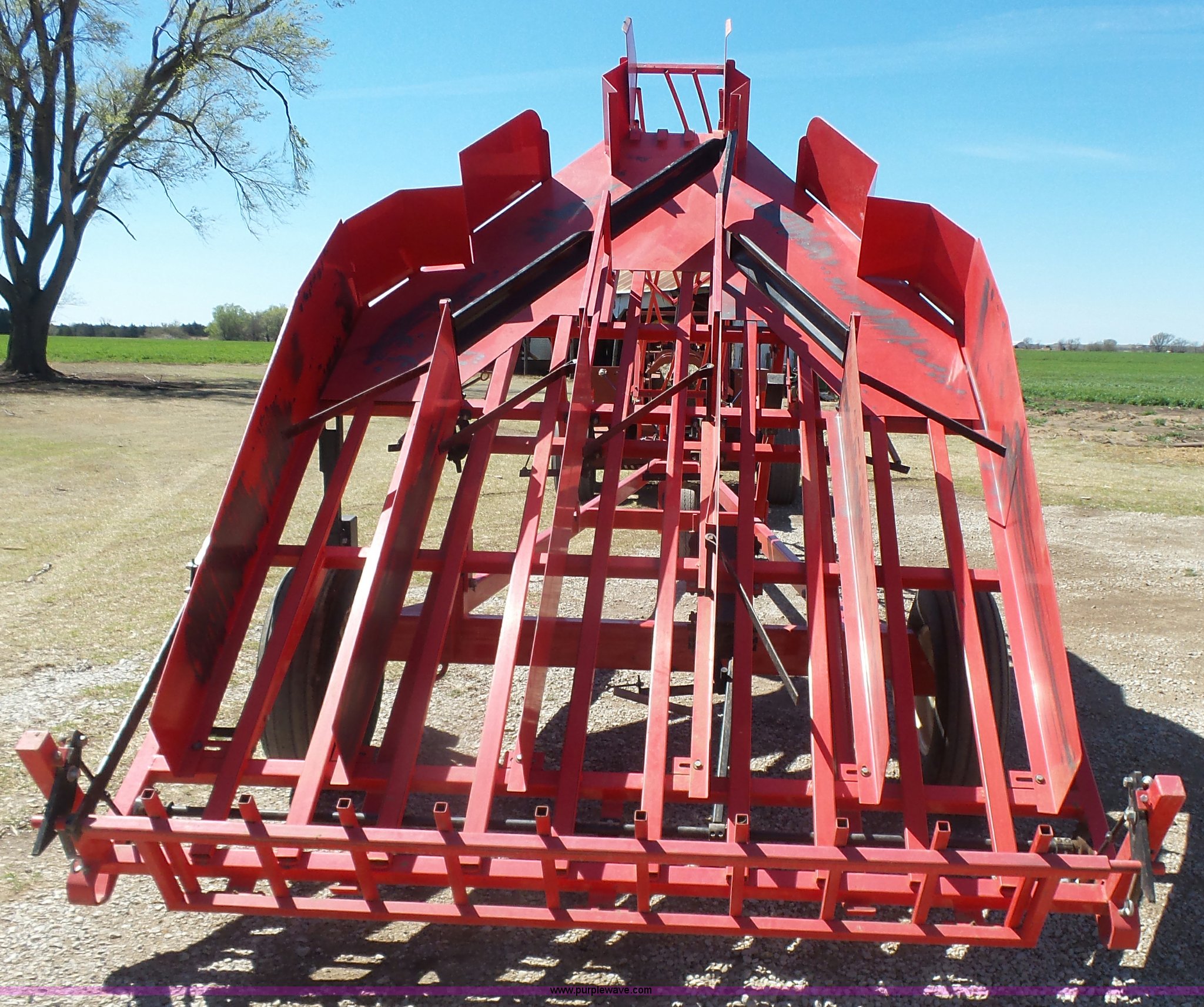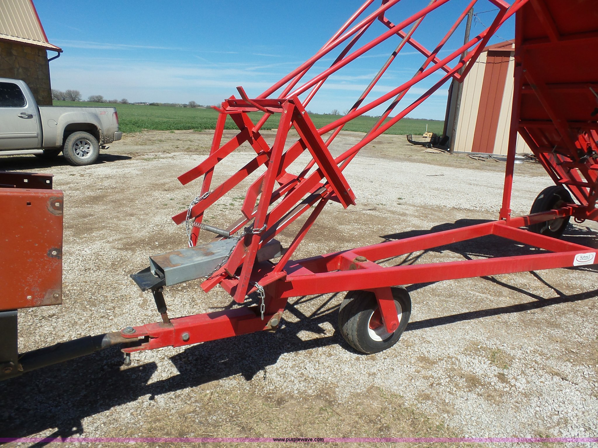 Purple Wave is selling a used Hay Handling in Oklahoma. This item is a Kuhn hay accumulator with the following: 10 bale capacity, Mechanical operation, 20.5x8.0-10 dolly tire, 9.50L-15SL tires