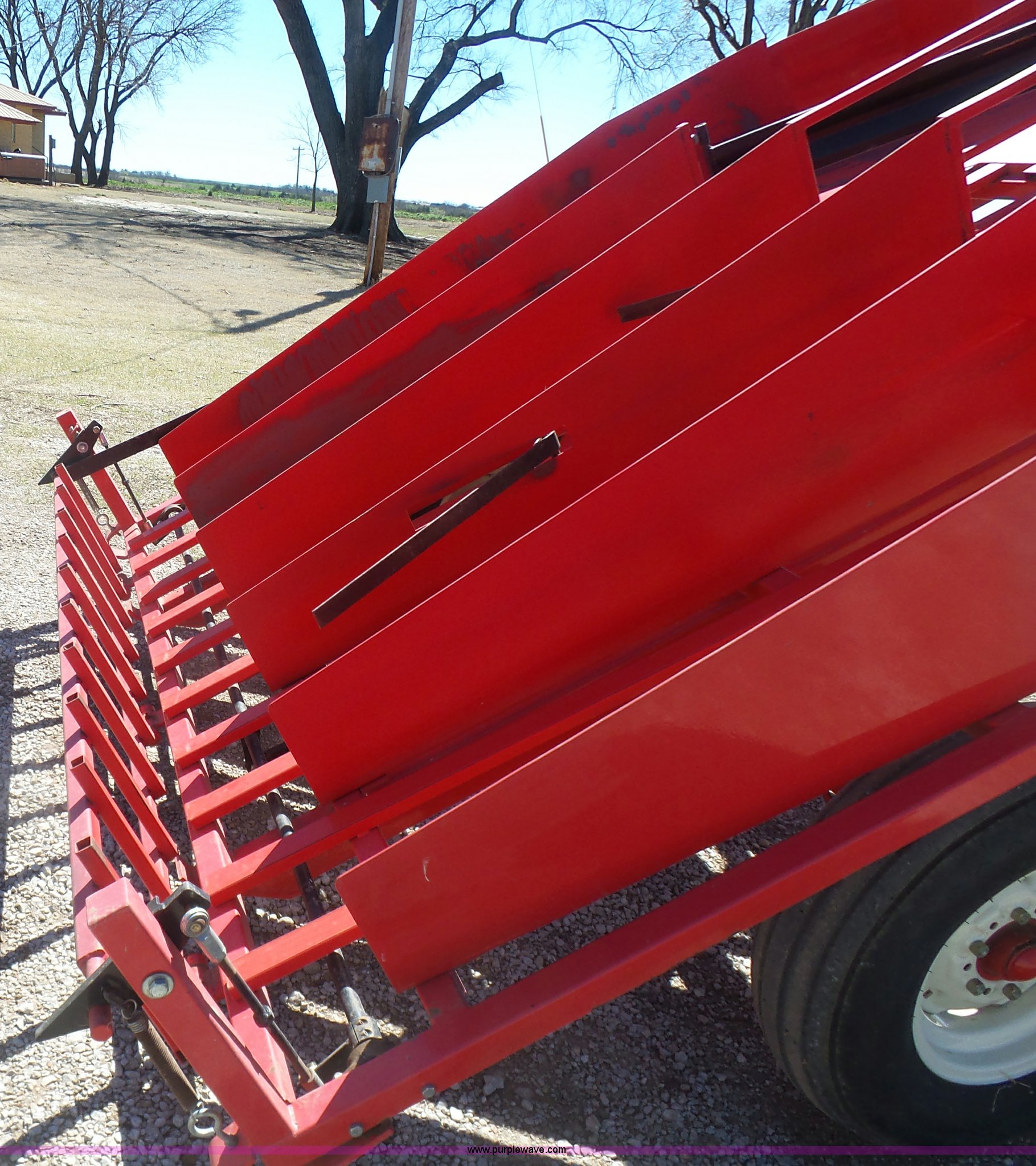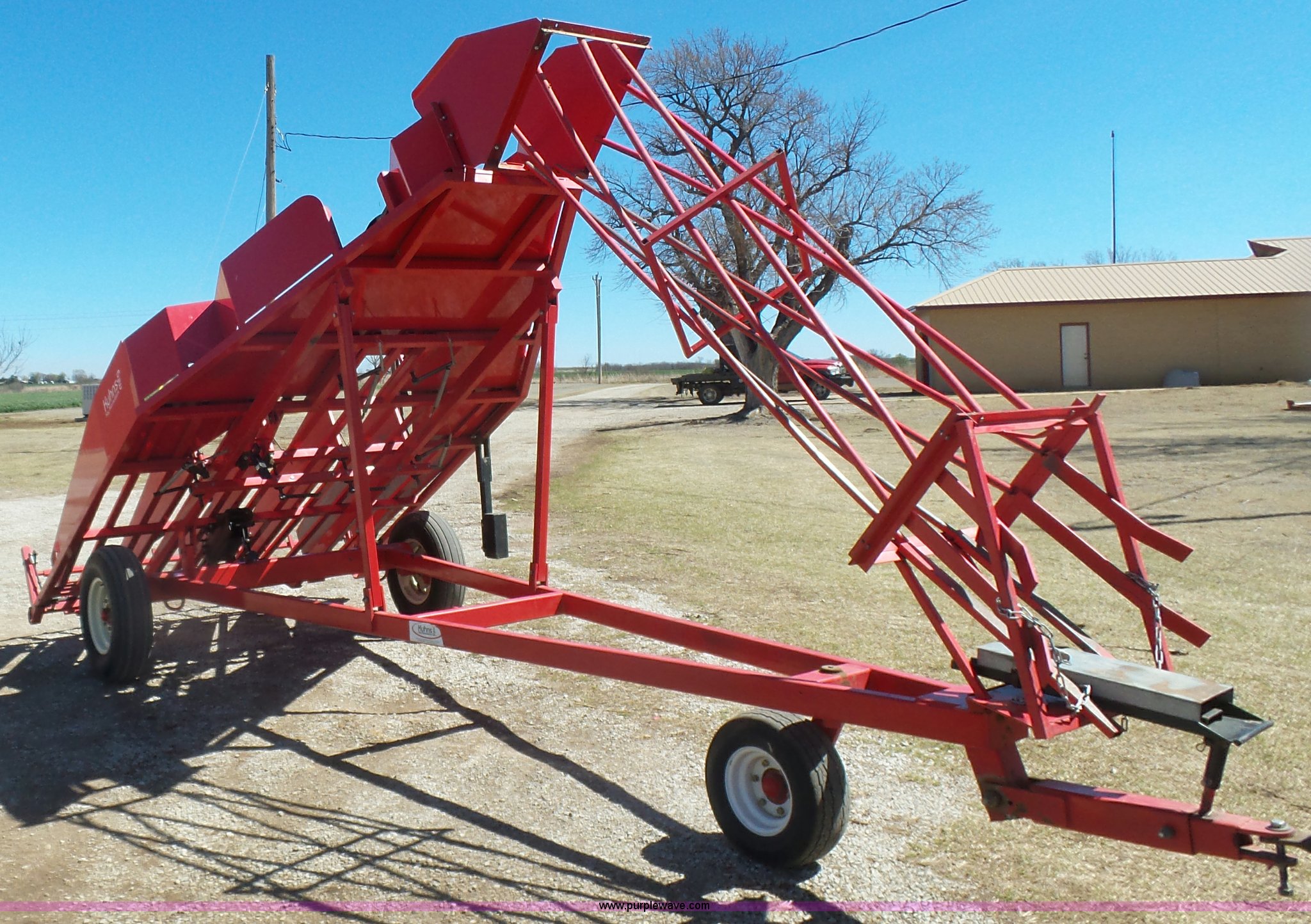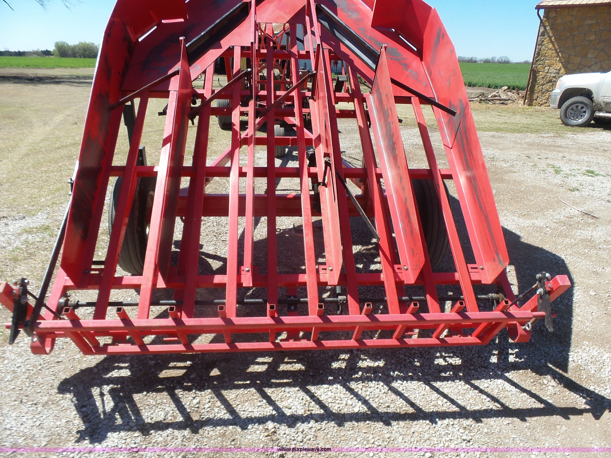 Purple Wave is selling a used Hay Handling in Oklahoma. This item is a Kuhn hay accumulator with the following: 10 bale capacity, Mechanical operation, 20.5x8.0-10 dolly tire, 9.50L-15SL tires