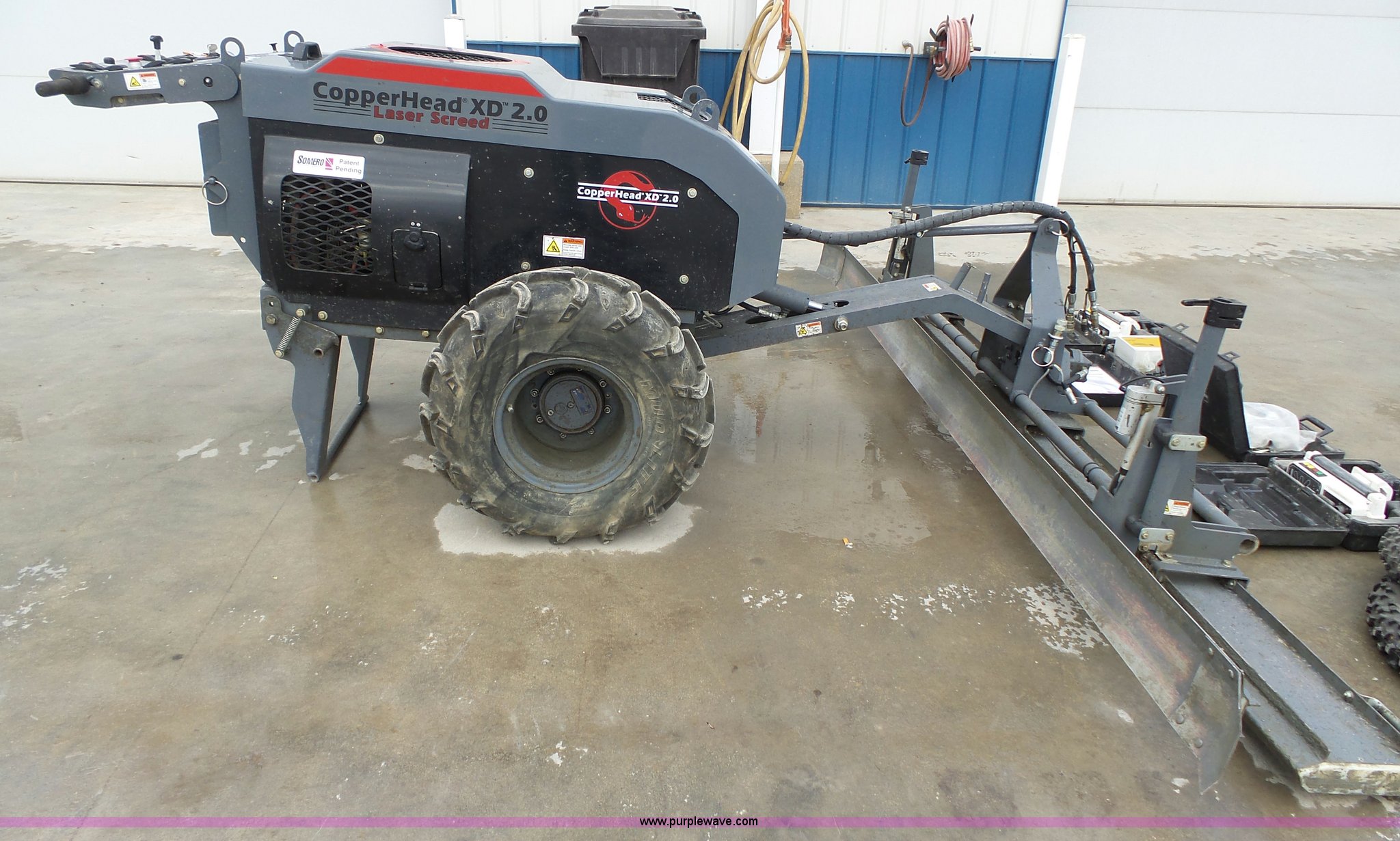 Purple Wave is selling a used Paver or Screed in Kansas. This item is a Copperhead XD 2.0 laser screed with the following: 217 hours on meter, Honda Robin gas engine, 13.5 HP, 10' screed, (2) Trimble grade control receiver, Copperhead 2.0 support kit, Additional throttle cable included, Serial 20817-0307