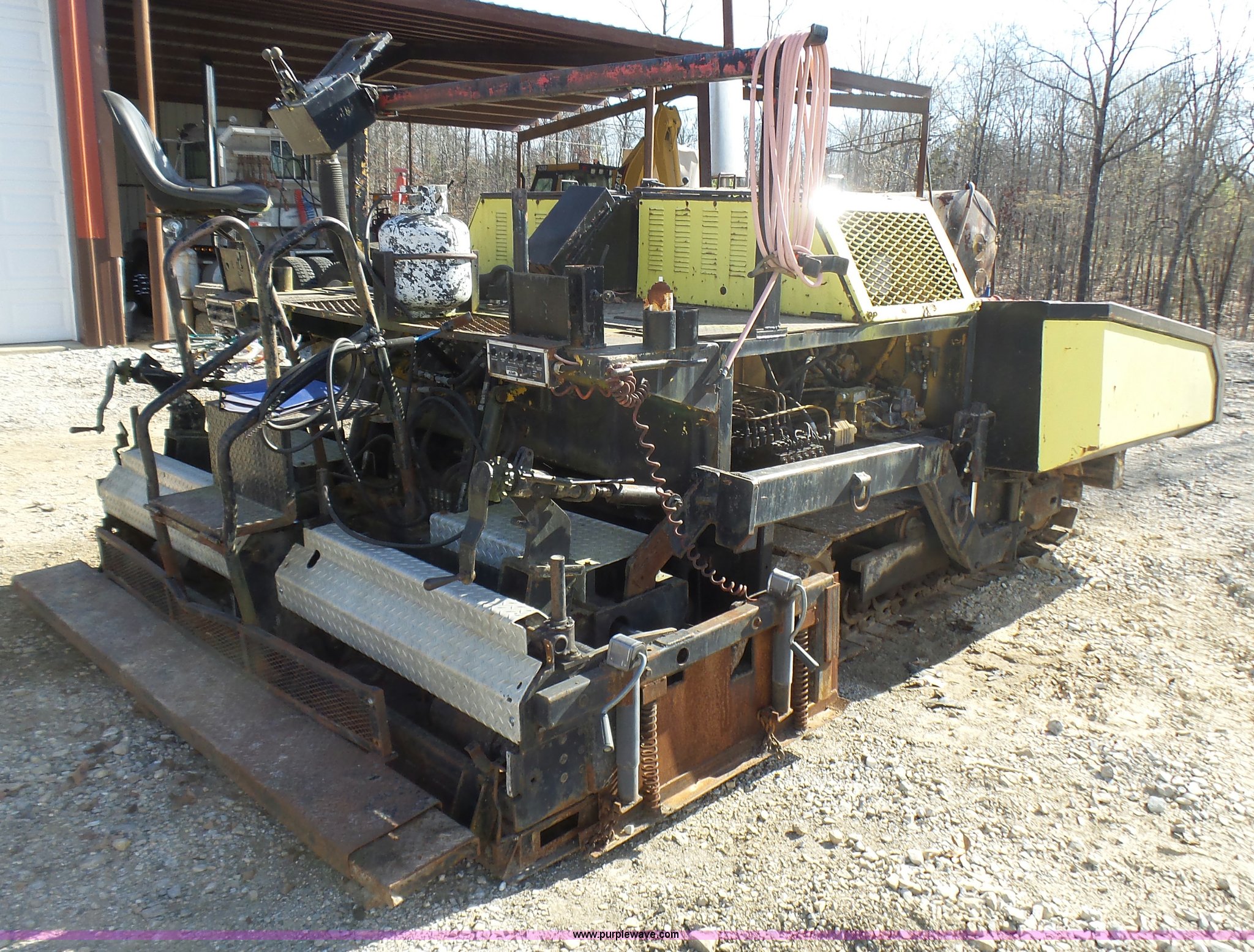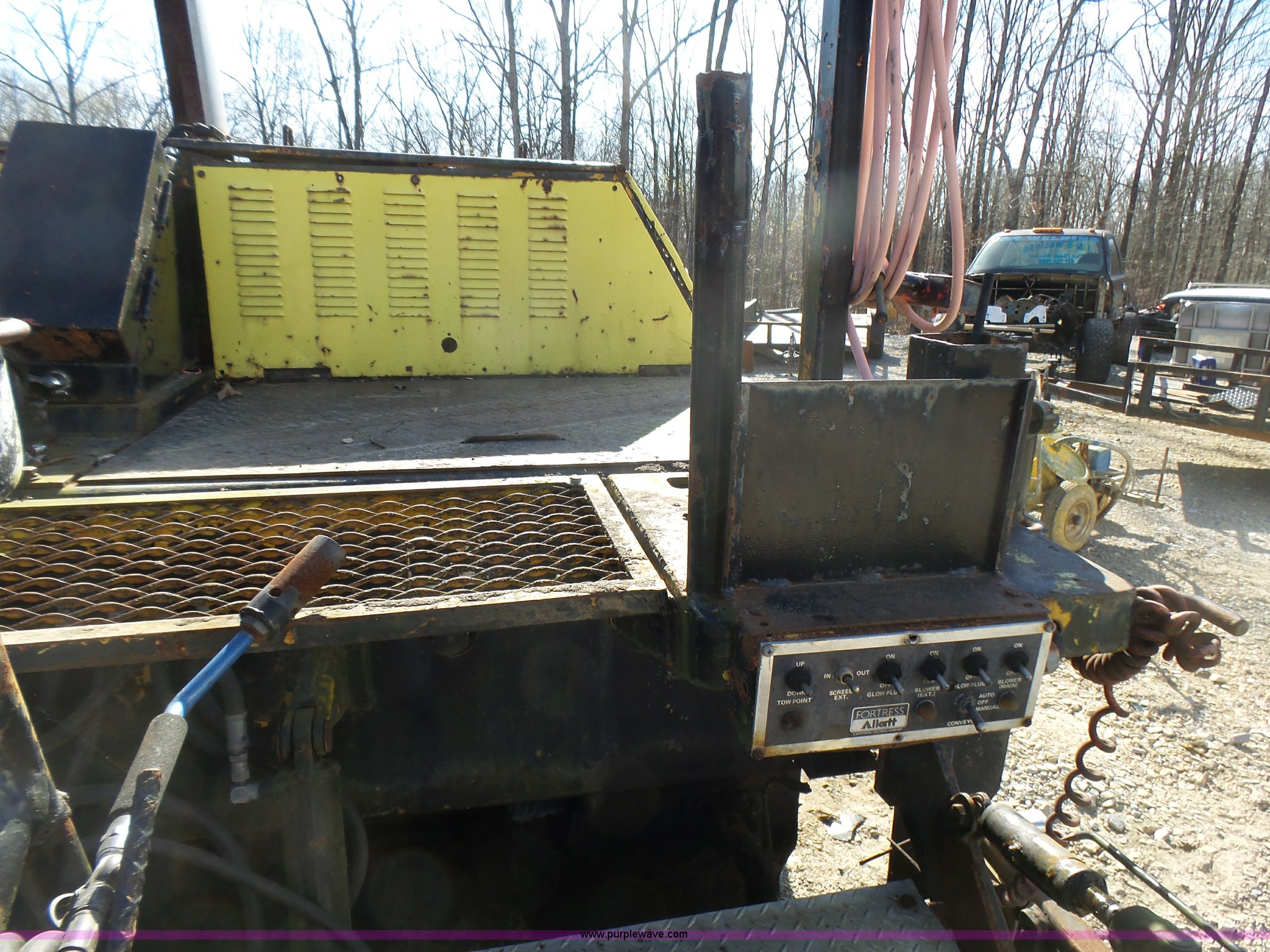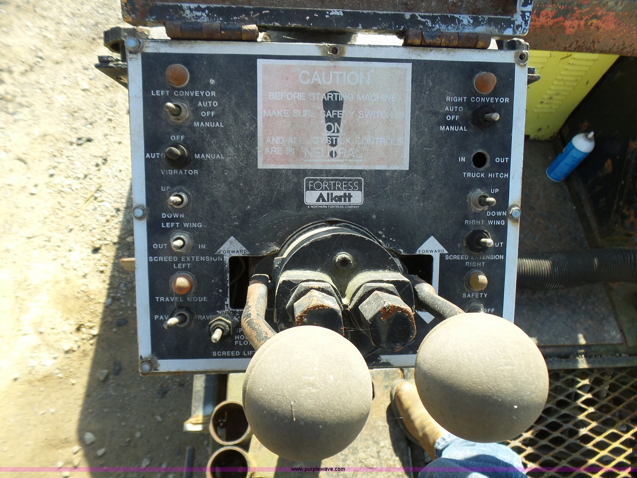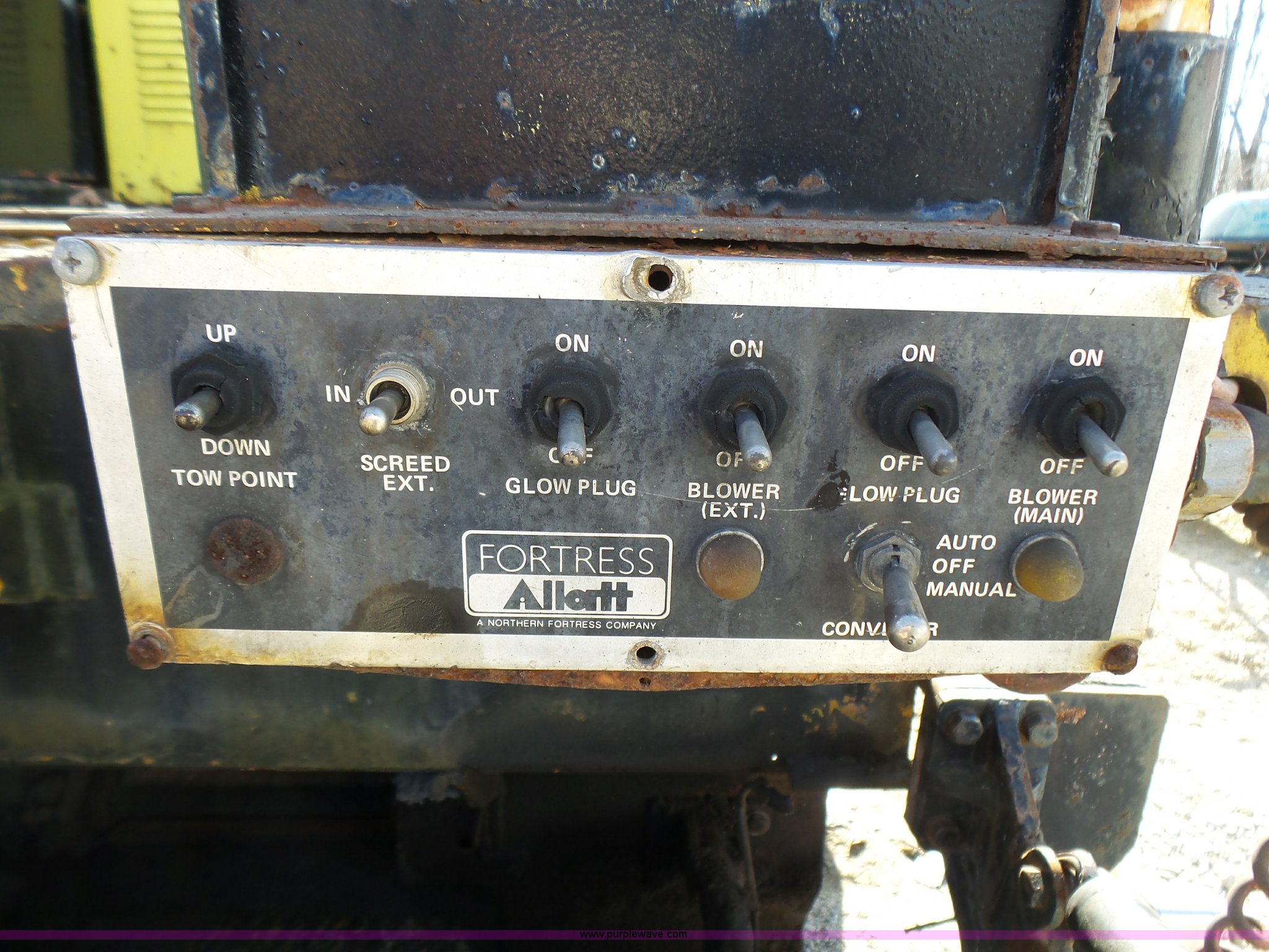 Purple Wave is selling a used Paver or Screed in Missouri. This item is a Fortress Allatt 750P paver with the following: Perkins four cylinder diesel engine, Two speed hydrostatic transmission, Travel mode, Pave mode, Alatt 8' to 14' screed capacity, Manual slope and grade, Propane heated screed, Auto feeder, Reverse feeder, Dual operator positions, 50 gallon fuel tank, Truck push rollers, 12"W steel tracks, 19,500 lbs. base operating weight, Serial 60D8010