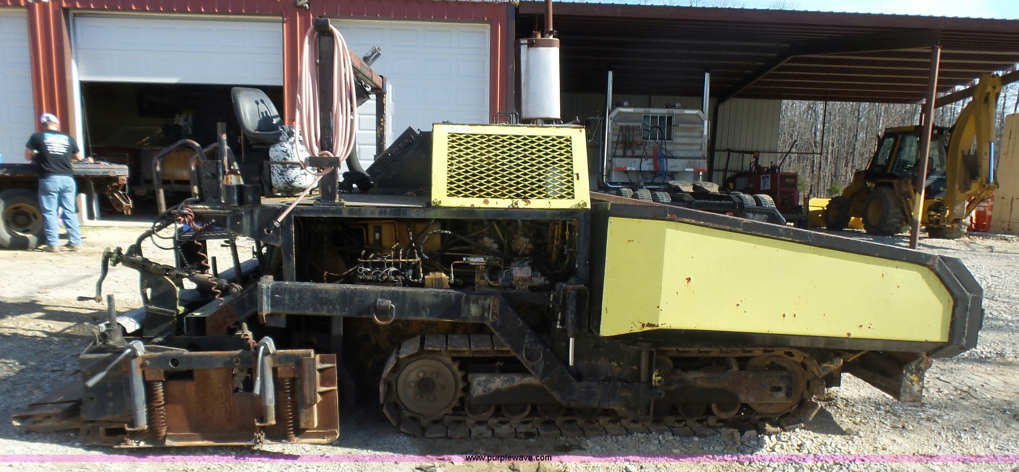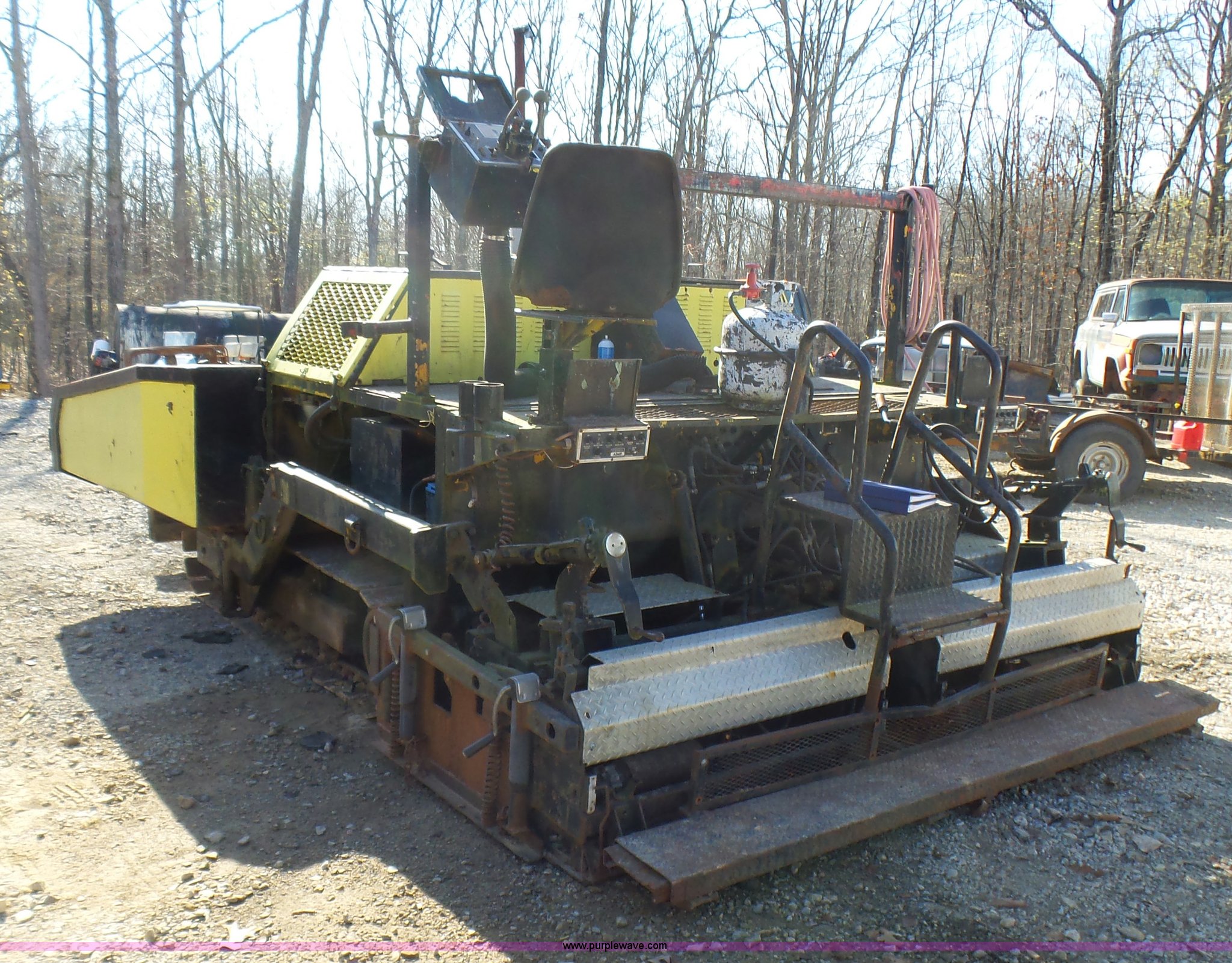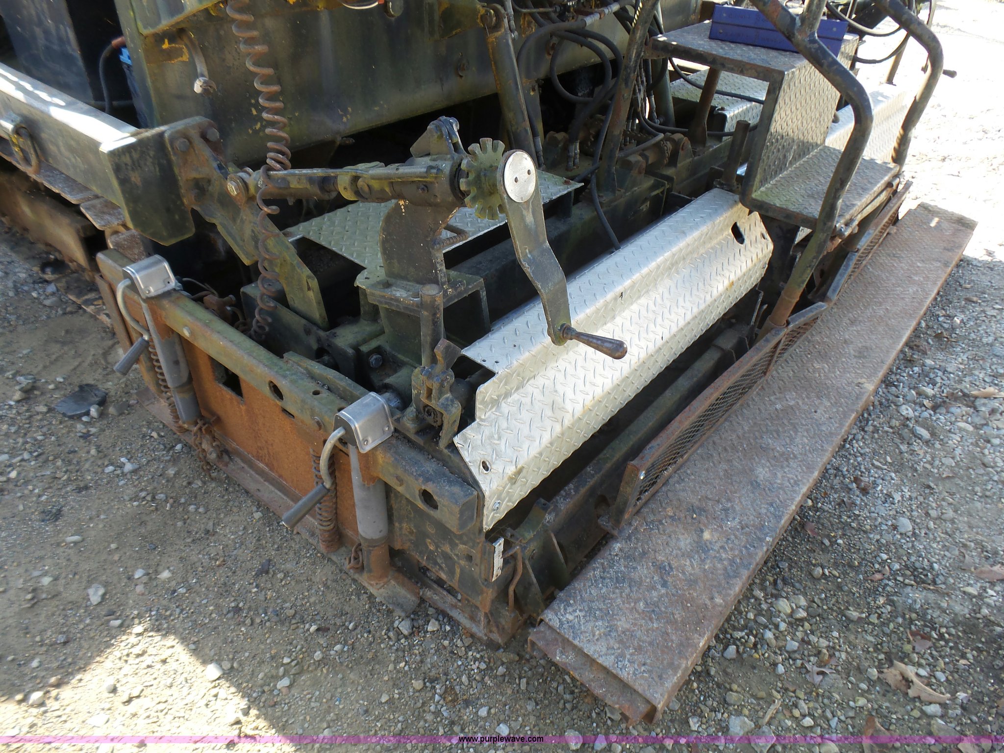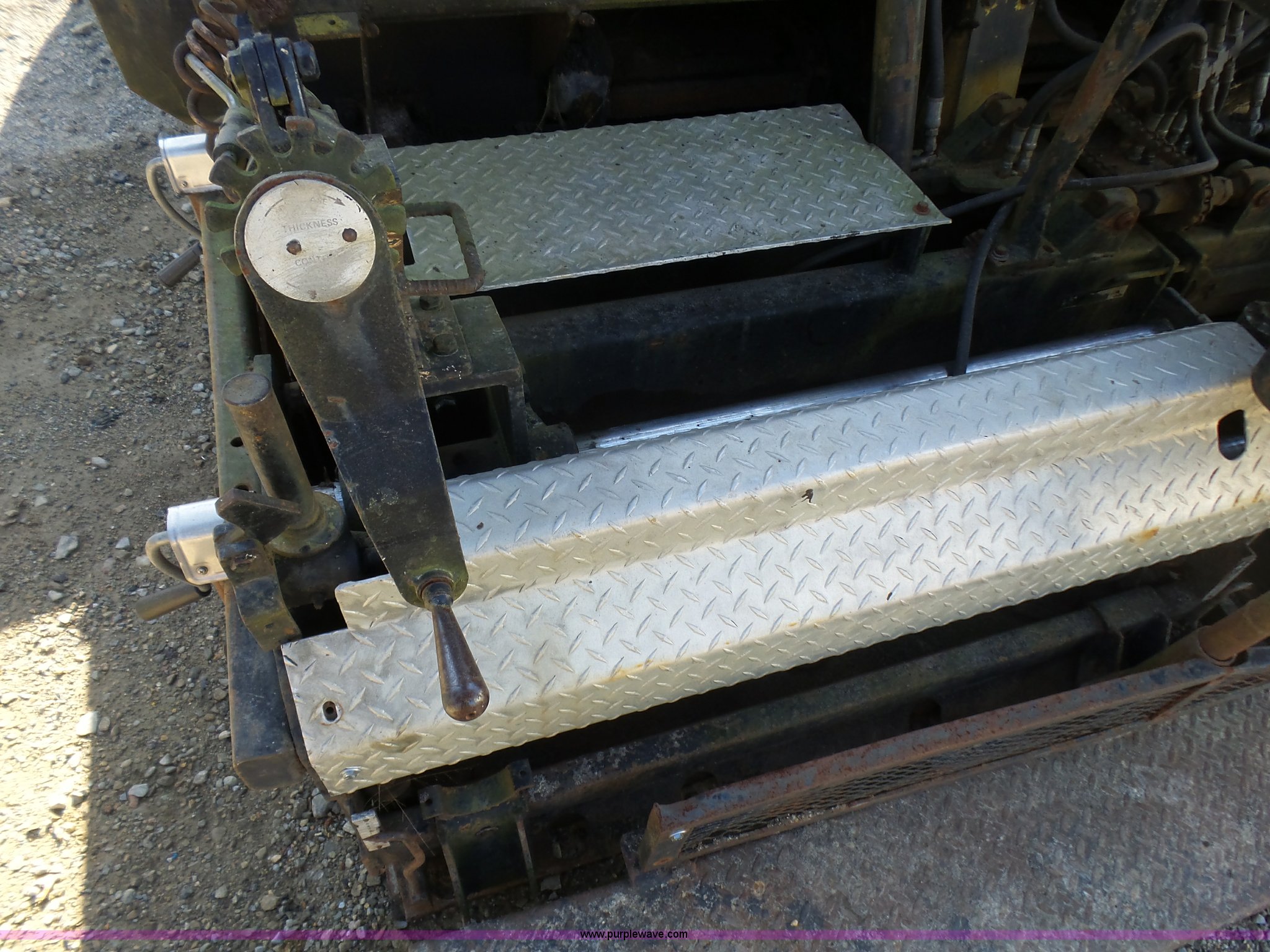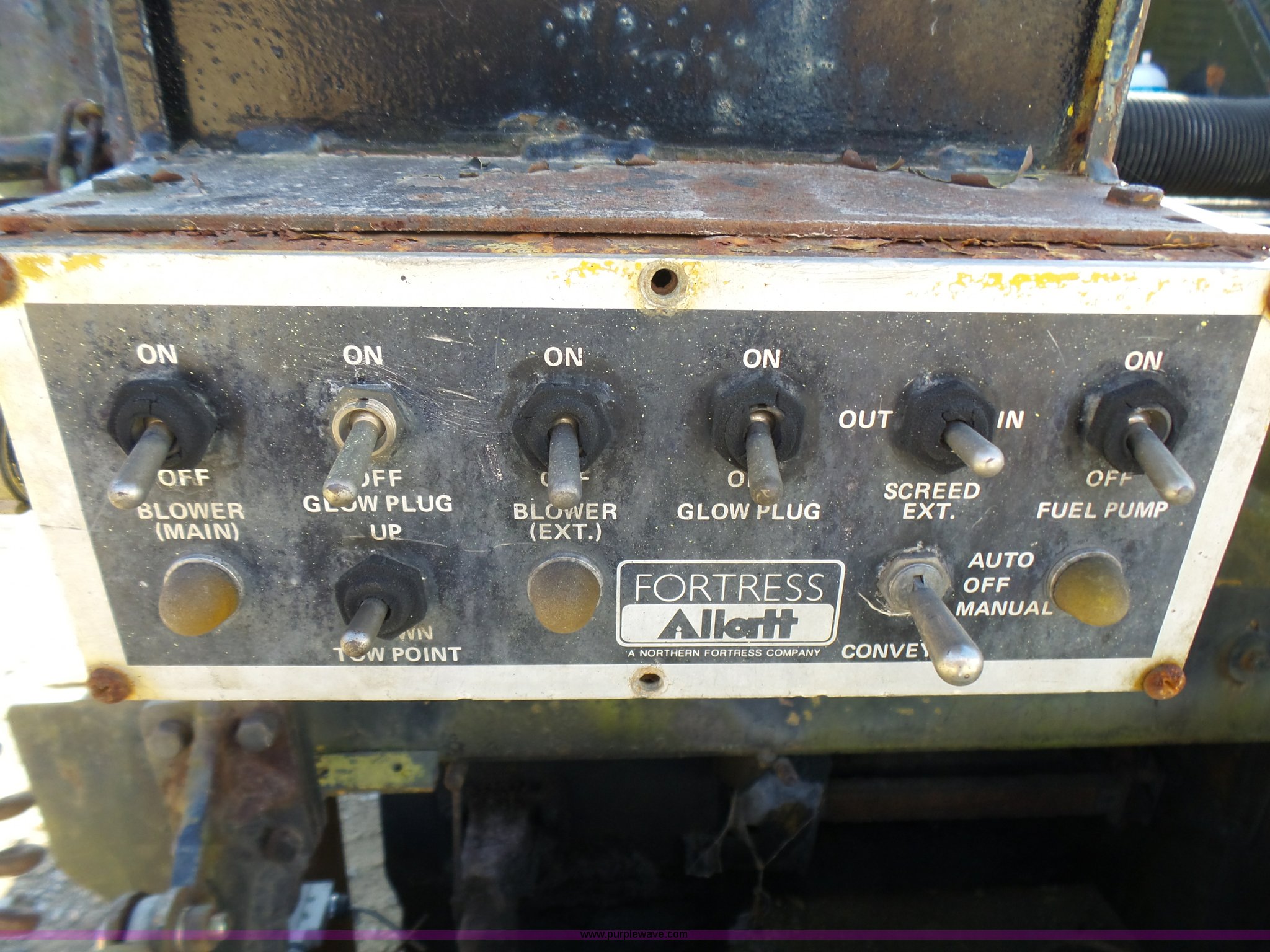 Purple Wave is selling a used Paver or Screed in Missouri. This item is a Fortress Allatt 750P paver with the following: Perkins four cylinder diesel engine, Two speed hydrostatic transmission, Travel mode, Pave mode, Alatt 8' to 14' screed capacity, Manual slope and grade, Propane heated screed, Auto feeder, Reverse feeder, Dual operator positions, 50 gallon fuel tank, Truck push rollers, 12"W steel tracks, 19,500 lbs. base operating weight, Serial 60D8010