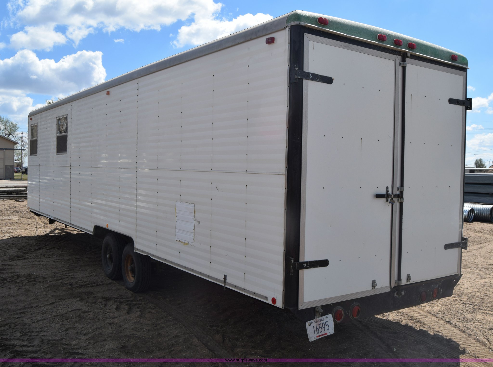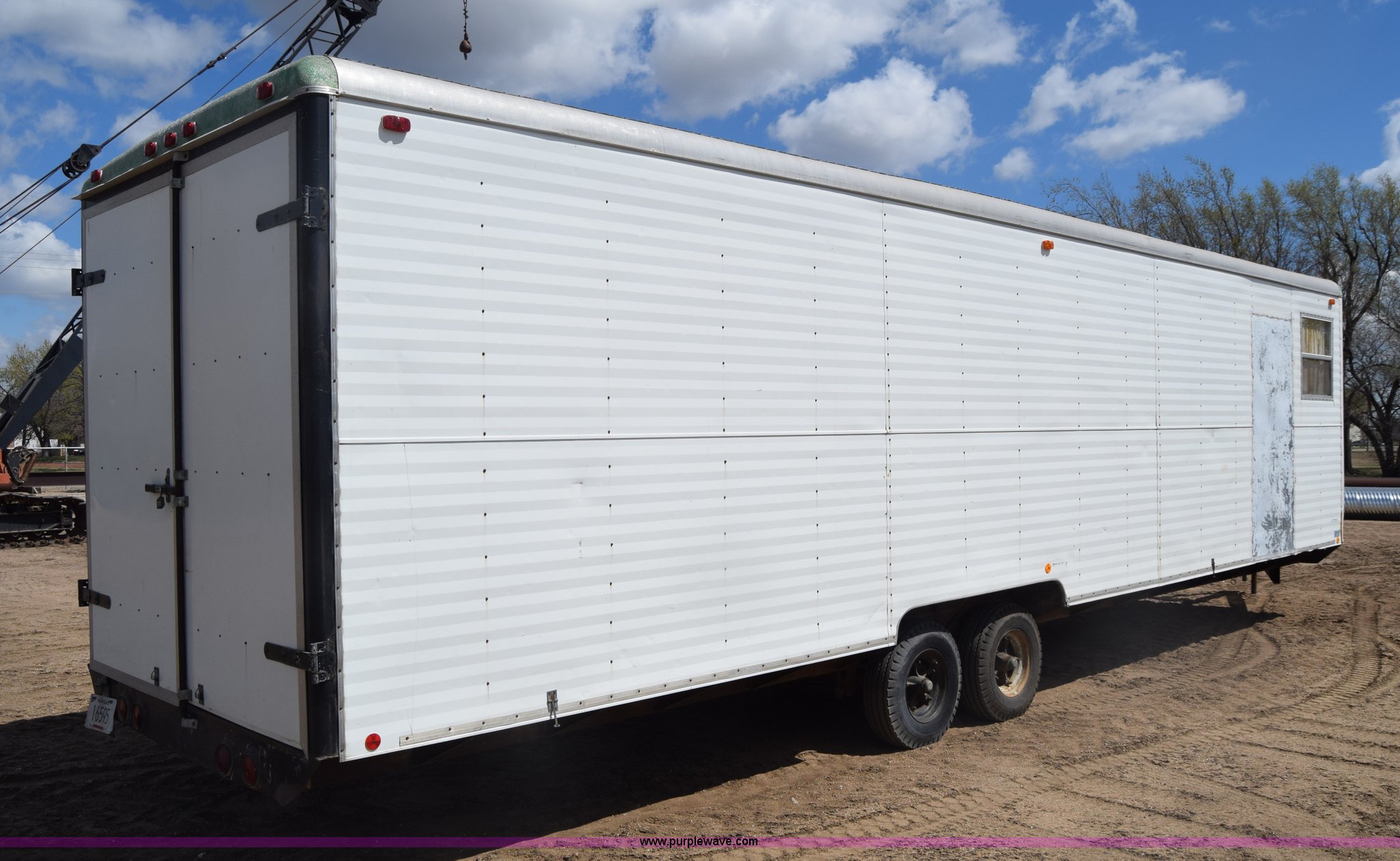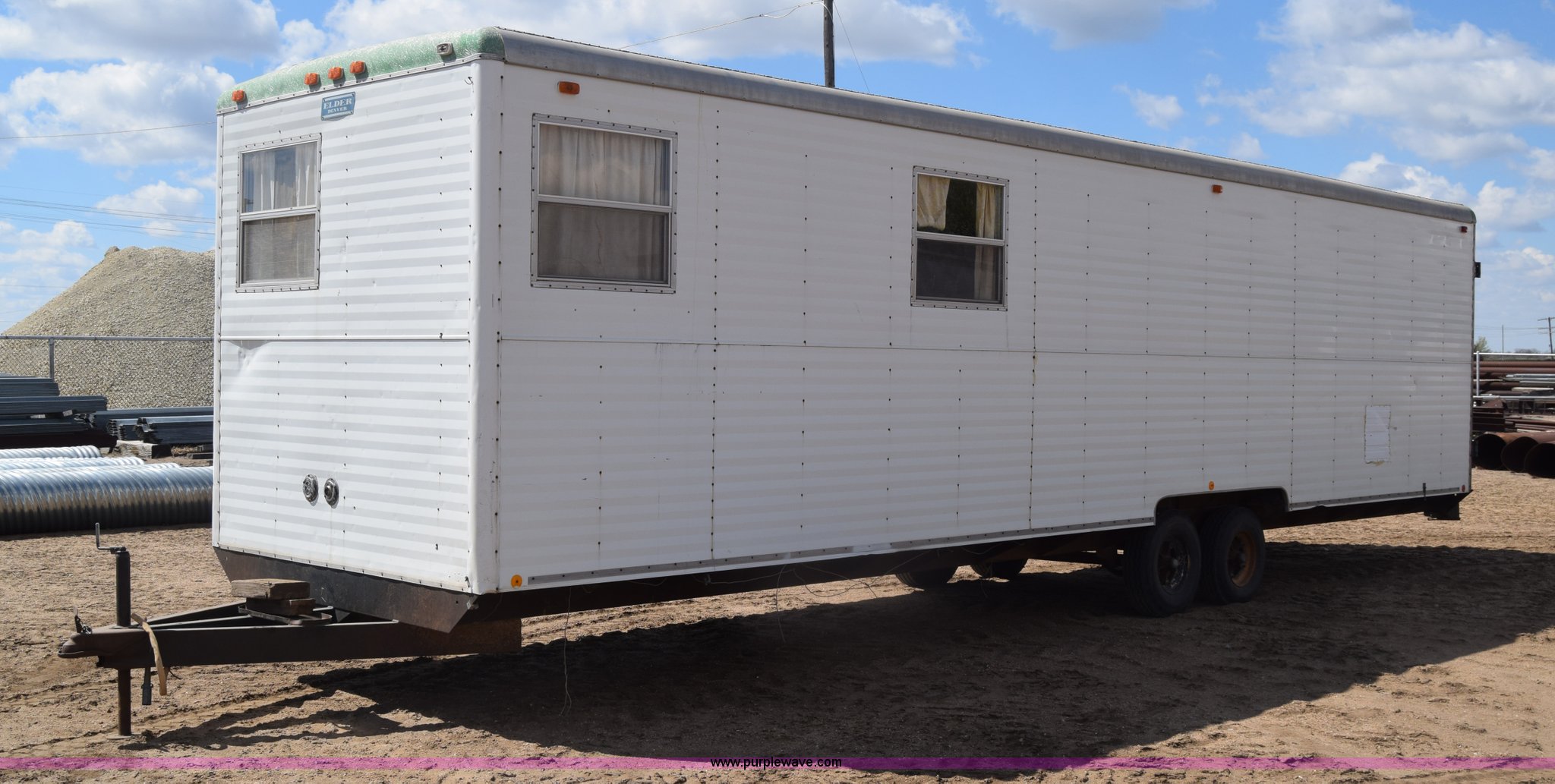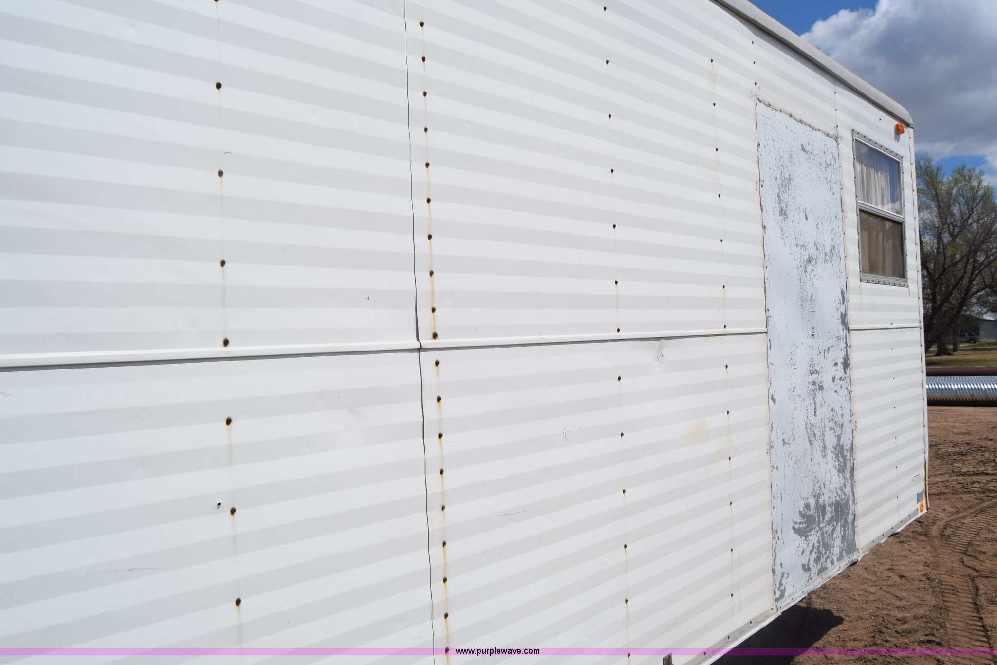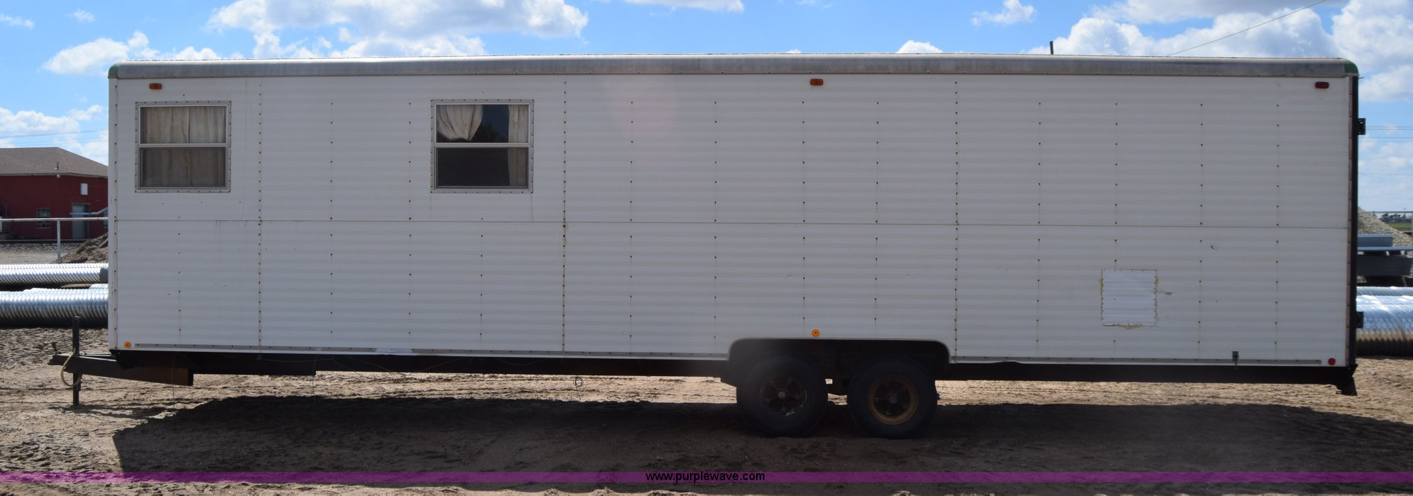 Purple Wave is selling a used Manufactured Home or Office in Kansas. This item is a 1981 Elder office trailer with the following: 31'L x 8'W x 9'8"H, Wood floor, Rear swing-out doors, Lights, Windows, Sink, Ball hitch, Tandem axle, Spring suspension, 8-14.5 tires, No brakes