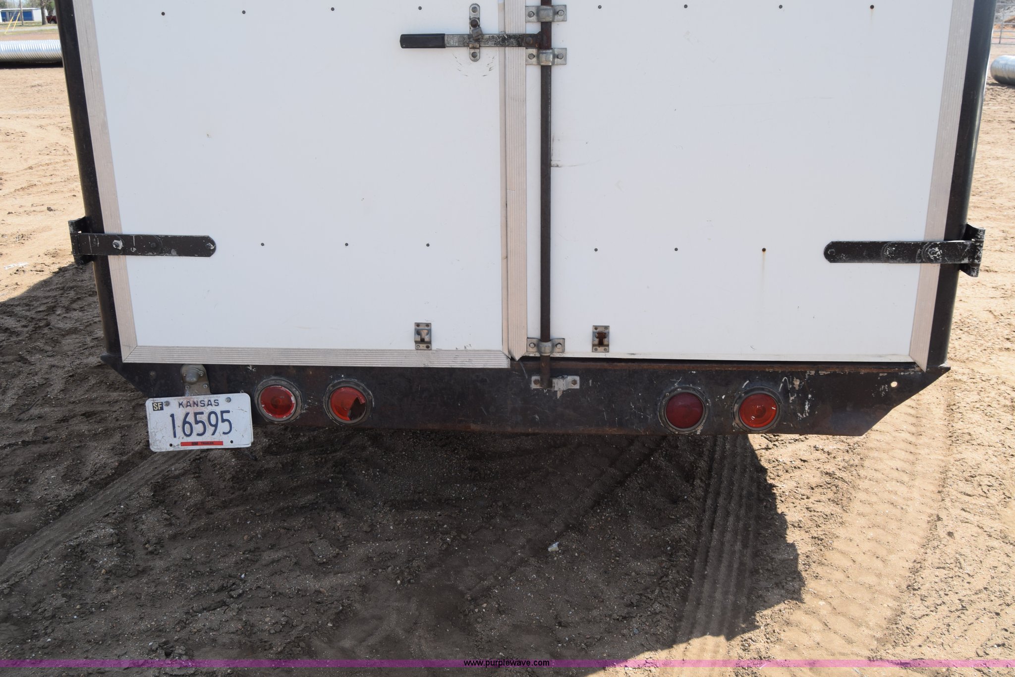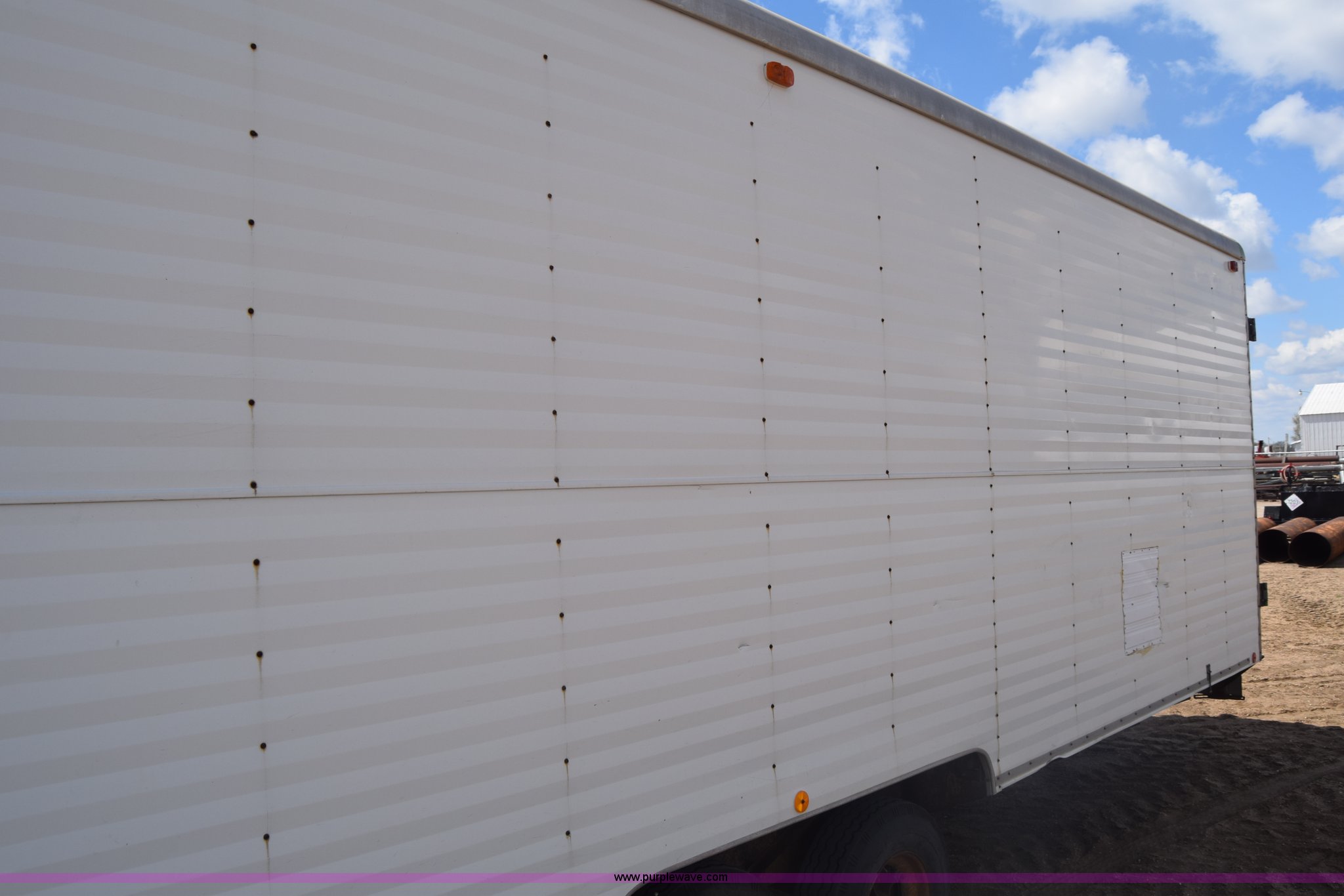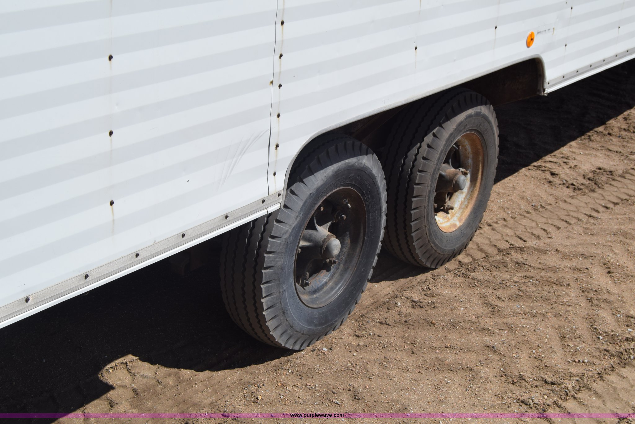 1981 Elder office trailer. 31'L x 8'W x 9'8"H, Wood floor, Rear swing-out doors, Lights, Windows, Sink, Ball hitch, Tandem axle, Spring suspension, 8-14.5 tires, No brakes. Kansas title. WC4351. Stafford County Highway Department. St. John, KS 67576