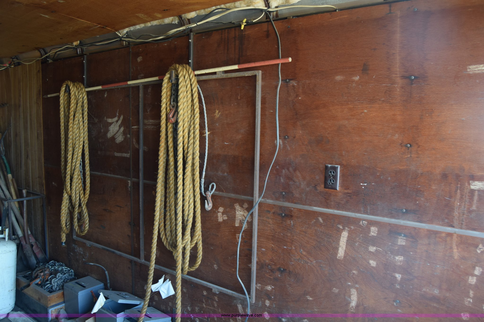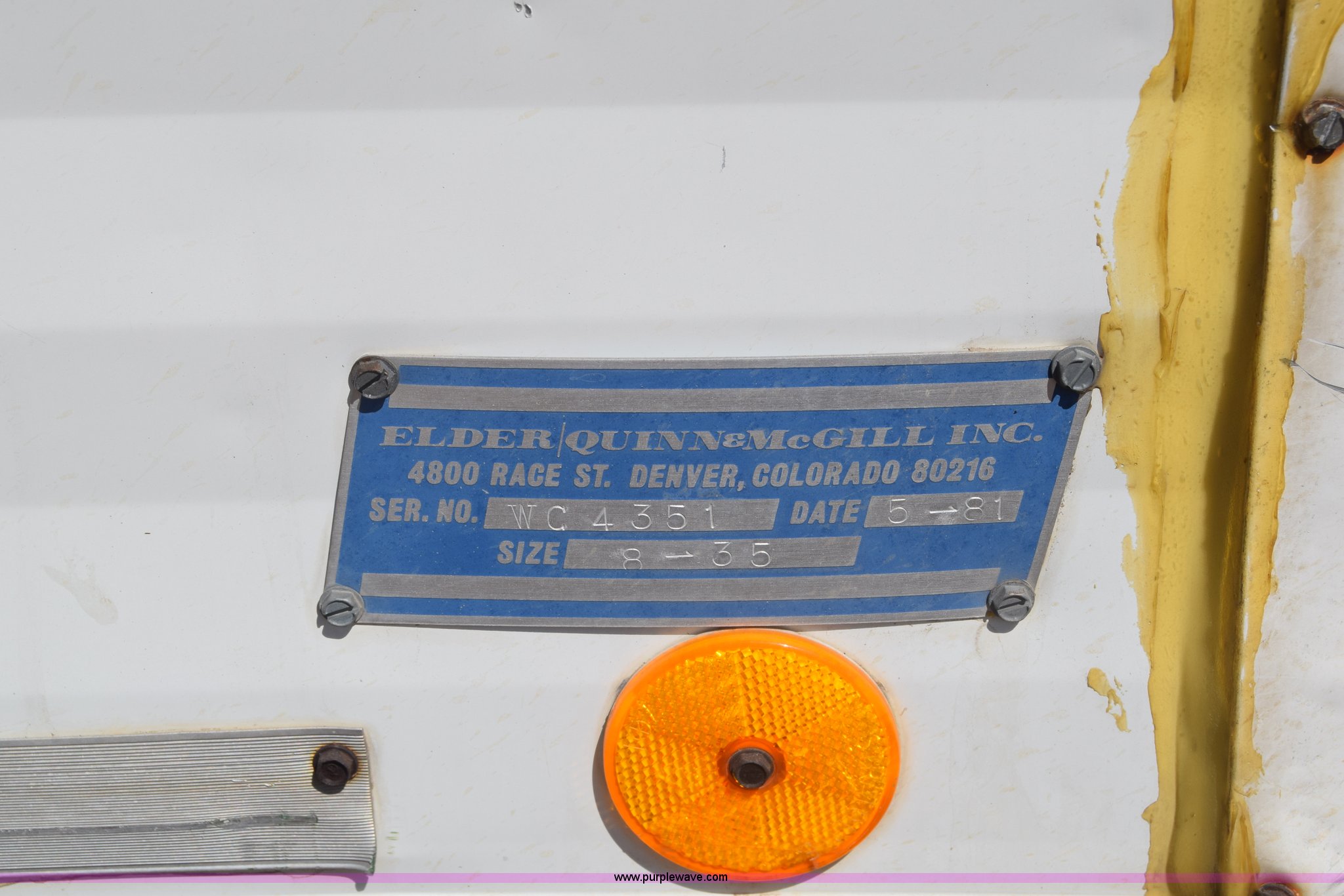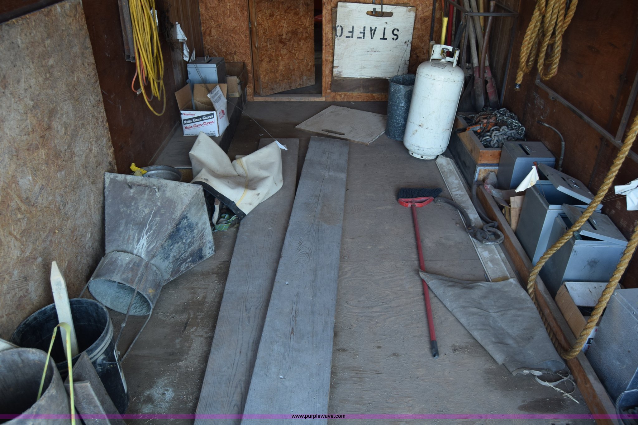 1981 Elder office trailer. 31'L x 8'W x 9'8"H, Wood floor, Rear swing-out doors, Lights, Windows, Sink, Ball hitch, Tandem axle, Spring suspension, 8-14.5 tires, No brakes. Kansas title. WC4351. Stafford County Highway Department. St. John, KS 67576