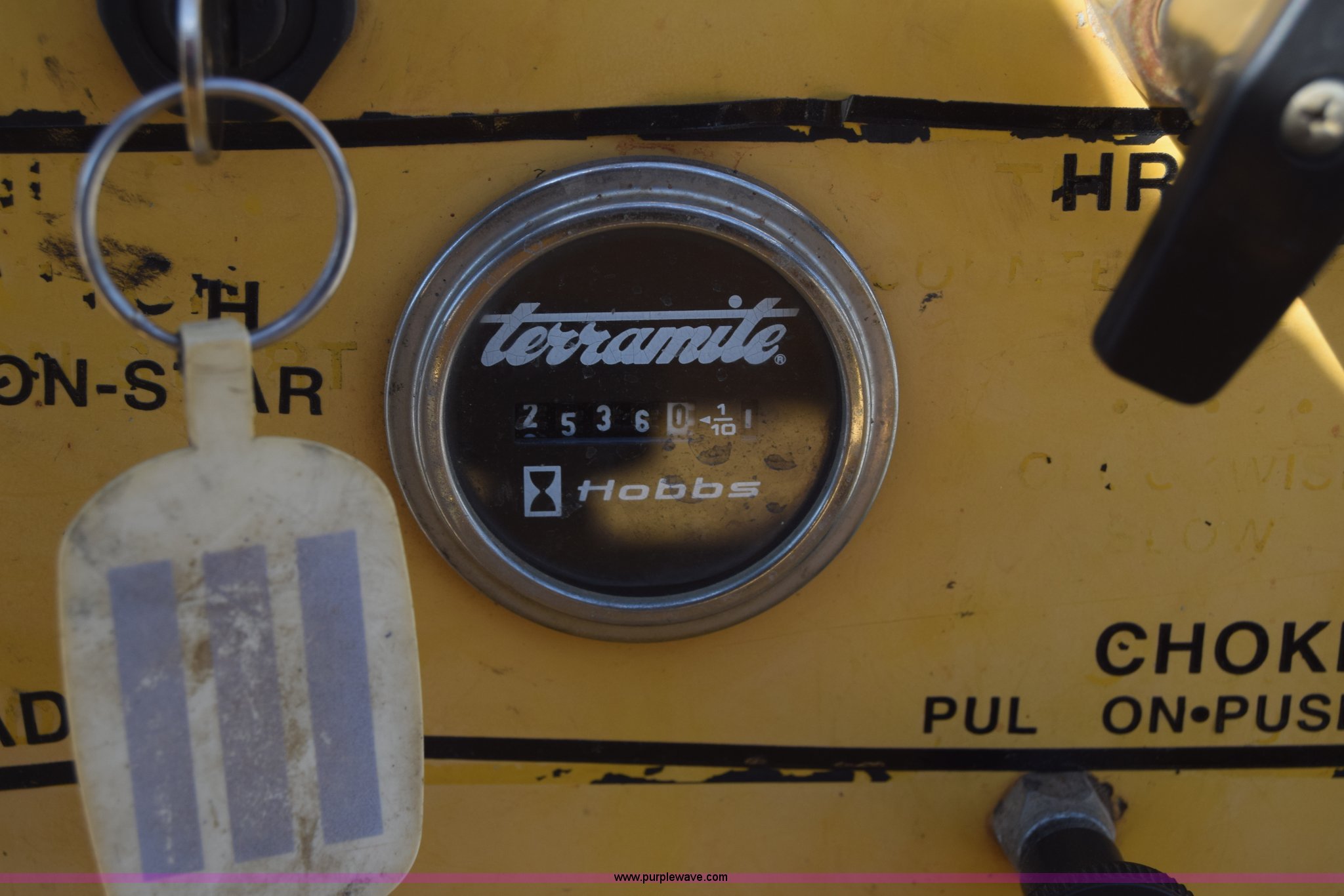 Purple Wave is selling a used Tractor Loader Backhoe in Kansas. This item is a Terramite T5C backhoe with the following: 2,536 hours on meter, Kohler gas engine, Hydrostatic transmission, OROPS, Front work lights, 48" loader bucket, Terramite T5C backhoe, 8'4" backhoe digging depth, 9" bucket, Dual outriggers, 20.5 x 8.0-10 front tires, 9.50-16 rear tires, Serial 2150202