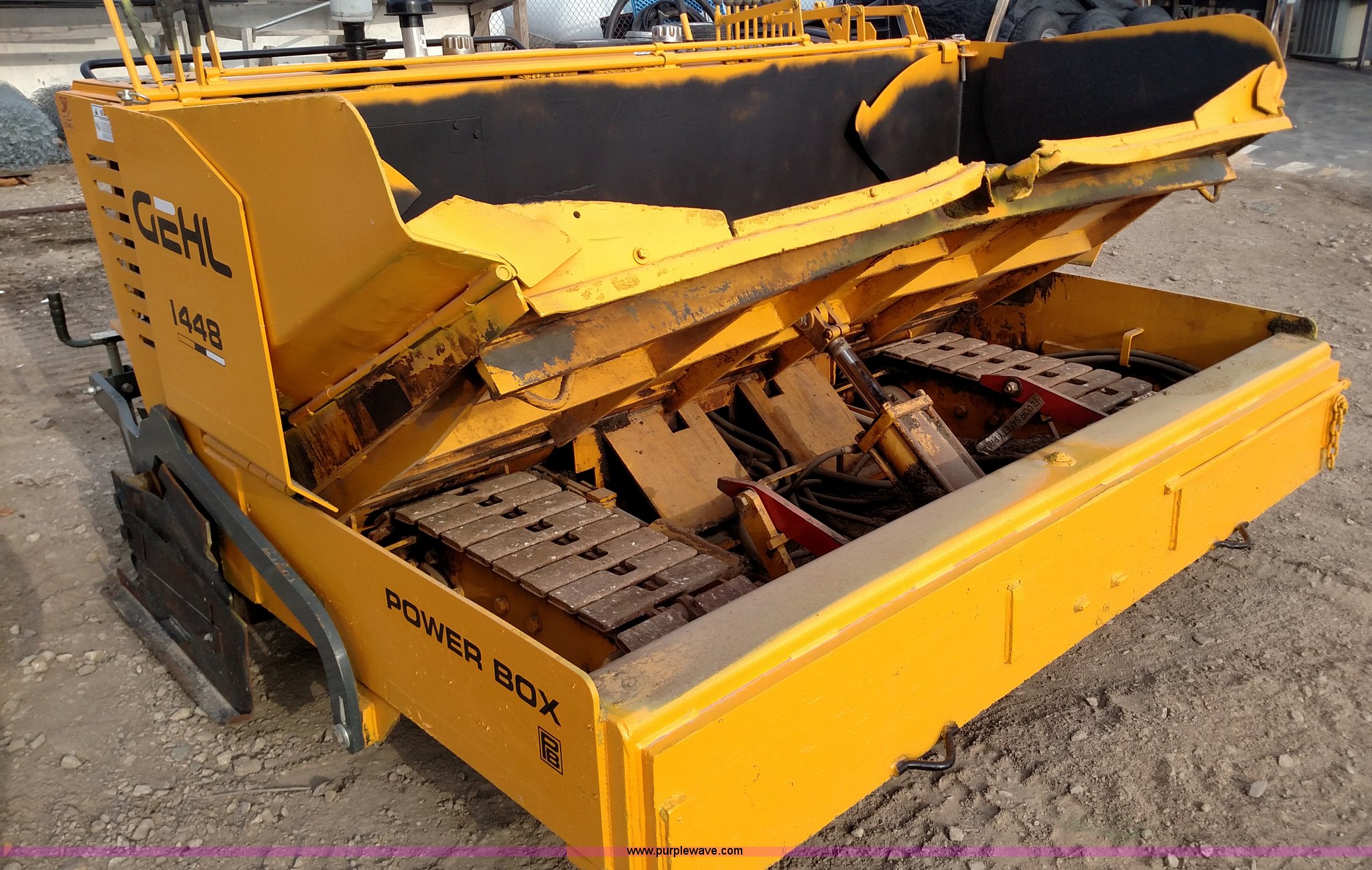 Purple Wave is selling a used Paver or Screed in Kansas. This item is a Gehl 1448 paver with the following: 2,139 hours on meter, Isuzu diesel engine, 25 HP, Hydrostatic transmission, 8' to 12' paving width, 15"W steel tracks