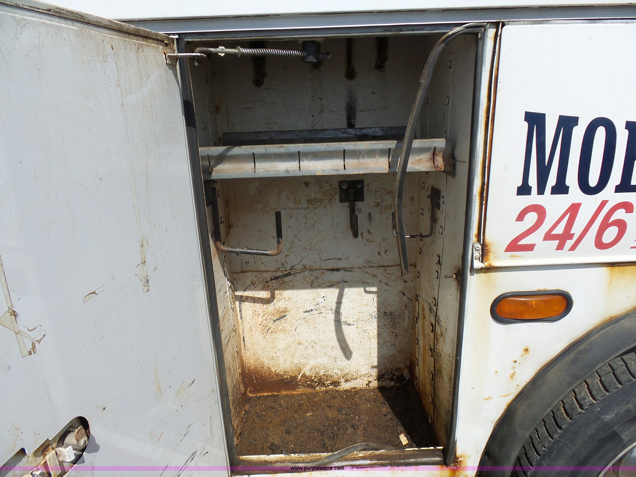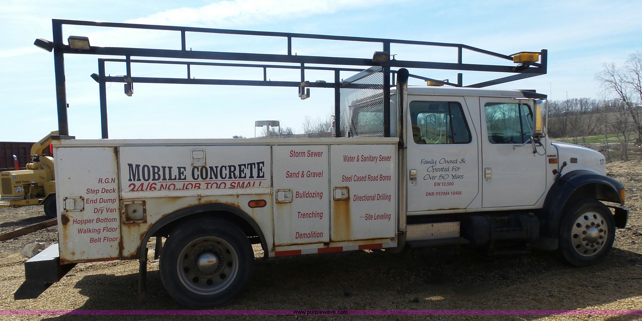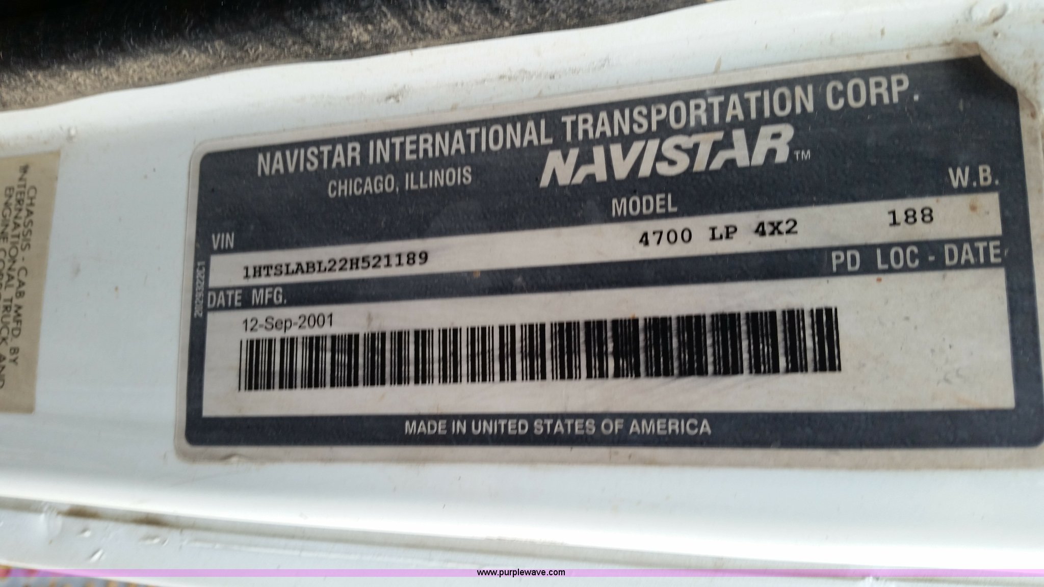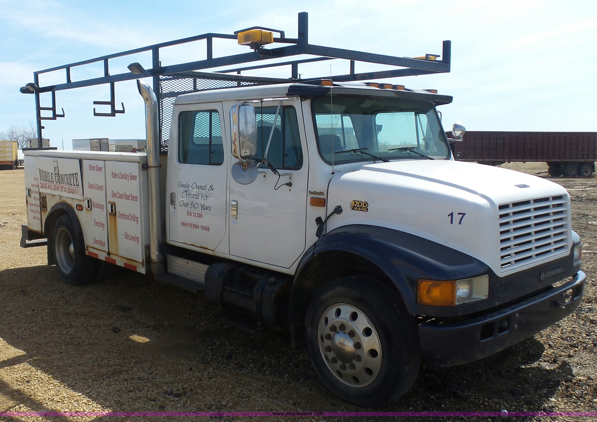 Purple Wave is selling a used Service Truck in Wisconsin. This item is a 2002 International 4700 service truck with the following: 106,740 miles on odometer, International T444 7.3L V8 turbo diesel engine, Automatic transmission, AC and heat, AM/FM, Spring suspension seat, Beacon light, Block heater, Front tow hooks, Stahl service bed, 11'L x 95"W, (4) compartments per side, Slideout drawers, Utility rack, Work lights, Propane bottle holder, Fire extinguisher, Trailer wiring, Single exhaust stack, Single fuel tank, 255/70R22.5 front tires, 245/75R22.5 rear tires, GVWR 23,500 lbs, FAWR 8,000 lbs, RAWR 15,500 lbs, Transmission replaced 03/2015
