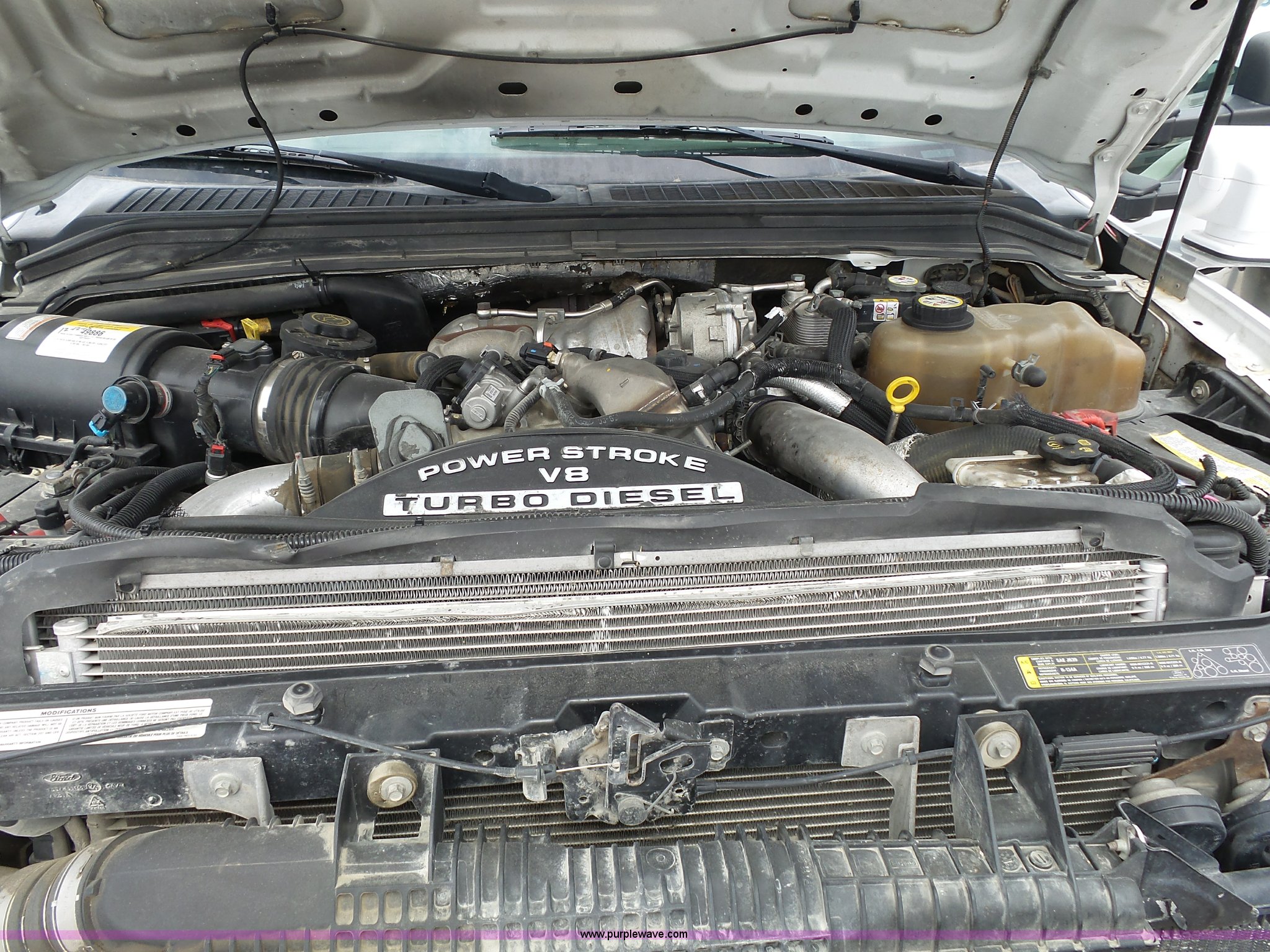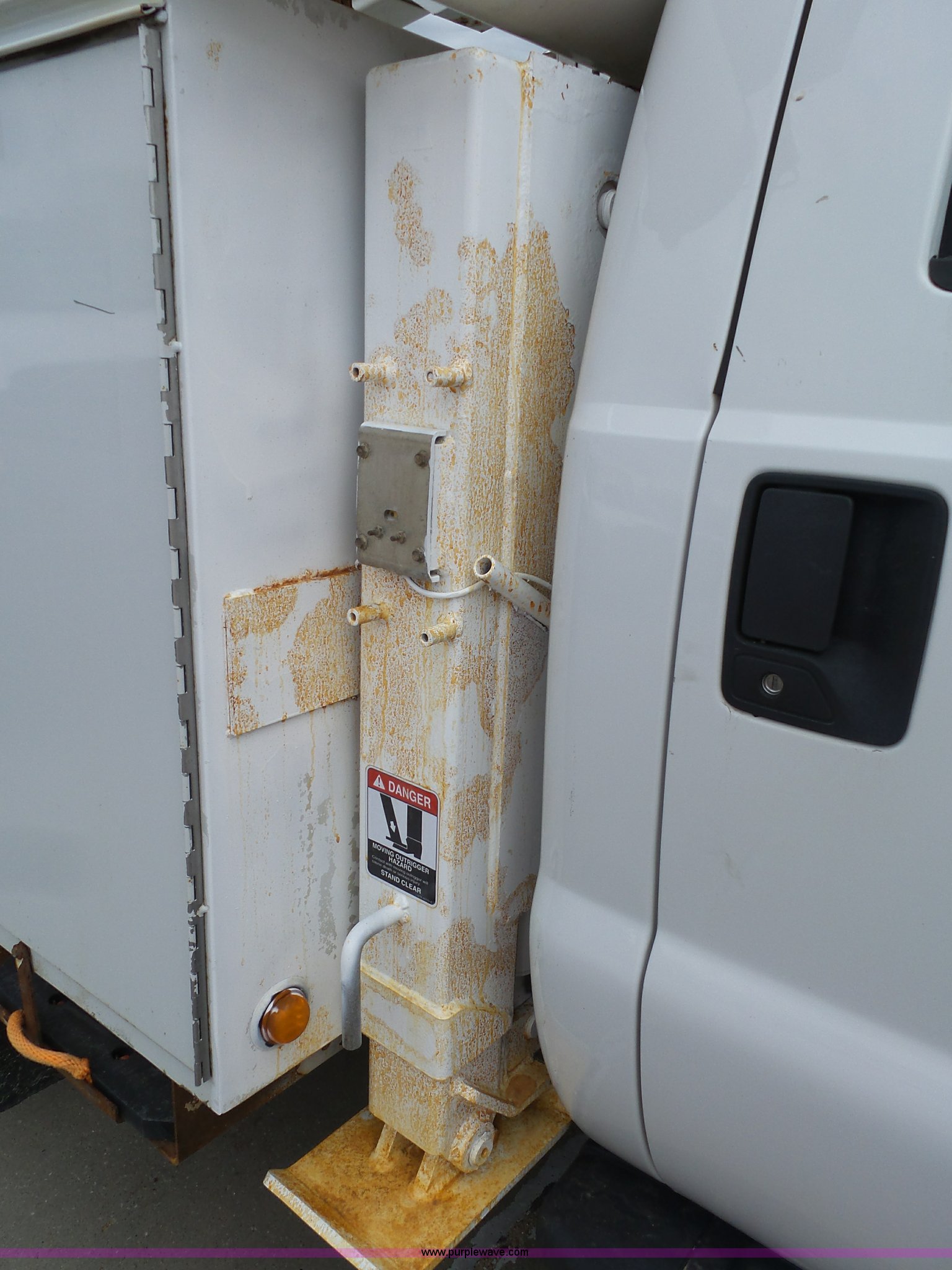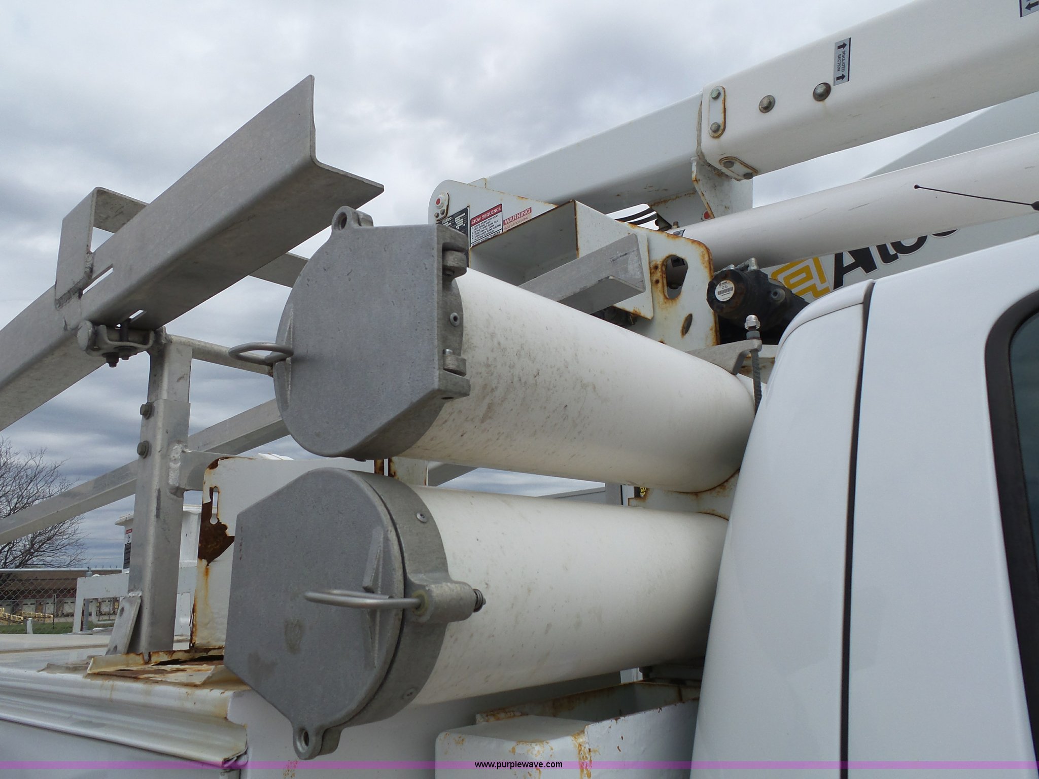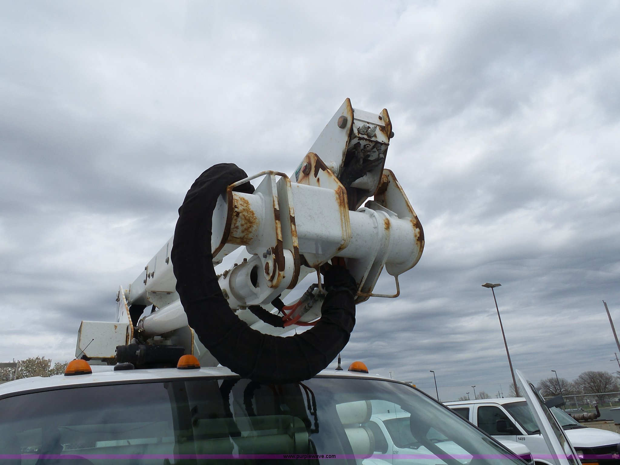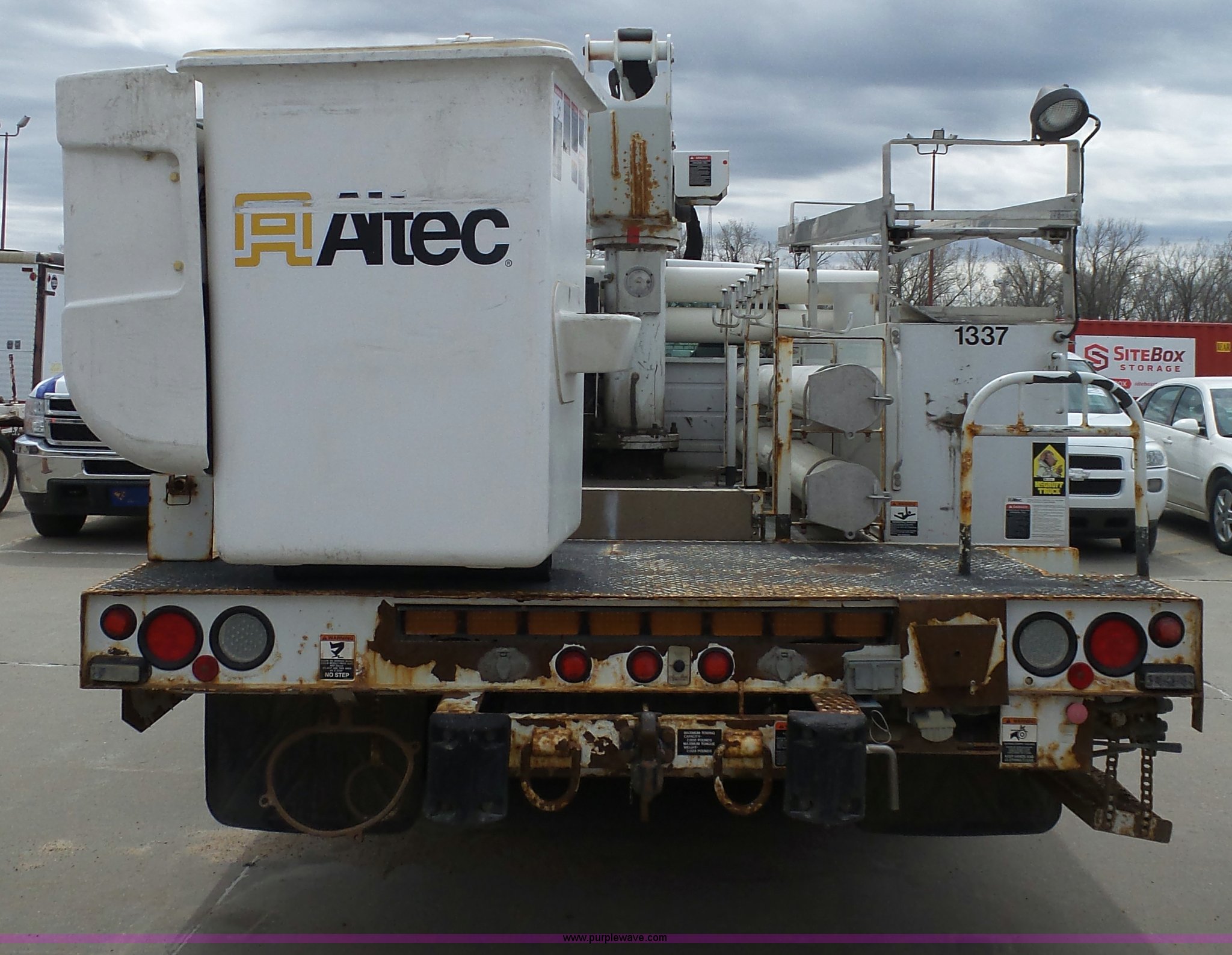 Purple Wave is selling a used Bucket Truck in Kansas. This item is a 2008 Ford F550 Super Duty bucket truck with the following: 147,428 miles on odometer, 6.4L V8 OHV 32V turbo diesel engine, Automatic transmission, Single axle, AC and heat, AM/FM, Beacon light, Front tow hooks, PTO, Altec 6102D545 service bed, 8.5'L, Slide-out drawers, Work lights, Ladder rack, Pintle hitch, 2007 Altec AT37G boom, 400 lbs maximum lift capacity, 37.5' maximum lift height, Ground and platform controls, (2) outriggers, Serial 0507DE8371, Spring suspension, Hydraulic brakes, 225/70R19.5 tires, GVWR 17,950 lbs, Inspection is out of date, Unit# 1337