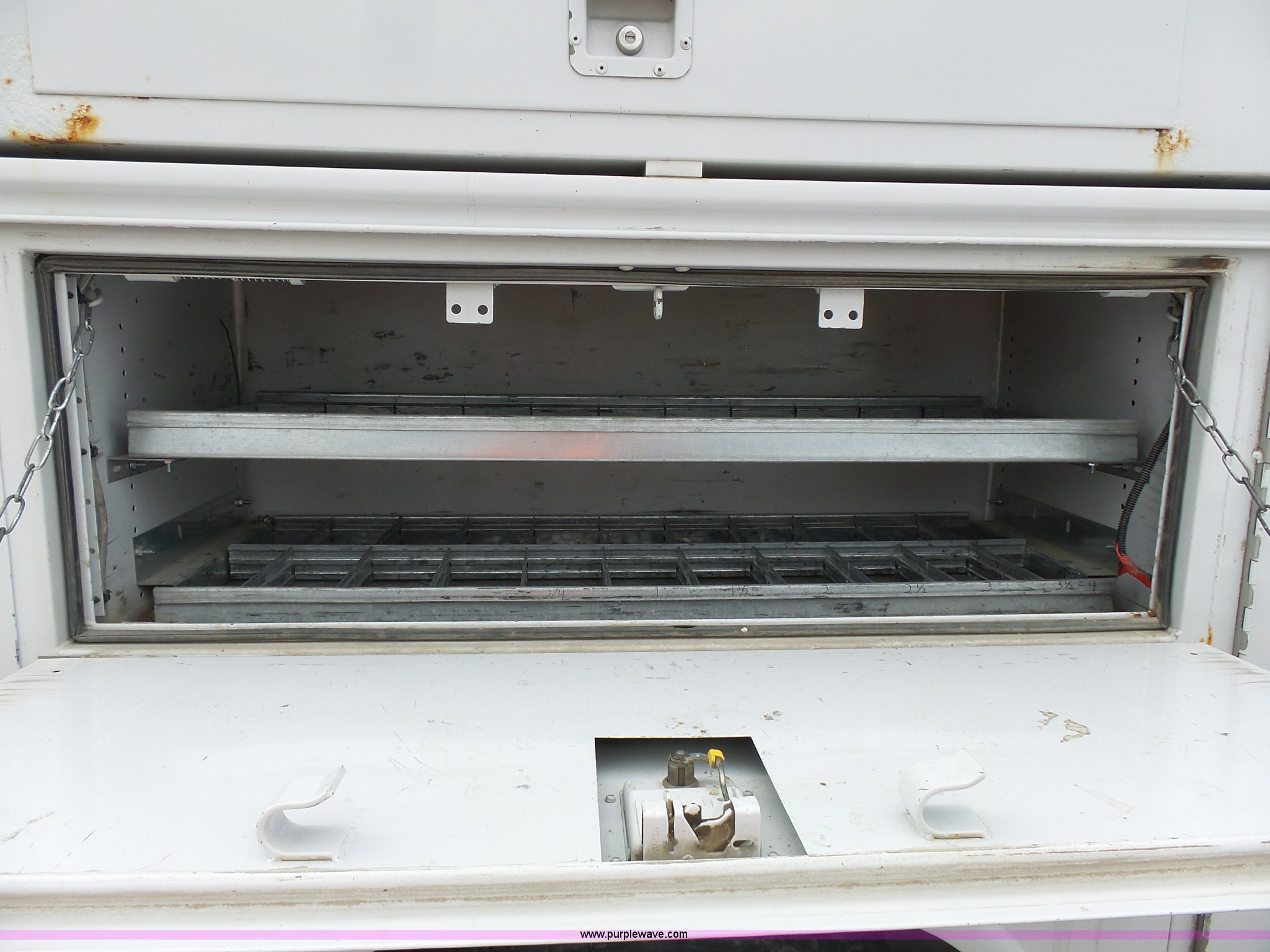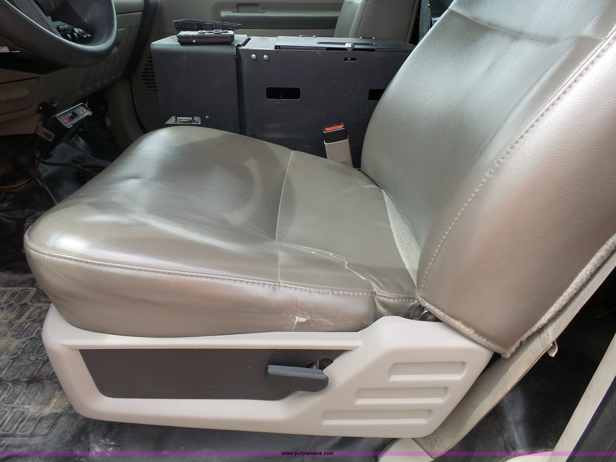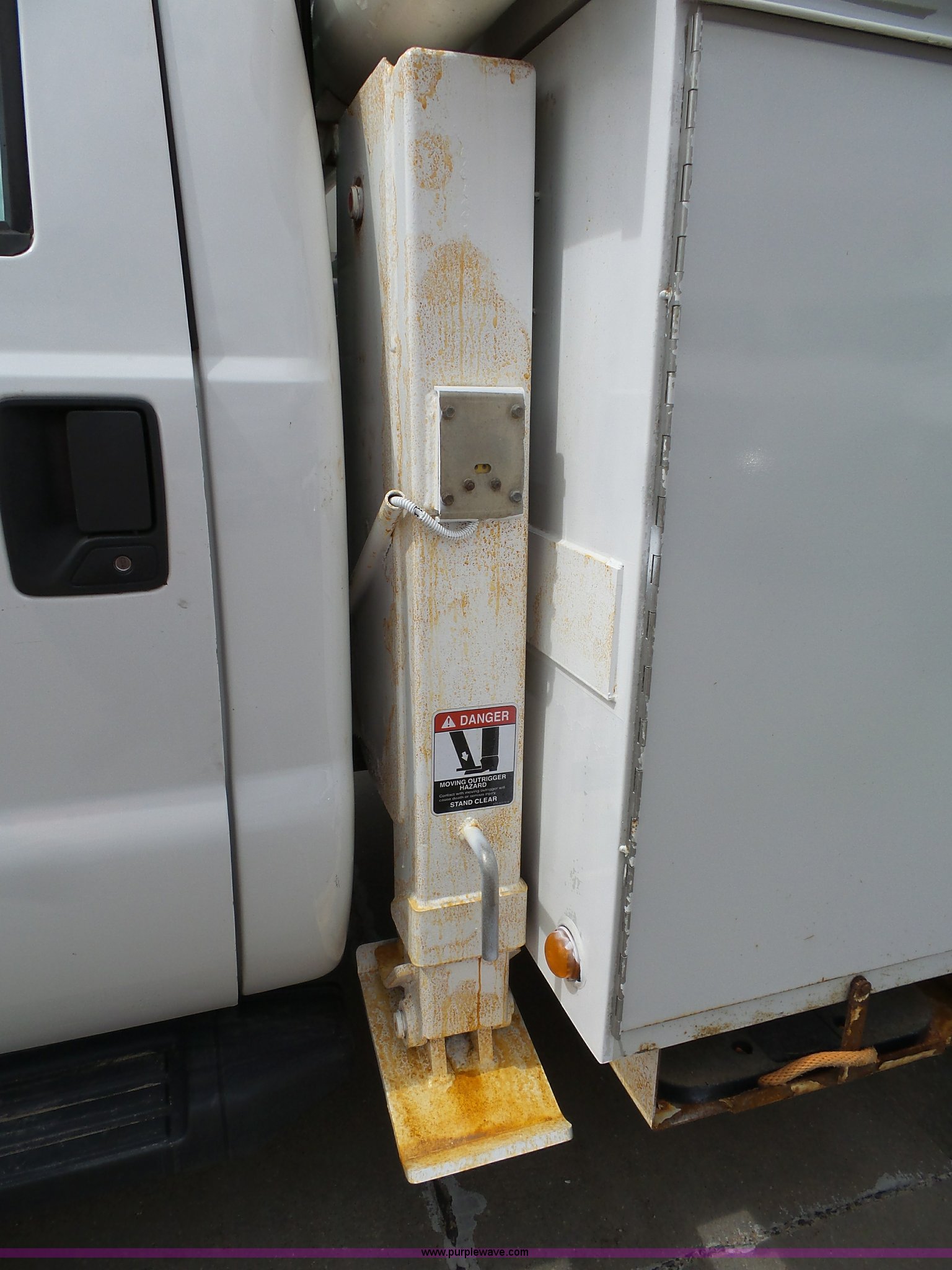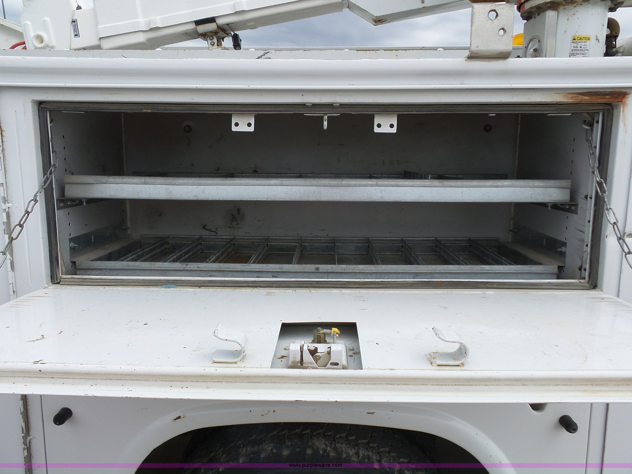 Purple Wave is selling a used Bucket Truck in Kansas. This item is a 2008 Ford F550 Super Duty bucket truck with the following: 147,428 miles on odometer, 6.4L V8 OHV 32V turbo diesel engine, Automatic transmission, Single axle, AC and heat, AM/FM, Beacon light, Front tow hooks, PTO, Altec 6102D545 service bed, 8.5'L, Slide-out drawers, Work lights, Ladder rack, Pintle hitch, 2007 Altec AT37G boom, 400 lbs maximum lift capacity, 37.5' maximum lift height, Ground and platform controls, (2) outriggers, Serial 0507DE8371, Spring suspension, Hydraulic brakes, 225/70R19.5 tires, GVWR 17,950 lbs, Inspection is out of date, Unit# 1337