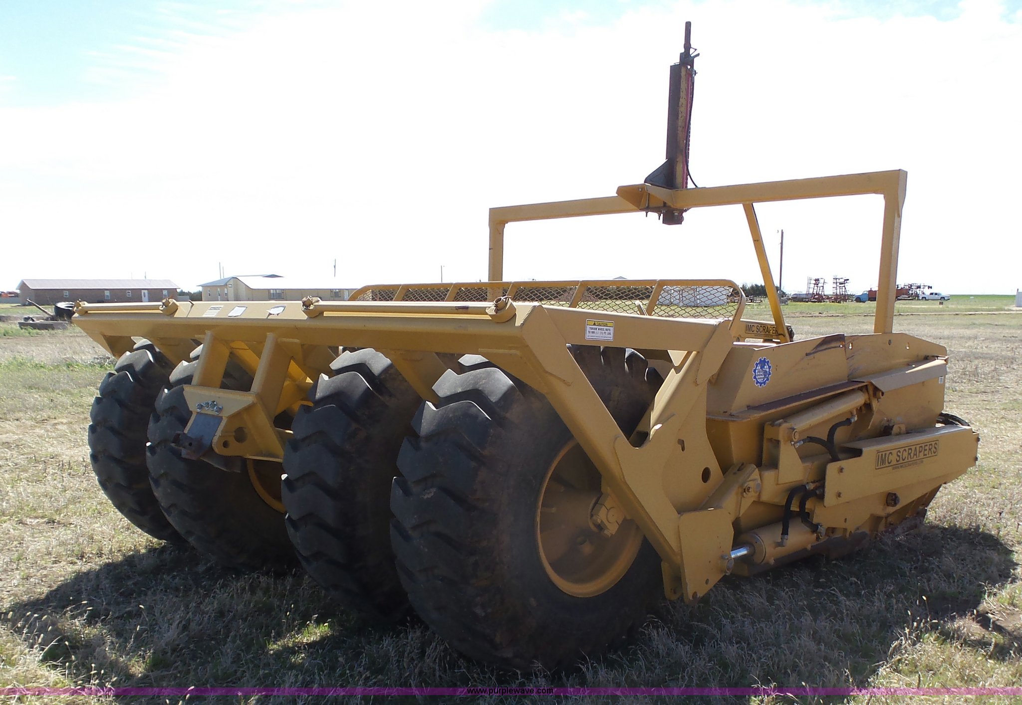 2011 IMC 17C12 scraper. 12' cutting width, 17 cubic yard capacity, Hydraulic lift, 20.5-25 tires, Serial 0468. 1587 Cotton Wood. Sublette, KS 67877