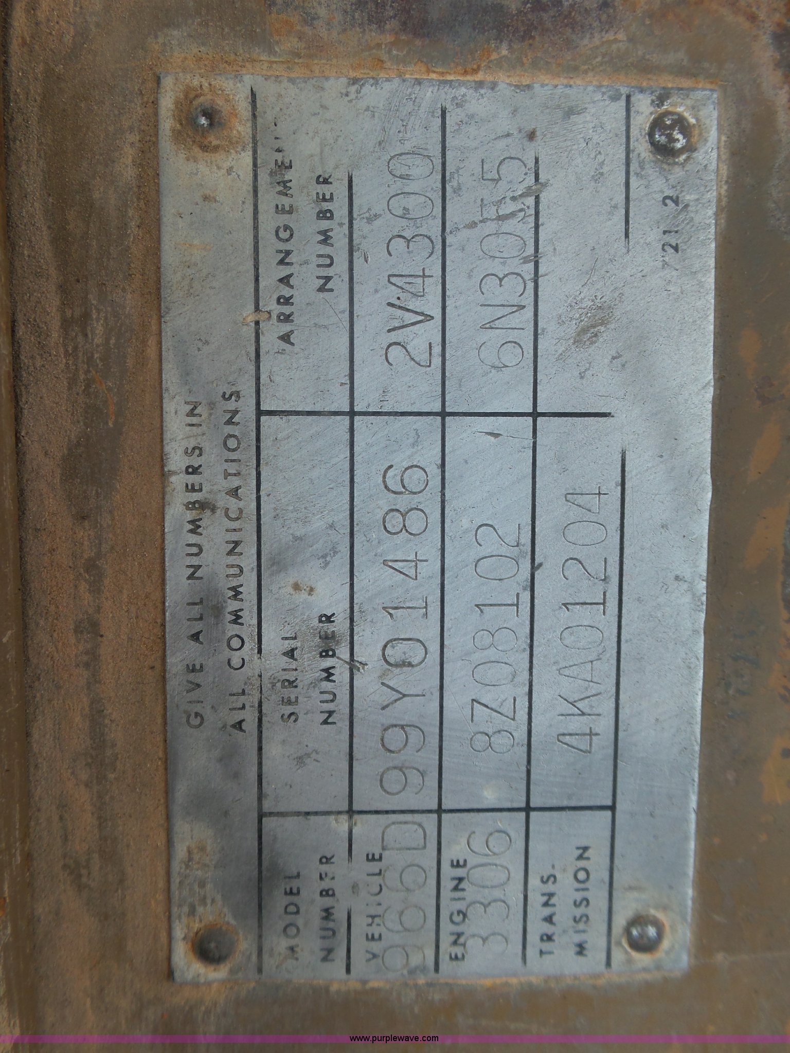 Purple Wave is selling a used Wheel Loader in Kansas. This item is a 1982 Caterpillar 966D wheel loader with the following: 17,716 hours on meter, Caterpillar 3306 six cylinder turbo diesel engine, Serial 8Z08102, Hydrostatic transmission, 4F gears, Enclosed cab, EROPS, AC and heat, Suspension seat, Front and rear work lights, Backup alarm, Caterpillar 7V1474-4 120"W general purpose bucket, Bolt-on cutting edge, Counterweights, 23.5 tires, 44,408 lbs. base operating weight, Serial 99Y01486, Unit# LD10