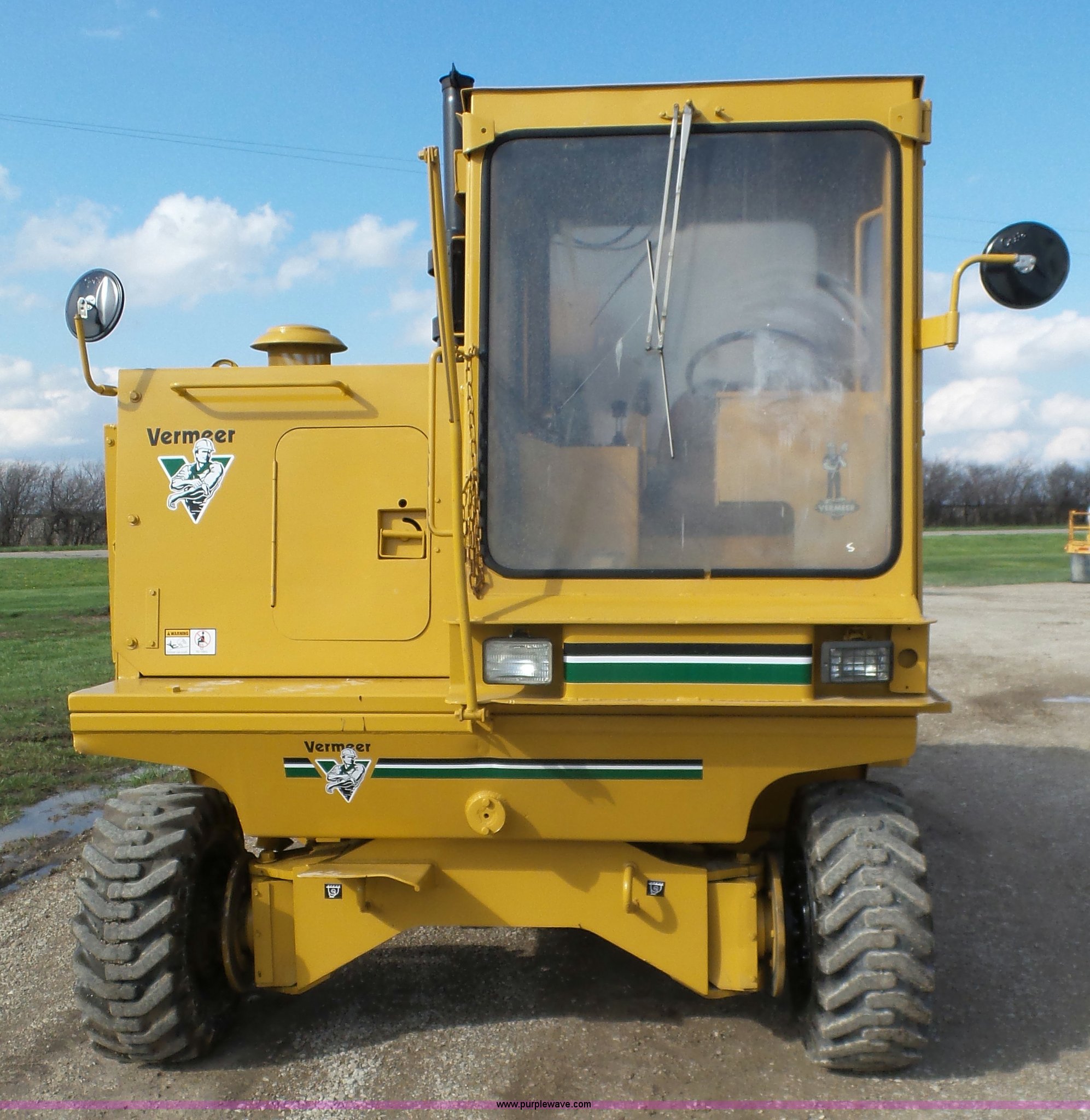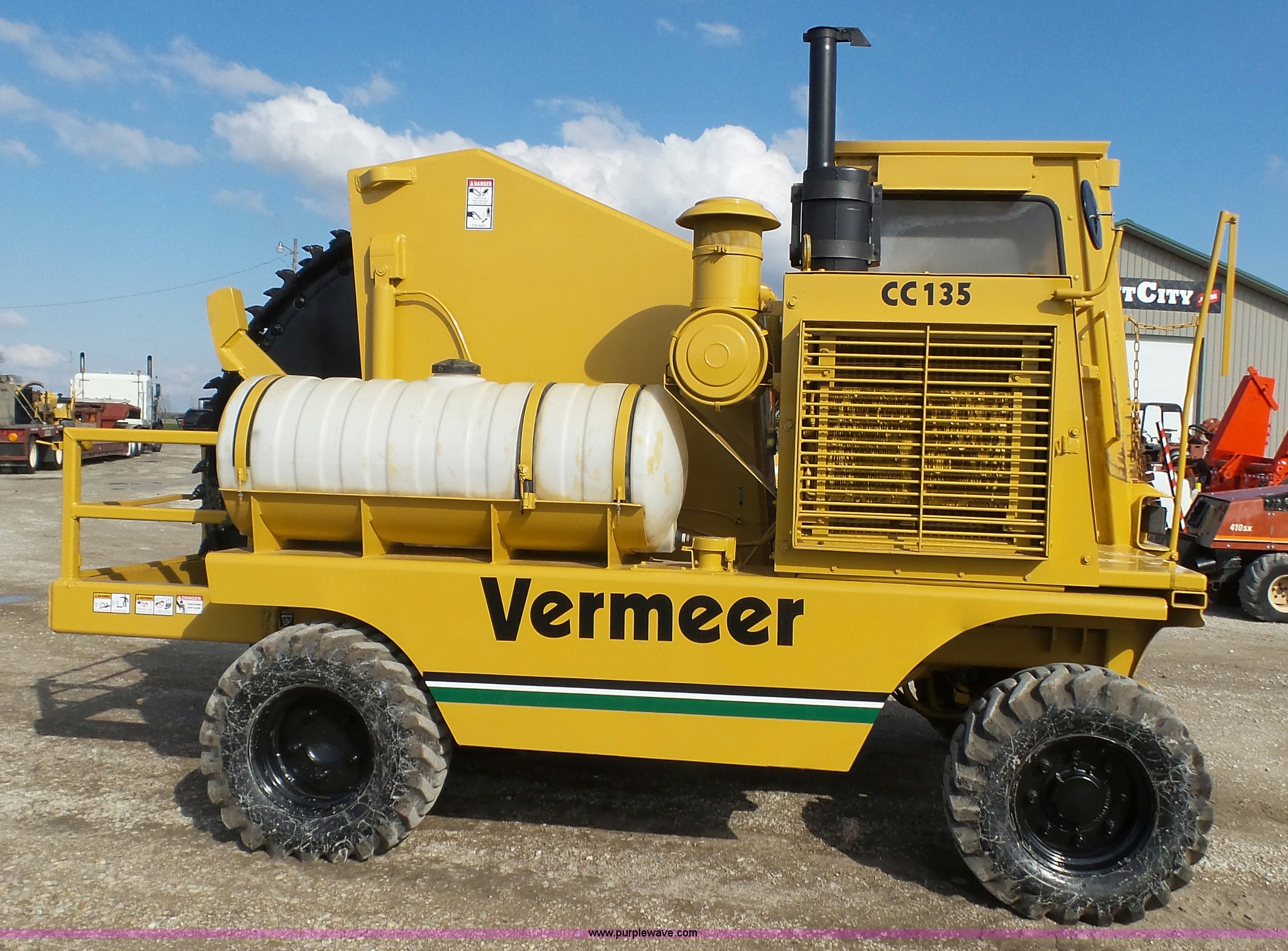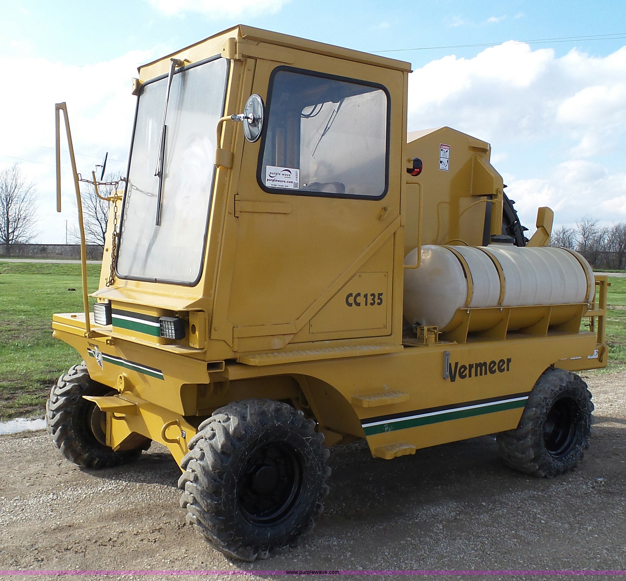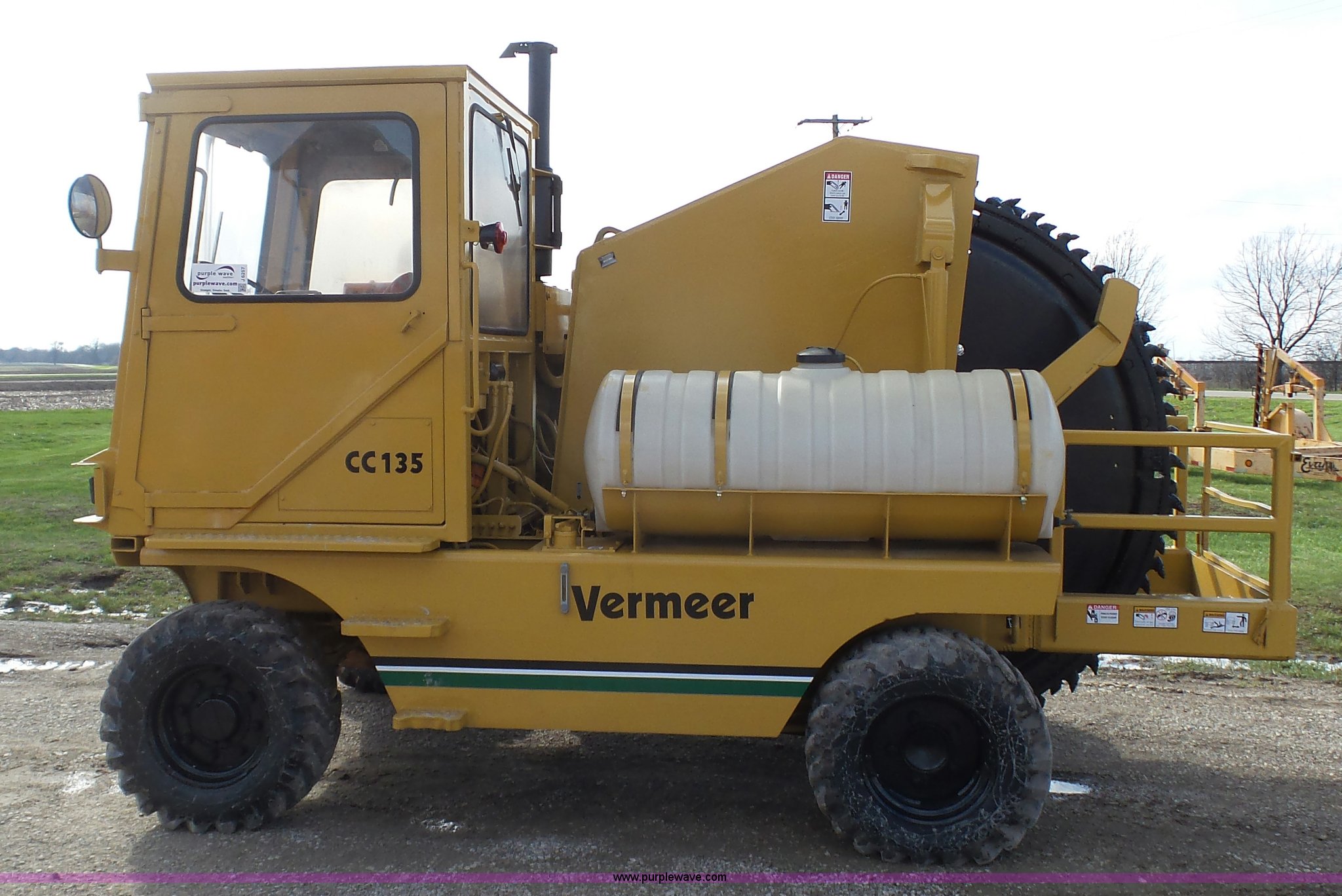 Purple Wave is selling a used Trencher or Rock Saw in Illinois. This item is a Vermeer CC135 rock saw with the following: 3,954 hours on meter, Detroit Diesel three cylinder diesel engine, Hydrostatic transmission, Four wheel drive, EROPS, AC and heat, Unknown operating condition of AC and heat, Suspension seat, Front work lights, 84" diameter x 4"W rock wheel, (110) teeth, 12-16.5 tires, Serial 1VRF122V3L1000326