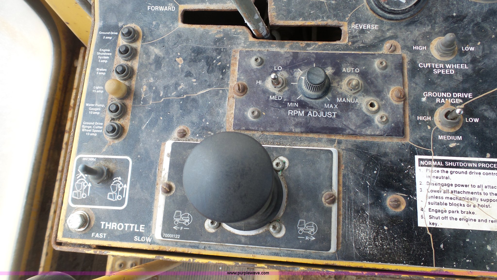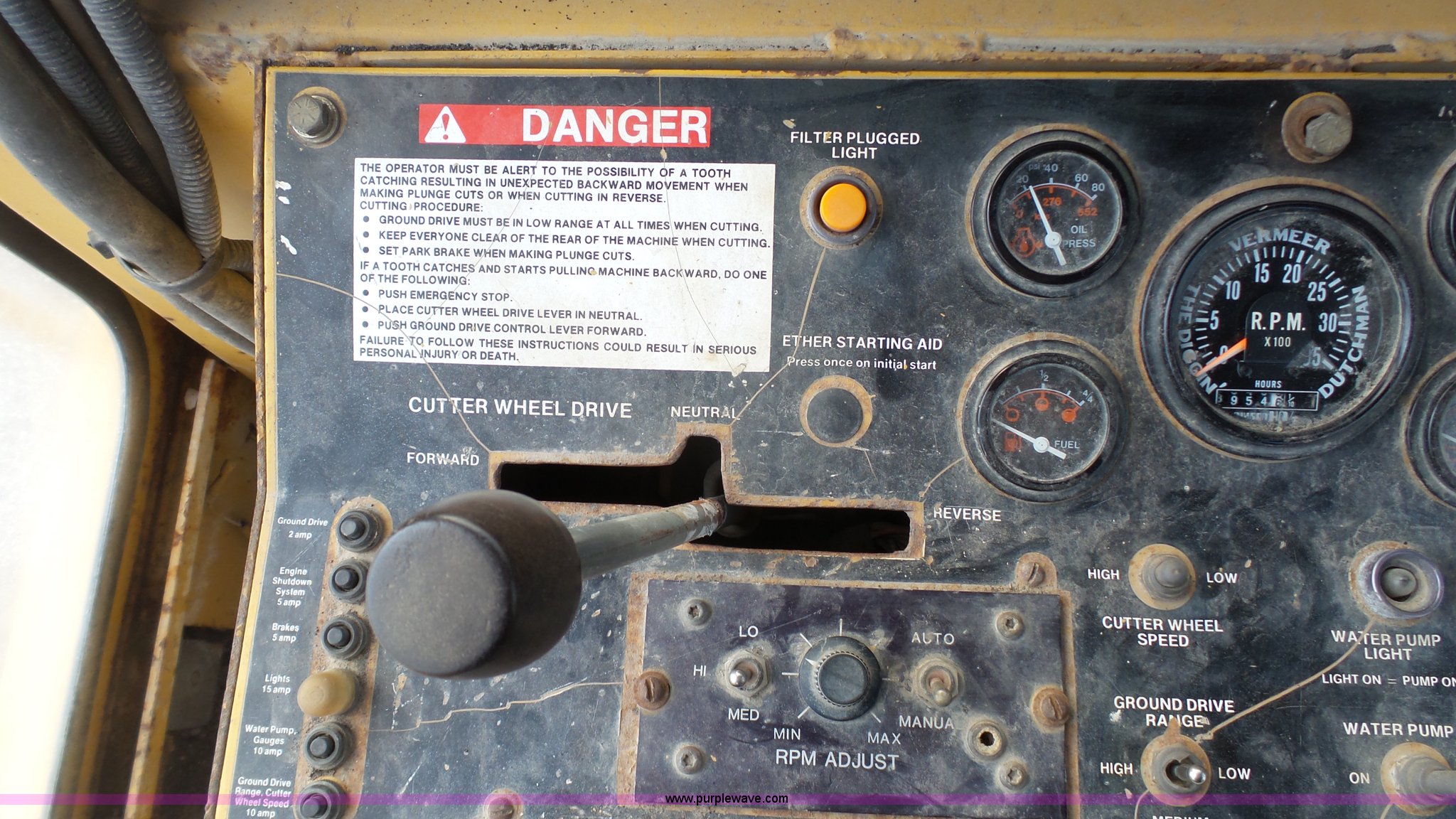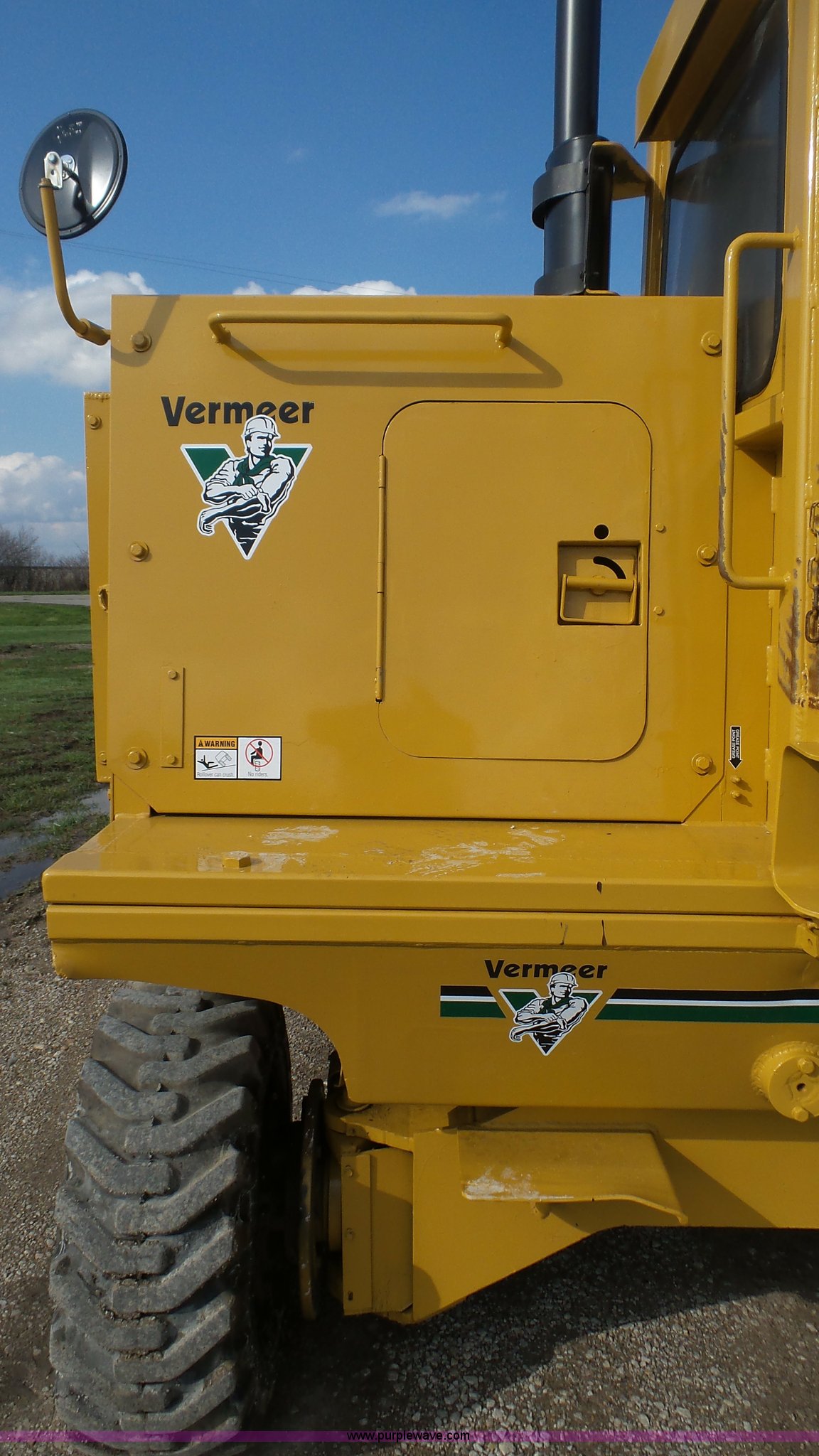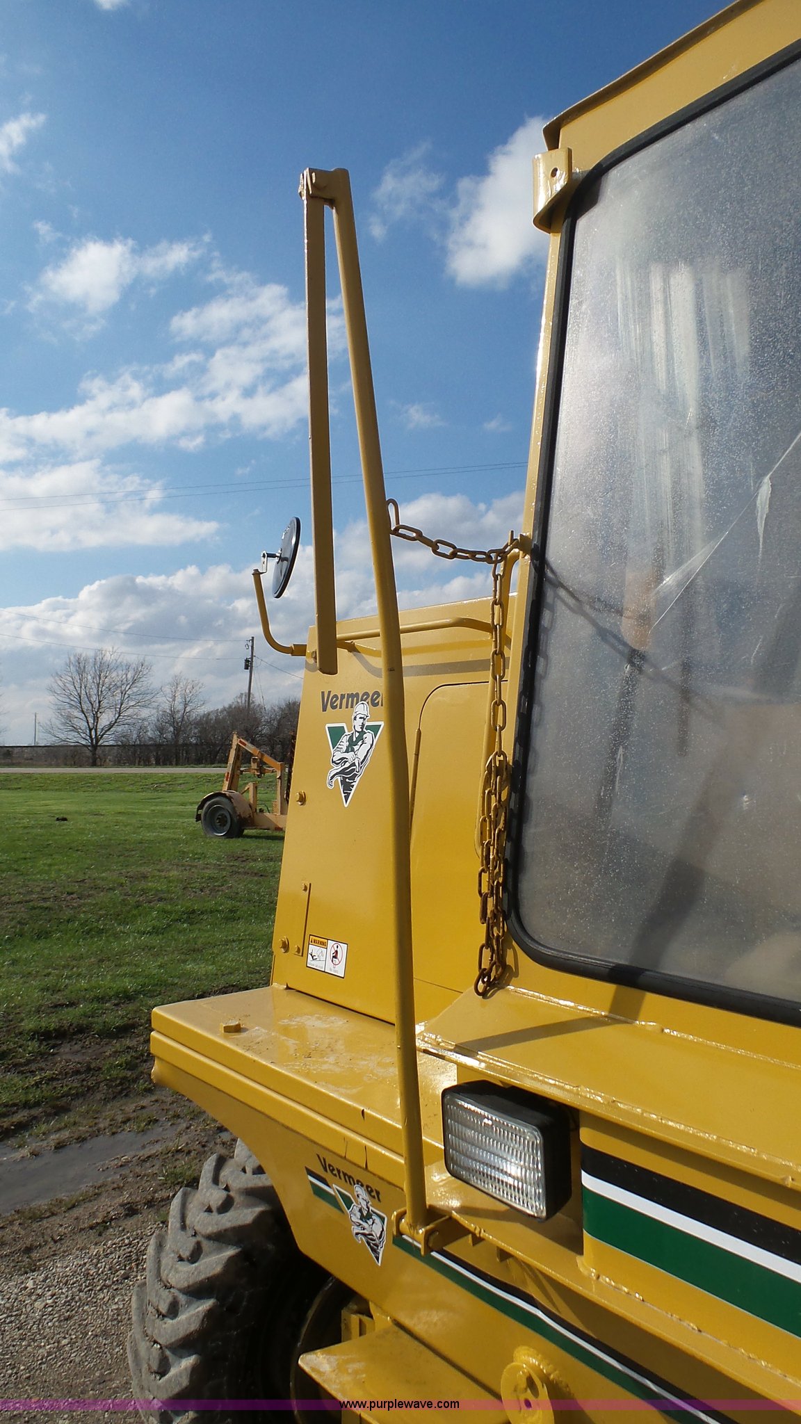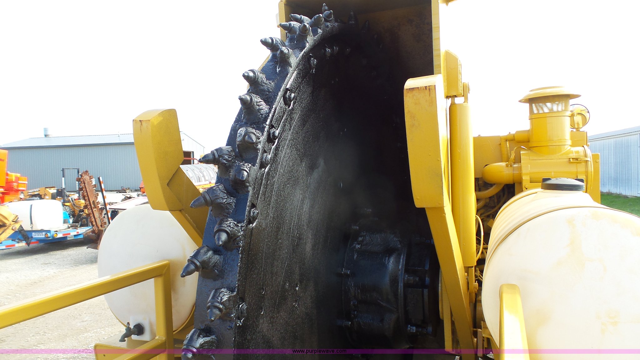 Purple Wave is selling a used Trencher or Rock Saw in Illinois. This item is a Vermeer CC135 rock saw with the following: 3,954 hours on meter, Detroit Diesel three cylinder diesel engine, Hydrostatic transmission, Four wheel drive, EROPS, AC and heat, Unknown operating condition of AC and heat, Suspension seat, Front work lights, 84" diameter x 4"W rock wheel, (110) teeth, 12-16.5 tires, Serial 1VRF122V3L1000326