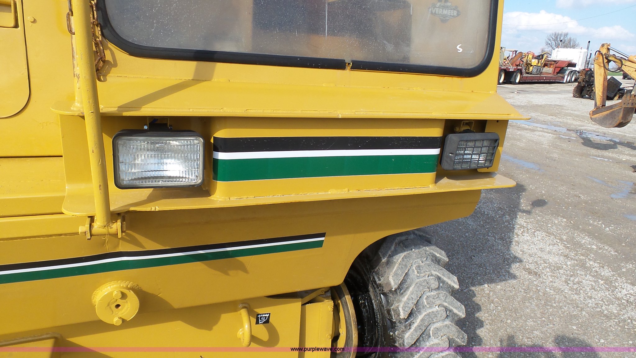Vermeer CC135 rock saw. 3,954 hours on meter, Detroit Diesel three cylinder diesel engine, Hydrostatic transmission, Four wheel drive, EROPS, AC and heat Unknown operating condition of AC and heat, Suspension seat, Front work lights, 84" diameter x 4"W rock wheel (110) teeth, 12-16.5 tires, Serial 1VRF122V3L1000326. Clinton, IL 61727