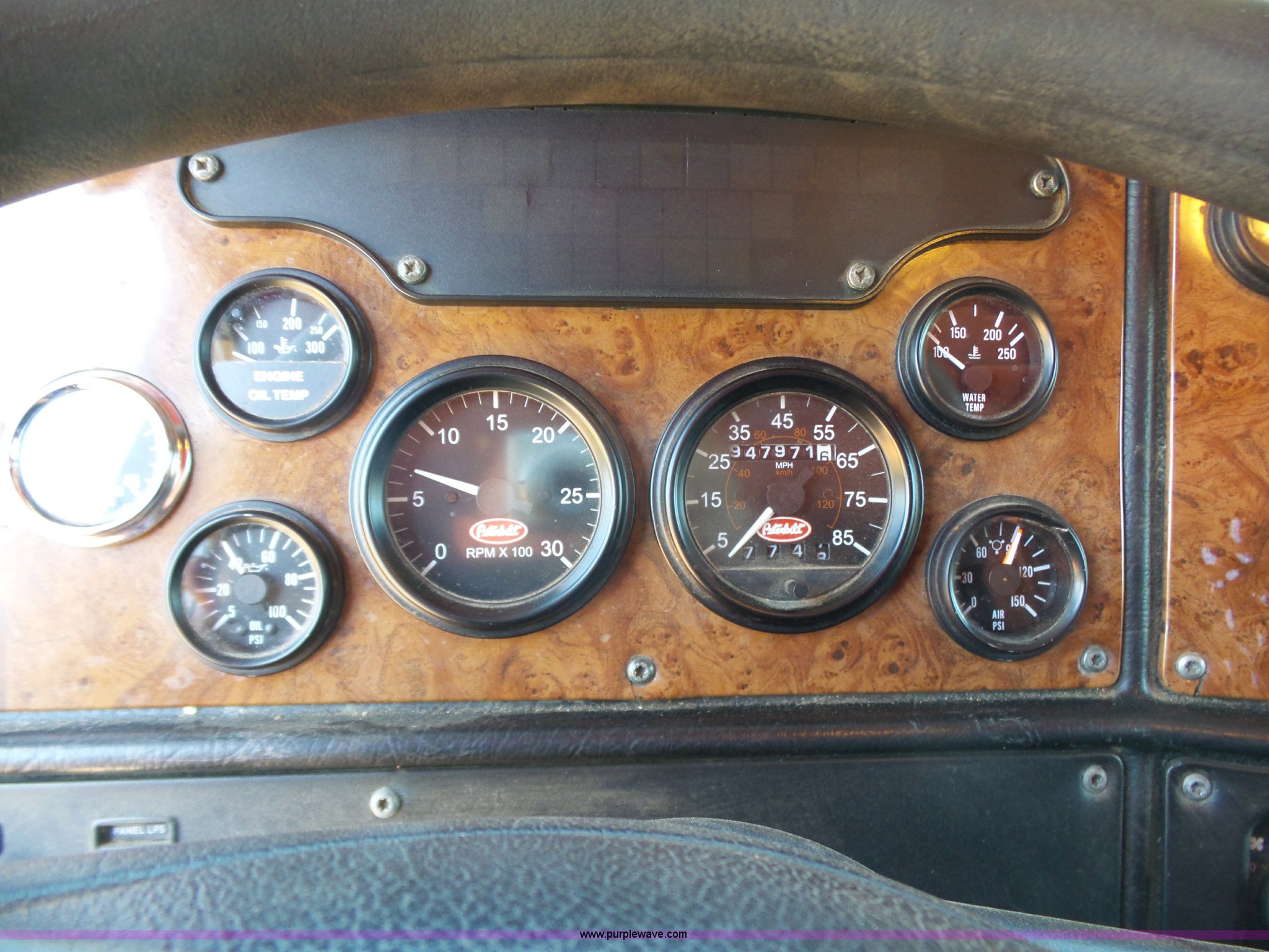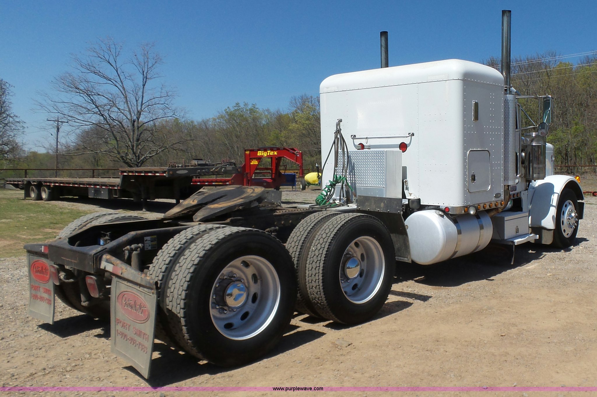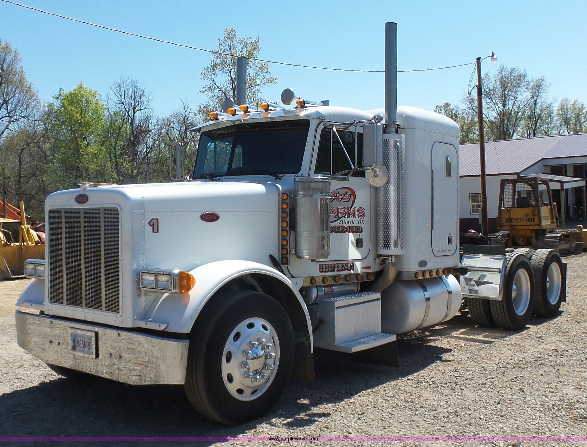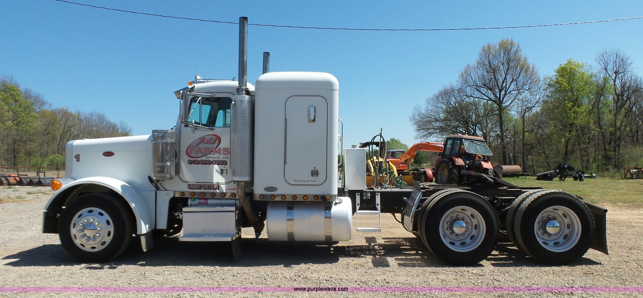 Purple Wave is selling a used Truck Tractor in Oklahoma. This item is a 2004 Peterbilt 379 semi truck with the following: 947,971 miles on odometer, Caterpillar C12 six cylinder turbo diesel engine, Approximately 100,000 miles on in-frame overhaul, Eaton Fuller 10 speed manual transmission, Tandem axle, Inter-axle differential lock, AC and heat, Tilt, Cruise, AM/FM/CD, Heated mirrors, Air suspension seat, Leather seat, Air ride cab, Peterbilt Unibuilt sleeper, Single bed, Storage cabinets, Rear climate control, Hanging closet, Block heater, Front tow hooks, Exterior visor, PTO, Wet kit, Air operated sliding fifth wheel plate, Dual rear exhaust stacks, Dual fuel tanks, Aluminum quarter fenders, Air brakes, Engine brake, 285/75R24.5 tires, GVWR 50,000 lbs, FAWR 12,000 lbs, IAWR 19,000 lbs, RAWR 19,000 lbs, AC components, turbo, and injectors replaced June 2015, Wet kit less than two years old