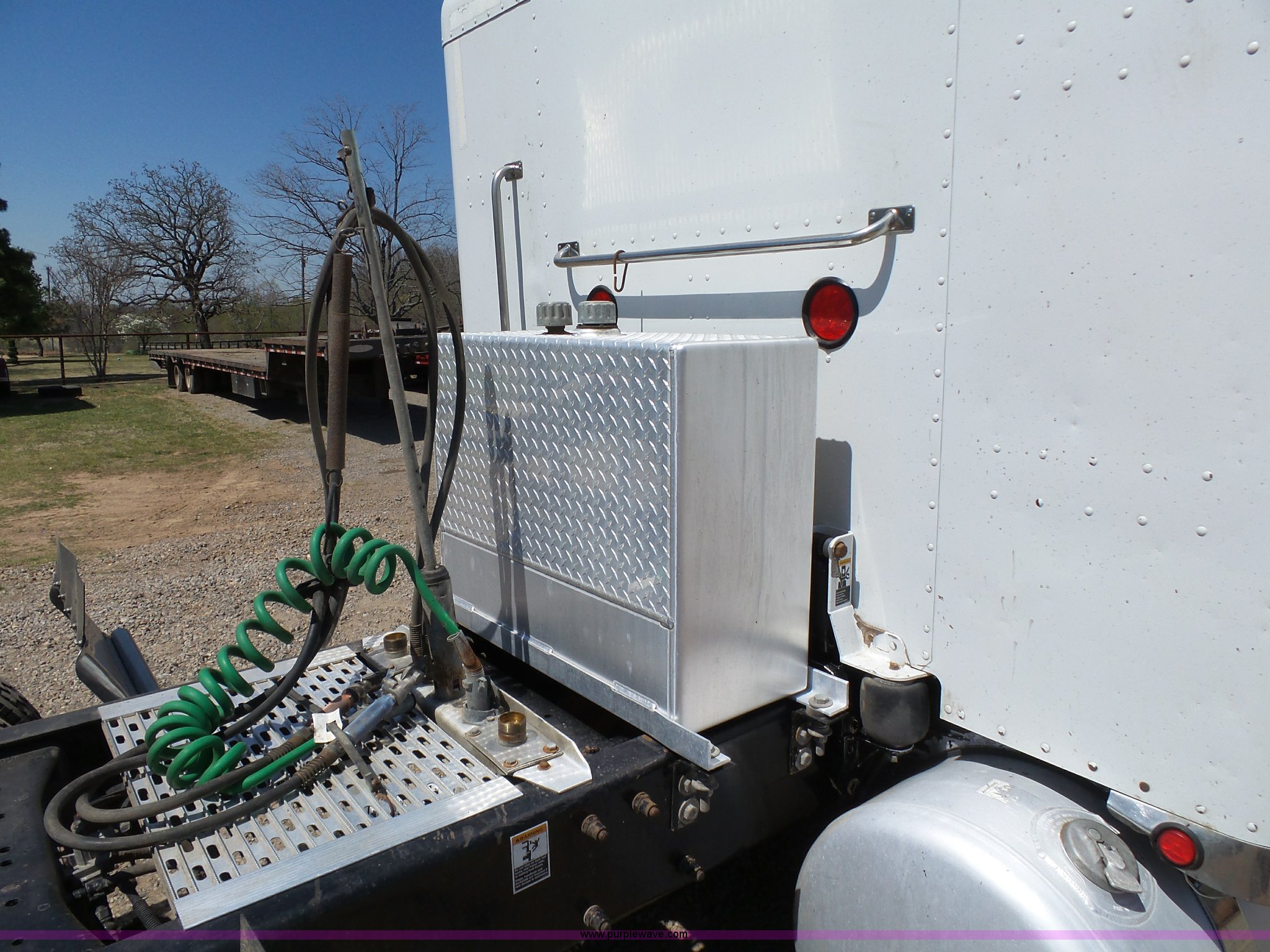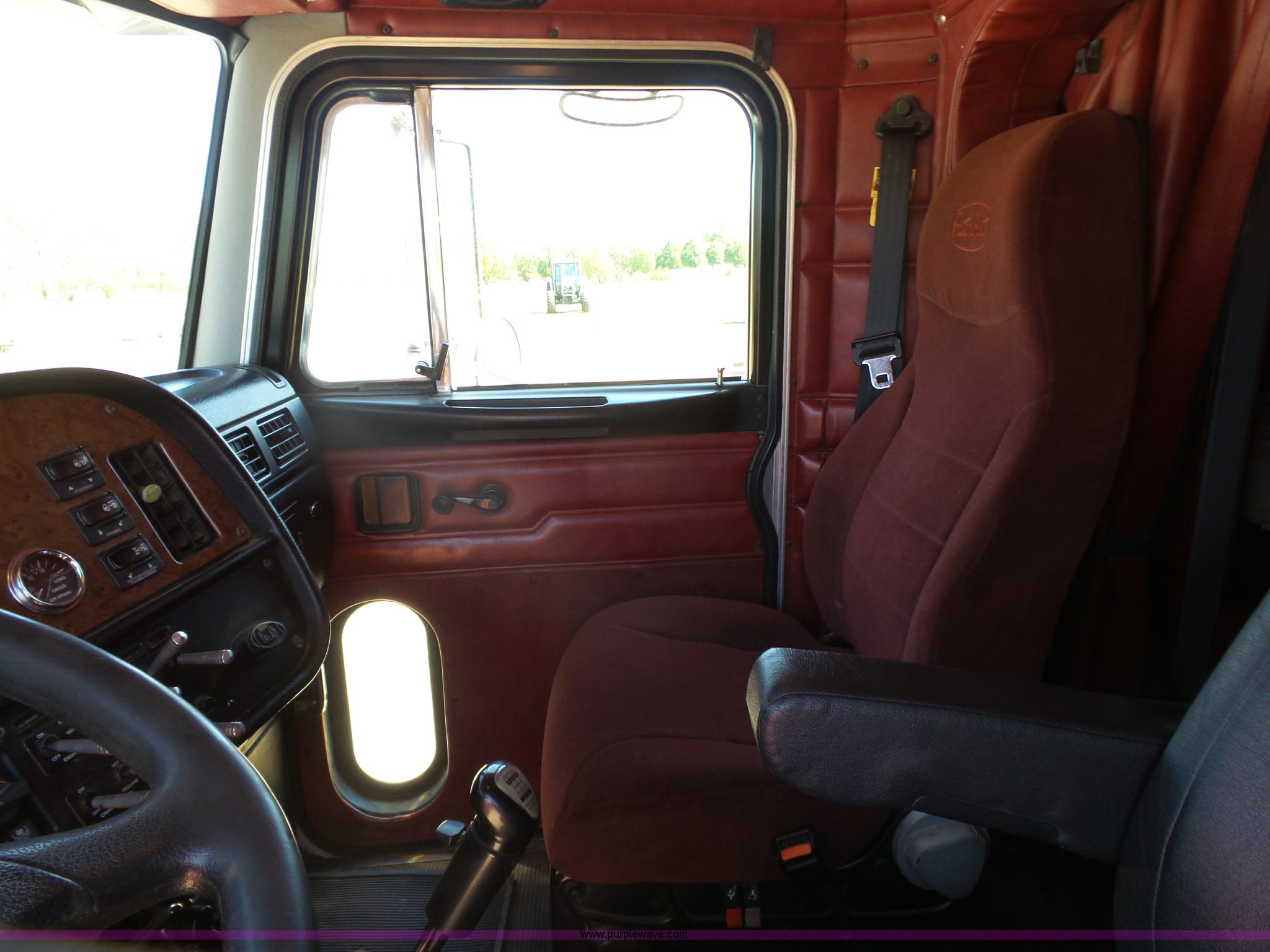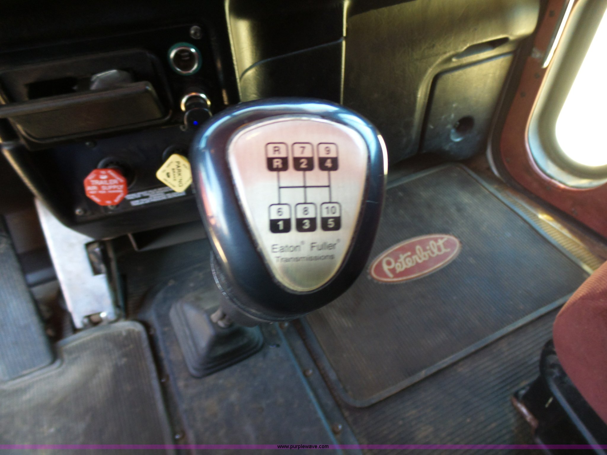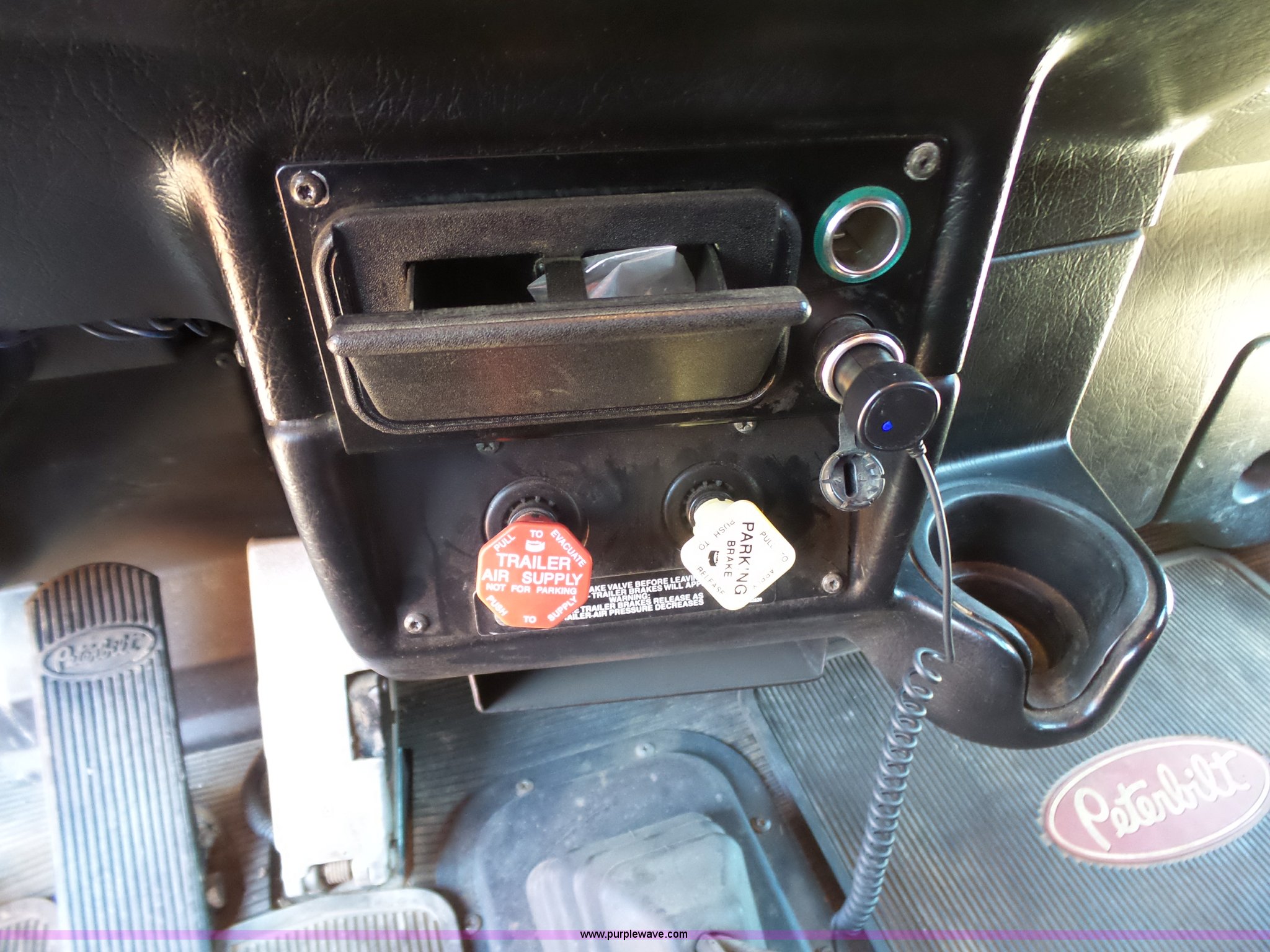 Purple Wave is selling a used Truck Tractor in Oklahoma. This item is a 2004 Peterbilt 379 semi truck with the following: 947,971 miles on odometer, Caterpillar C12 six cylinder turbo diesel engine, Approximately 100,000 miles on in-frame overhaul, Eaton Fuller 10 speed manual transmission, Tandem axle, Inter-axle differential lock, AC and heat, Tilt, Cruise, AM/FM/CD, Heated mirrors, Air suspension seat, Leather seat, Air ride cab, Peterbilt Unibuilt sleeper, Single bed, Storage cabinets, Rear climate control, Hanging closet, Block heater, Front tow hooks, Exterior visor, PTO, Wet kit, Air operated sliding fifth wheel plate, Dual rear exhaust stacks, Dual fuel tanks, Aluminum quarter fenders, Air brakes, Engine brake, 285/75R24.5 tires, GVWR 50,000 lbs, FAWR 12,000 lbs, IAWR 19,000 lbs, RAWR 19,000 lbs, AC components, turbo, and injectors replaced June 2015, Wet kit less than two years old