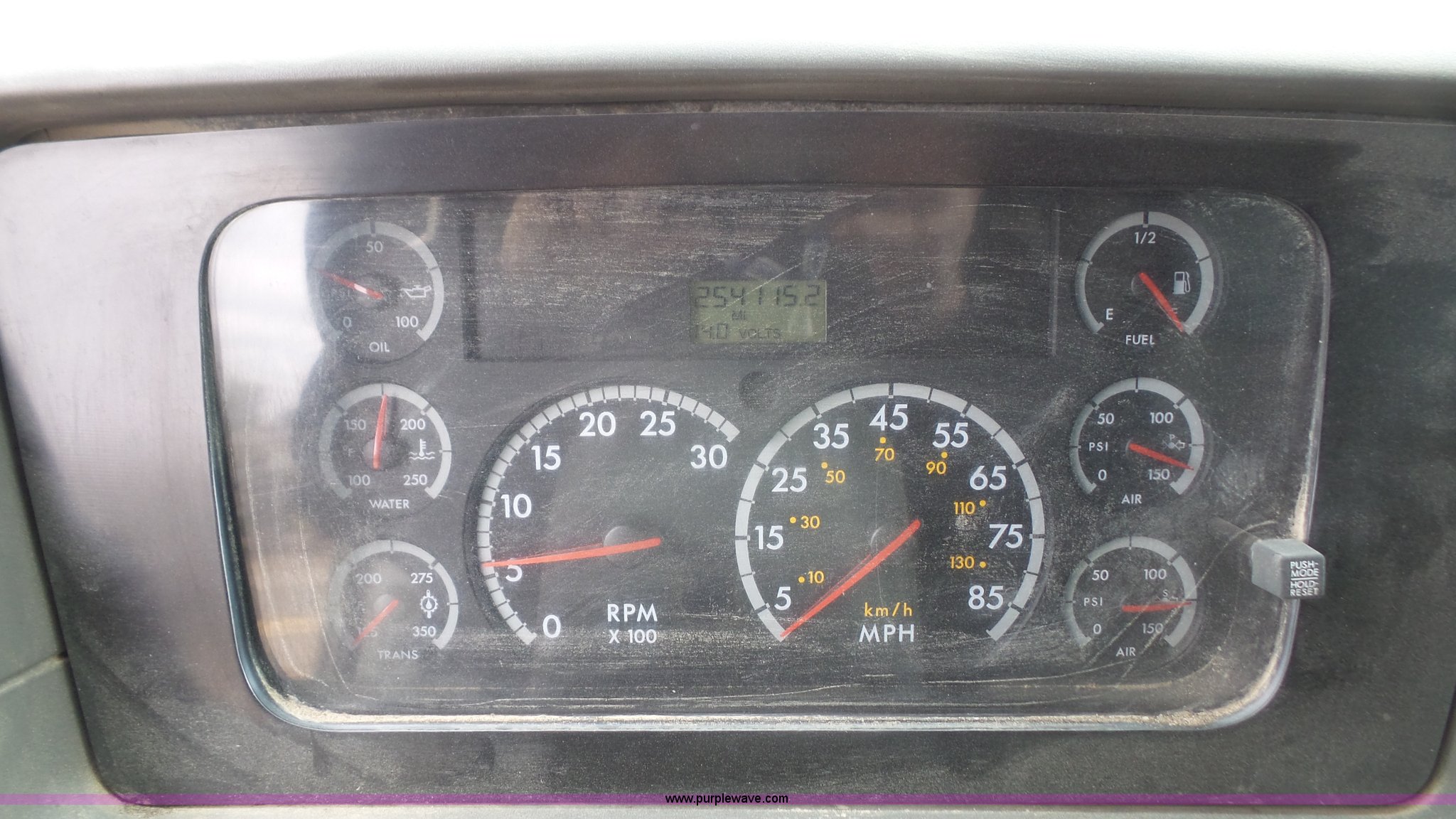 Purple Wave is selling a used Construction Dump Truck in Kansas. This item is a 2008 Sterling L9500 dump truck with the following: 254,115 miles on odometer, 10,972 hours on meter, Miles and hours may vary, vehicle is still in use, Mercedes Benz MBE4000 12.0L I6 turbo diesel engine, 450 HP, Automatic transmission, Tandem axle, Inter-axle differential lock, AC and heat, AM/FM/CD, Power windows, Heated mirrors, Air suspension seat, Air ride cab, PTO, 15'L x 96"W barrel bed, 48" side height, Single ram hoist, Air operated end gate, Snow plow bracket, Single fuel tank, Spring suspension, Air brakes, 385/65R22.5 front tires, 11R22.5 rear tires, GVWR 58,740 lbs, FAWR 18,740 lbs, IAWR 20,000 lbs, RAWR 20,000 lbs, Dash damaged, Right front fender damaged