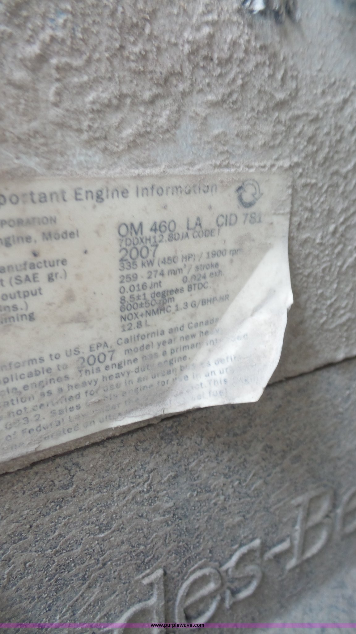 2008 Sterling L9500 dump truck. 254,115 miles on odometer, 10,972 hours on meter, Miles and hours may vary, vehicle is still in use, Mercedes Benz MBE4000 12.0L I6 turbo diesel engine 450 HP, Automatic transmission, Tandem axle, Inter-axle differential lock, AC and heat, AM/FM/CD, Power windows, Heated mirrors, Air suspension seat, Air ride cab, PTO, 15'L x 96"W barrel bed 48" side height, Single ram hoist, Air operated end gate, Snow plow bracket, Single fuel tank, Spring suspension, Air brakes, 385/65R22.5 front tires, 11R22.5 rear tires, GVWR 58,740 lbs, FAWR 18,740 lbs, IAWR 20,000 lbs, RAWR 20,000 lbs, Dash damaged, Right front fender damaged. Kansas title. 2FZHAZCV88AZ07657. Leavenworth County. 26370 187th Street. Leavenworth, KS 66048