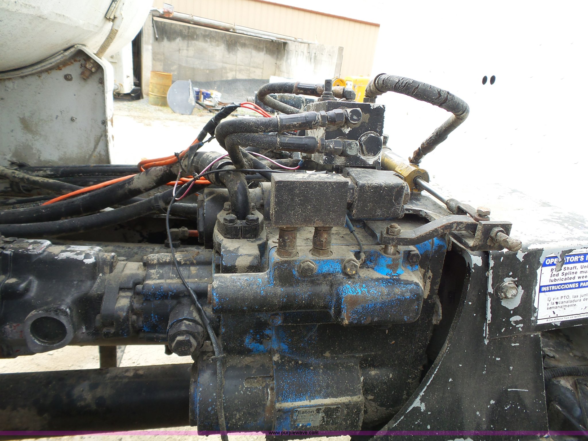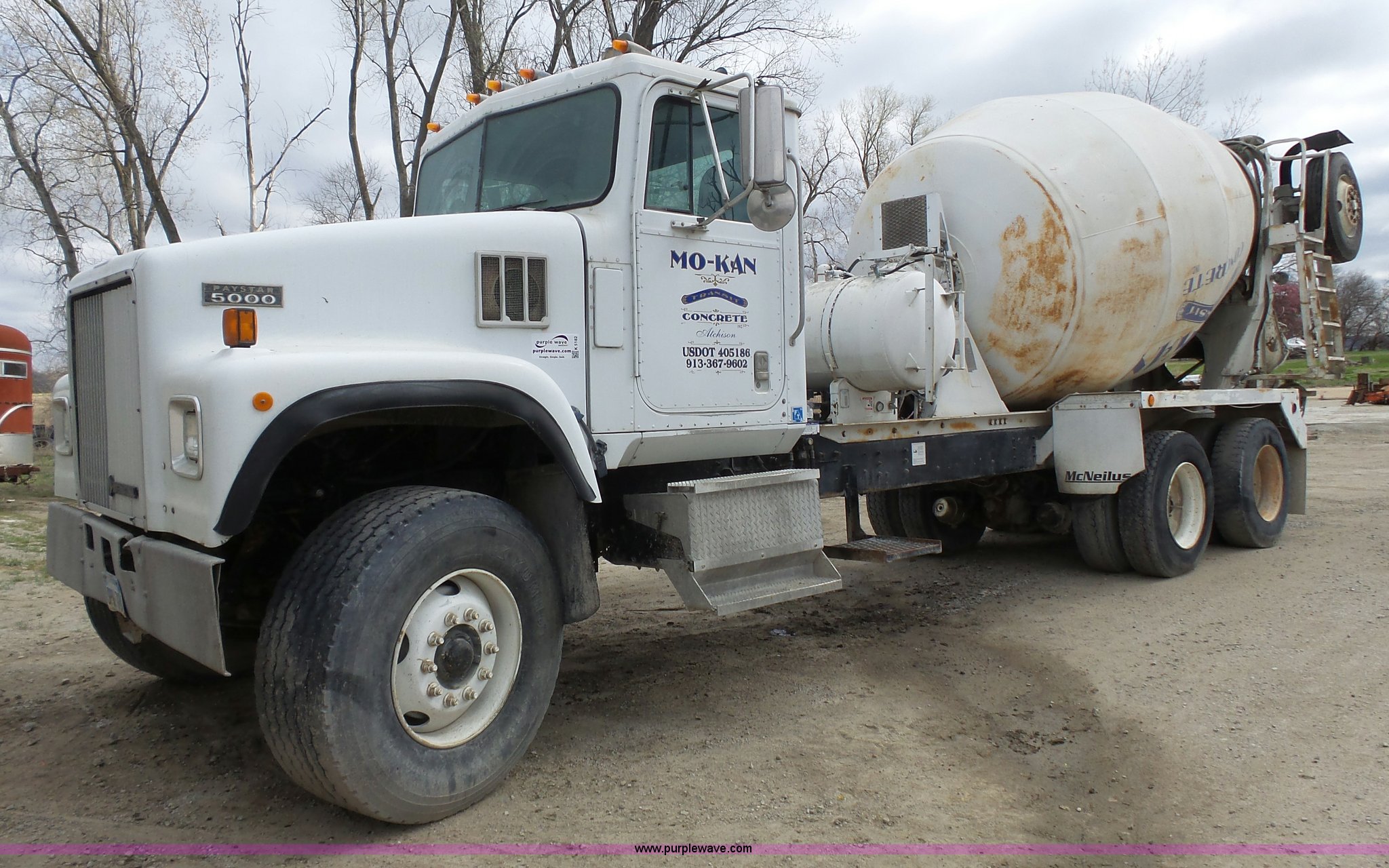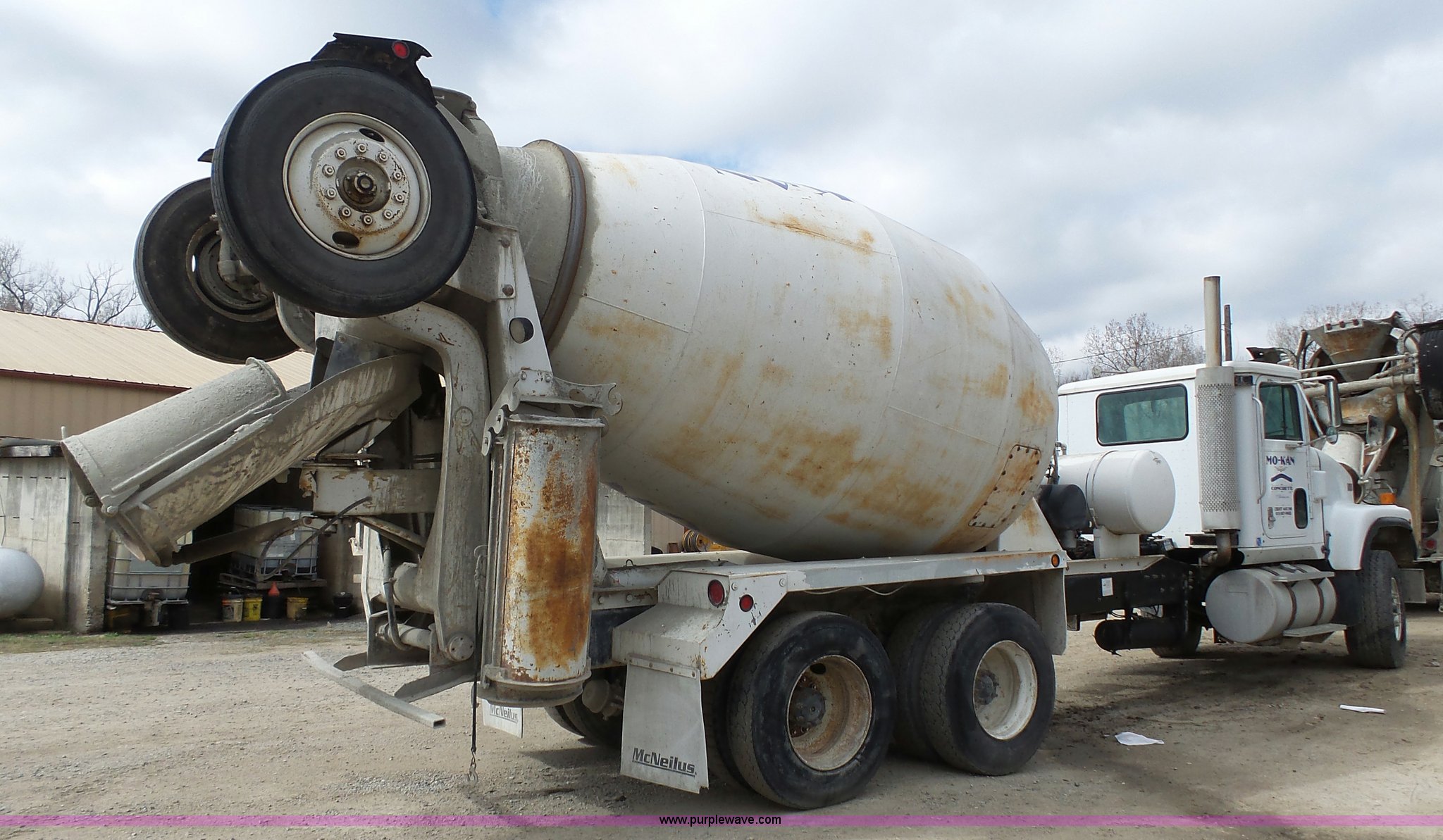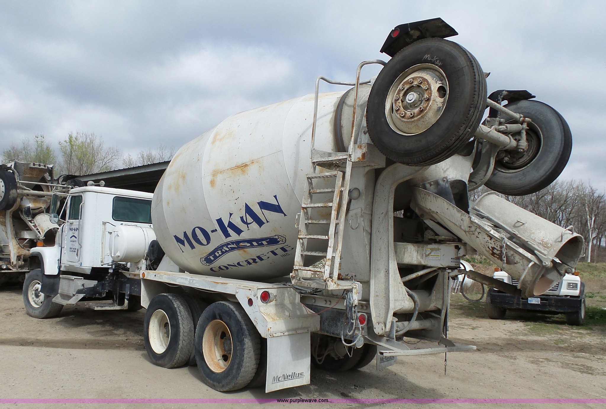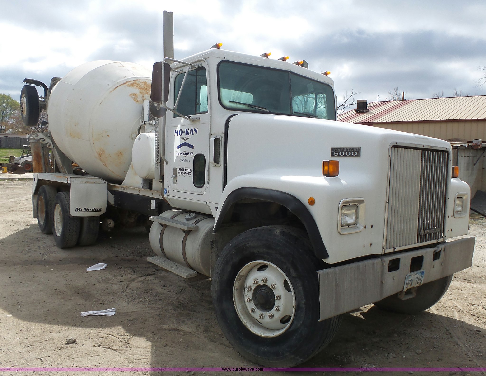 Purple Wave is selling a used Ready Mix or Pump Truck in Missouri. This item is a 1996 International 5070 mixer truck with the following: 121,962 miles on odometer, 17,436 hours on meter, Cummins M11 10.8L L6 turbo diesel engine, 280 HP, Eaton Fuller nine speed manual transmission, Tandem axle, Inter-axle differential lock, Heat, Cruise, Air suspension seat, 1995 McNeilus steel mixer bed, 11 cubic yard capacity, Serial 39429-07289, Rear drum controls, (3) chute extensions, 150 gallon water tank, Central hydraulics, Spring over walking beam suspension, 425/65R22.5 front tires, 11R22.5 rear tires, 11R22.5 tag axle tires, GVWR 79,000 lbs, FAWR 20,000 lbs, IAWR 23,000 lbs, RAWR 23,000 lbs, 13,000 lbs tag axle, Check engine light is on, One owner
