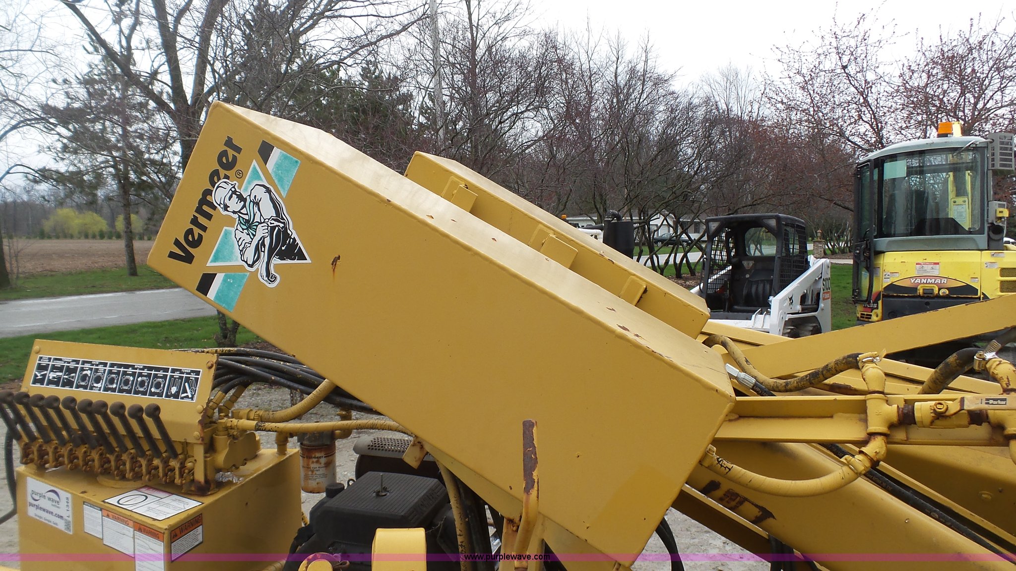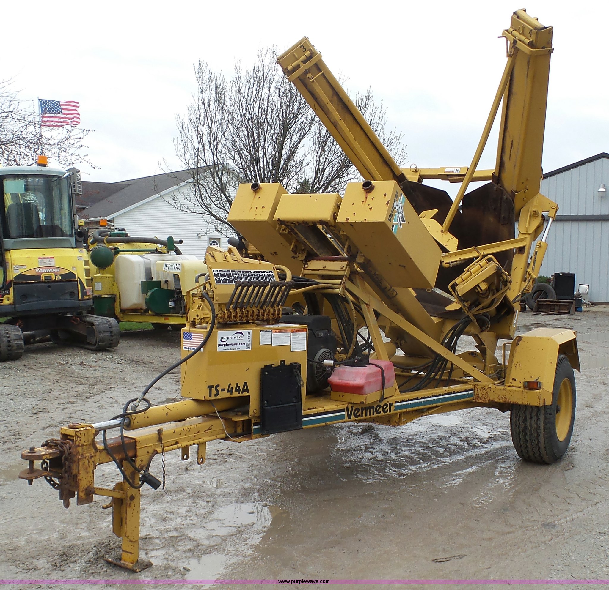 Purple Wave is selling a used Tree Spade in Indiana. This item is a 1998 Vermeer TS-44A tree spade with the following: Kohler CH203 two cylinder gas engine, 16' overall length, 44" spade, Electric brakes, 12-16 tires, Serial 1VRC161P6W1005196