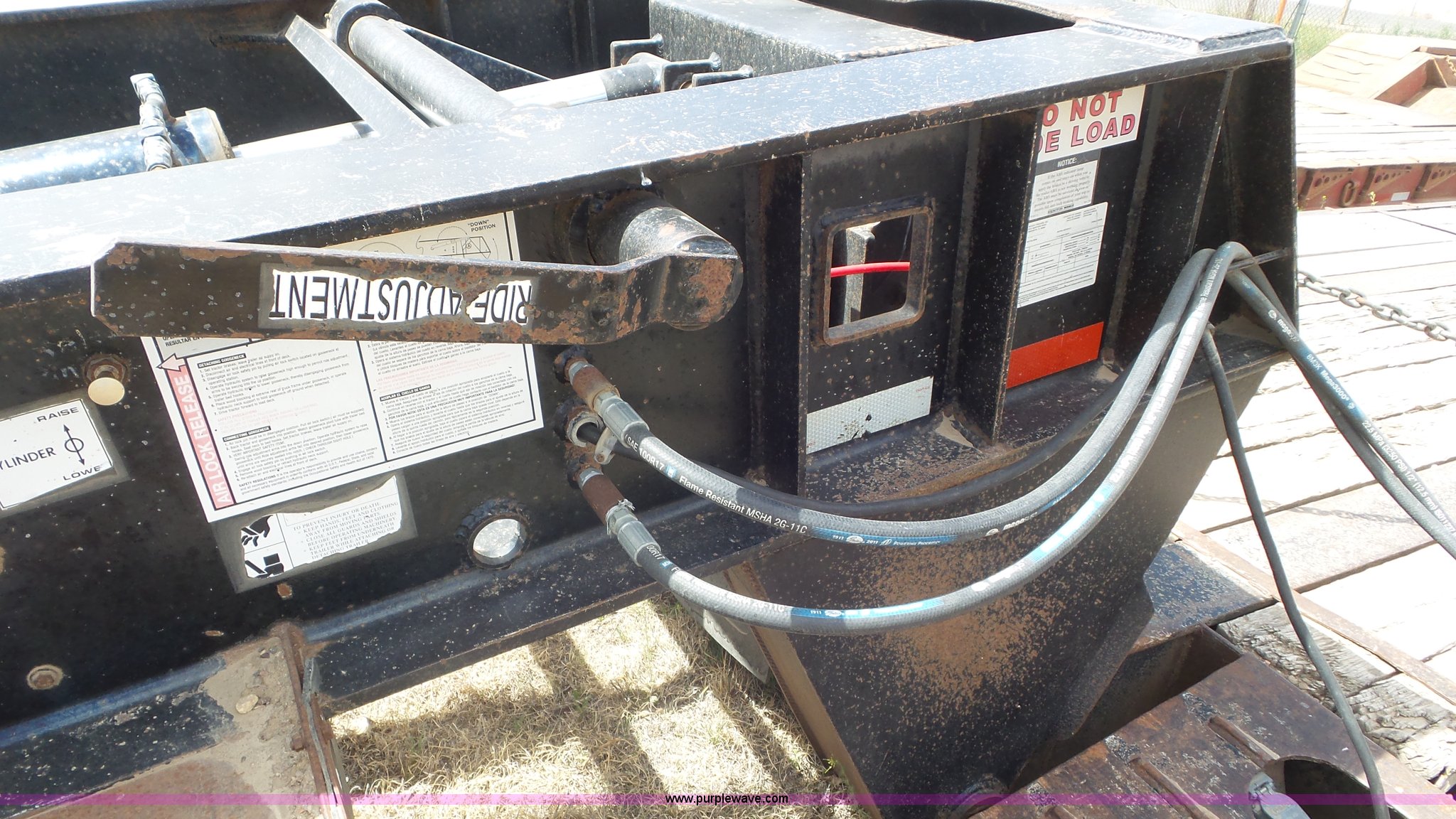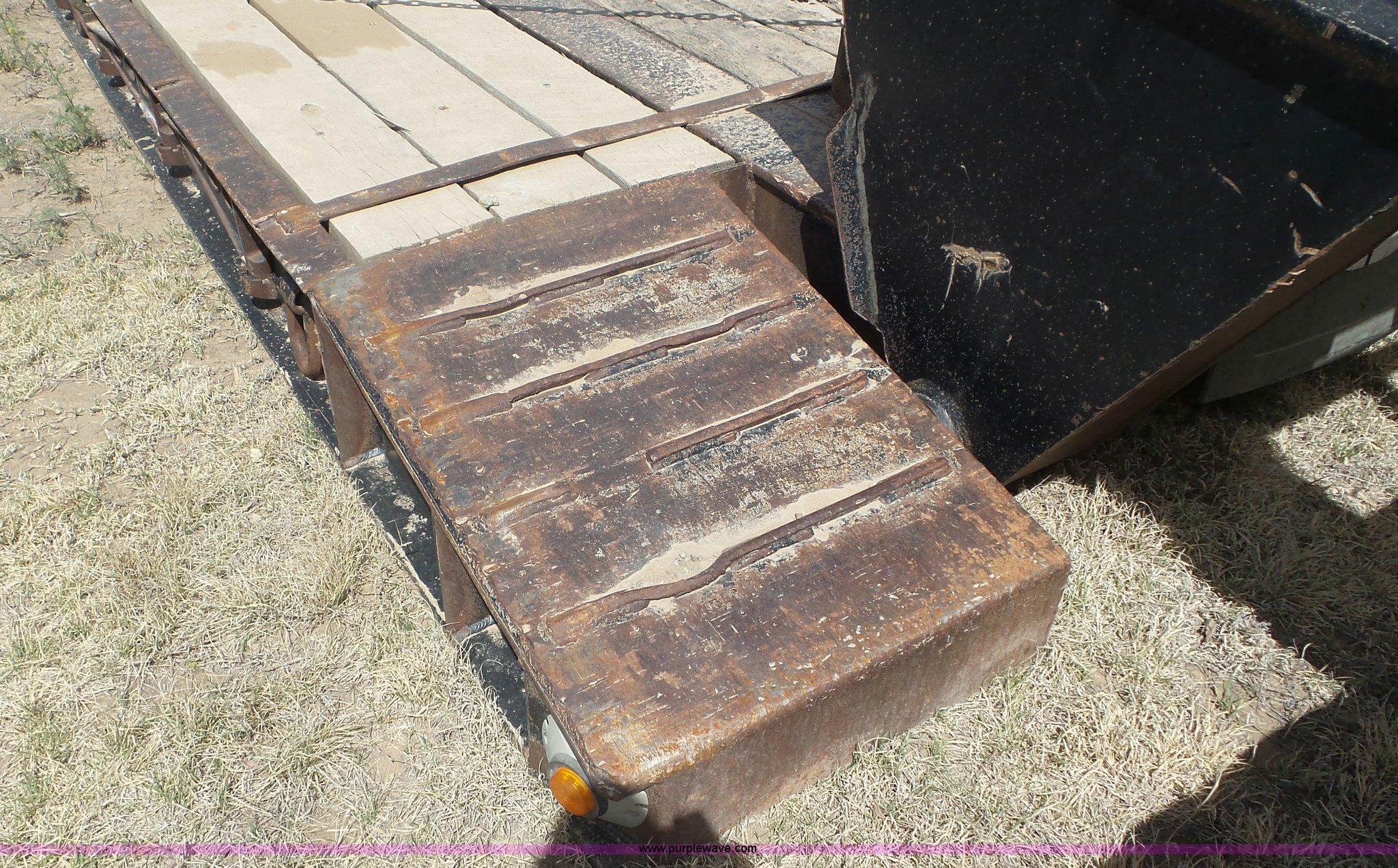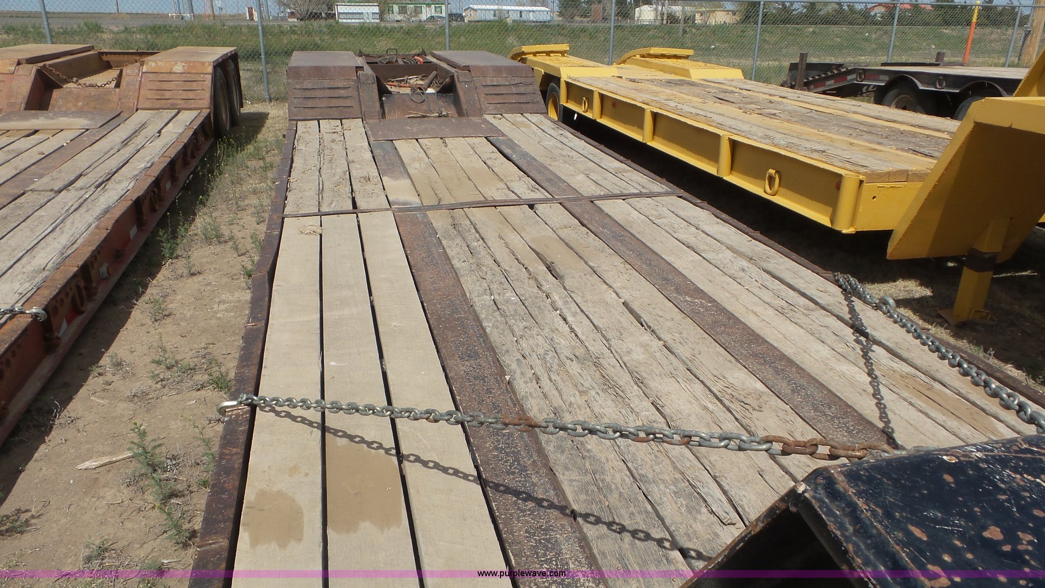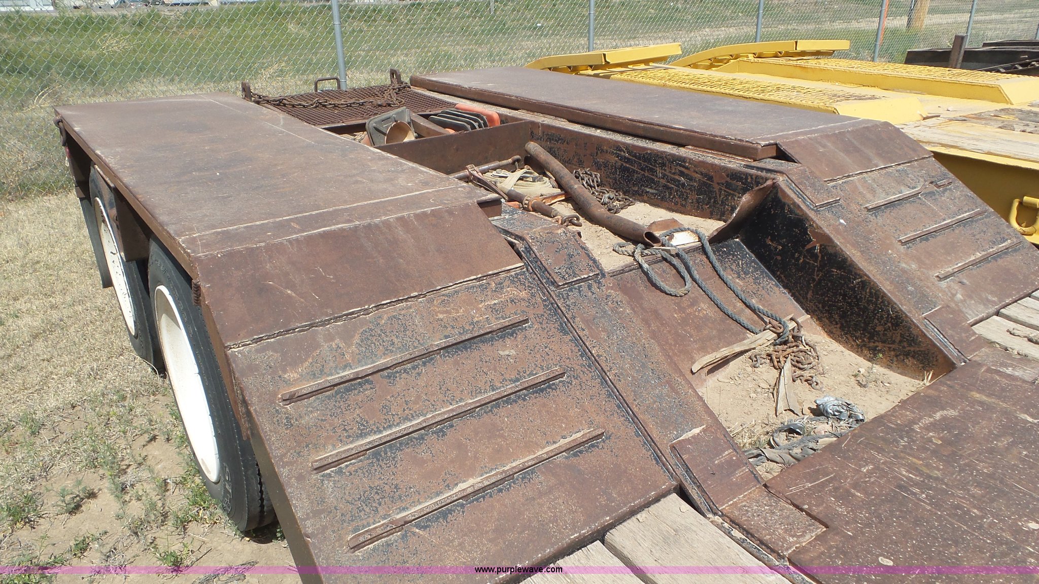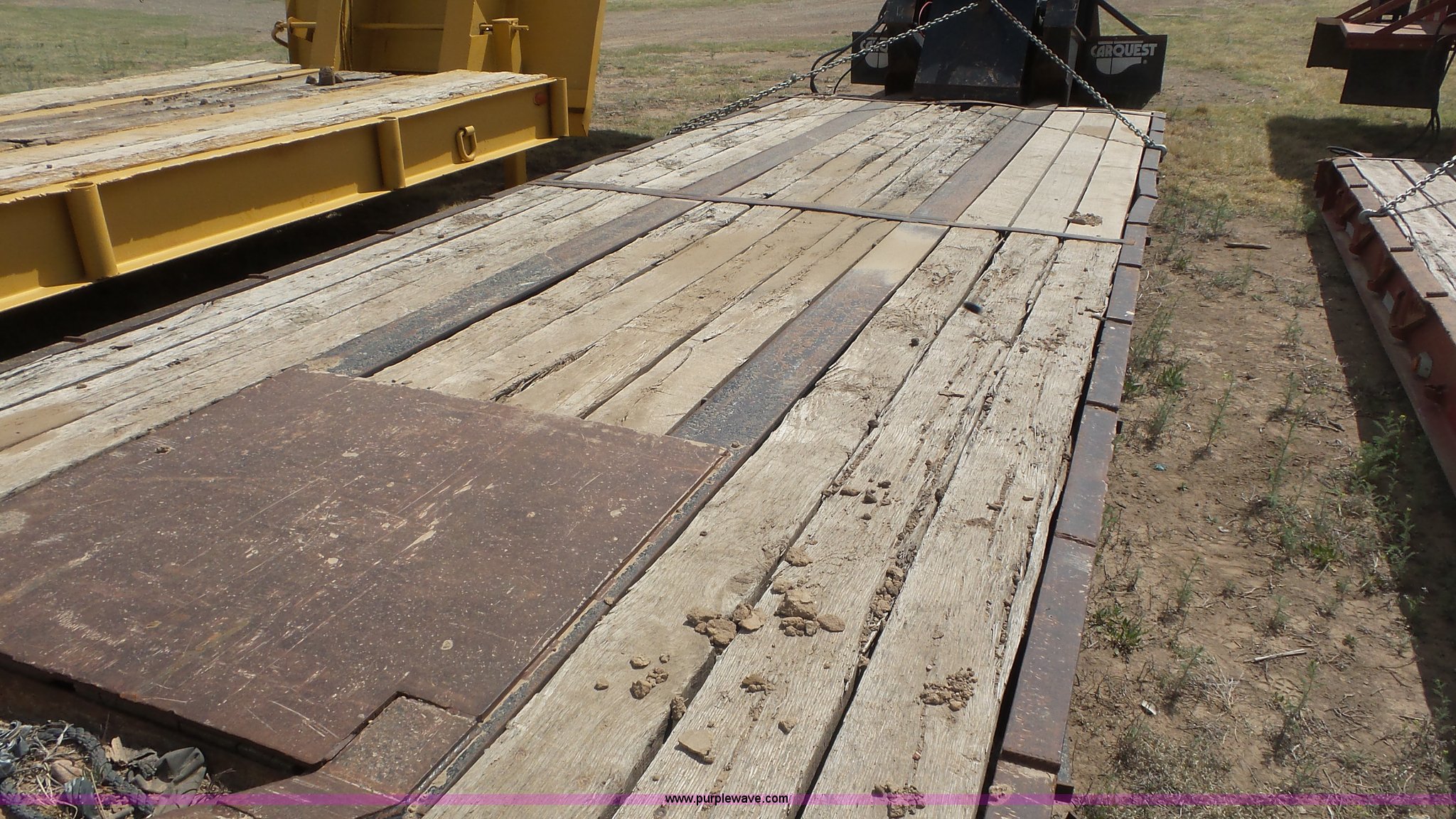 Purple Wave is selling a used Equip. Trailer in Kansas. This item is a 2006 Witzco Challenger low boy equipment trailer with the following: 45' overall length, 25'L x 101"W main deck, 9'4" upper deck, 10.5'L rear deck, 22" floor height, 12" swing out outriggers, Detachable neck, Honda GX340 gas engine, D-ring tire downs, Fifth wheel plate, Tandem axle, Spring suspension, Air brakes, 255/70R22.5 tires, GVWR 86,840 lbs, Unit# 589