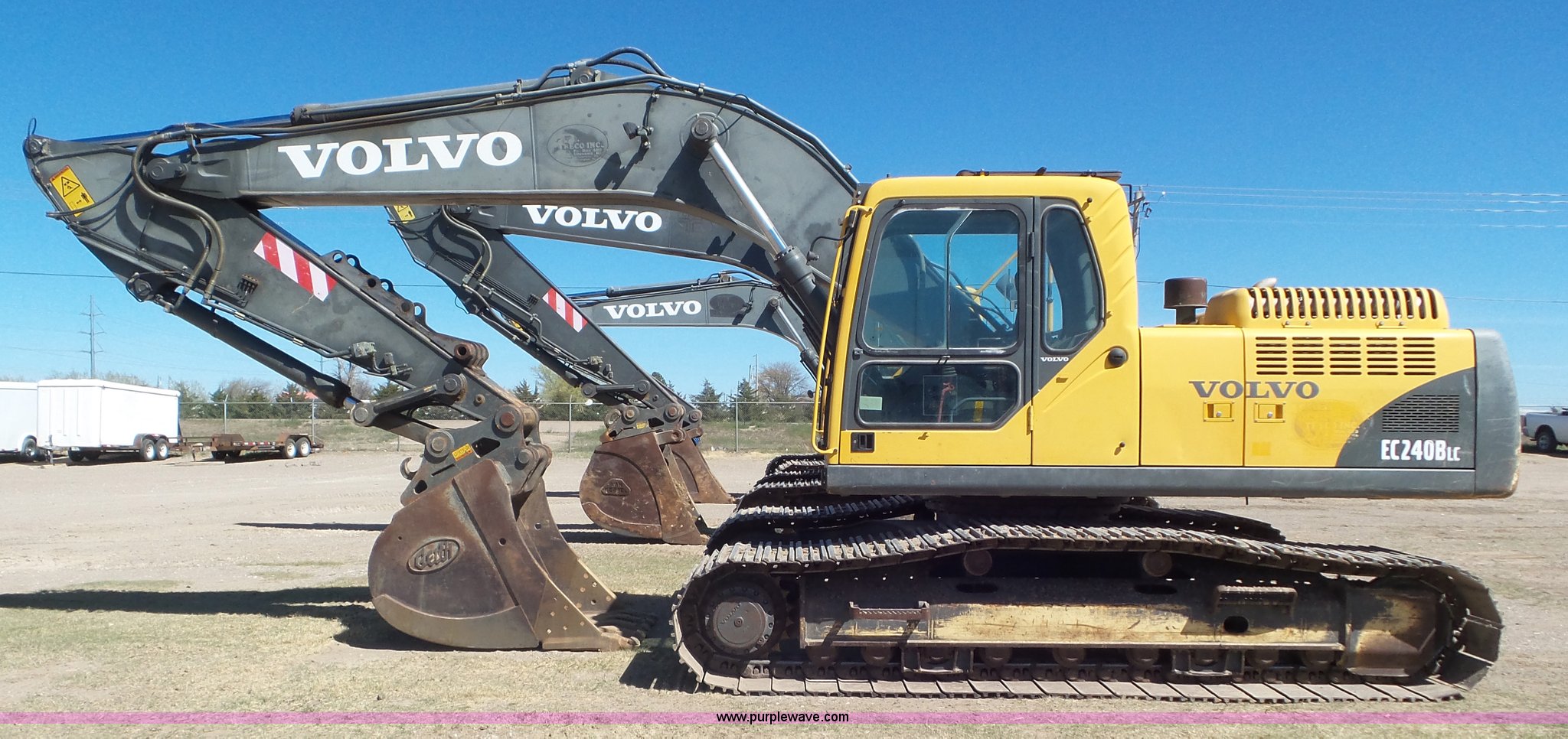 Purple Wave is selling a used Hydraulic Excavator in Kansas. This item is a 2005 Volvo EC240BL C excavator with the following: 6,481 hours on meter, Volvo D7DEBE2 7.145 six cylinder turbo diesel engine, 180 HP, Serial 00962854, Hydrostatic transmission, EROPS, AC and heat, AM/FM, Suspension seat, Pattern changer, Wipers, Front work lights, Standard boom, 12'10" stick length, Geith 42"W bucket, Weld-on cutting edge, (5) weld-on teeth, Thumb rail, Auxiliary hydraulics, 31.5"W steel triple grouser track pads, Mirror broken, Serial EC240V11734, Unit# 851