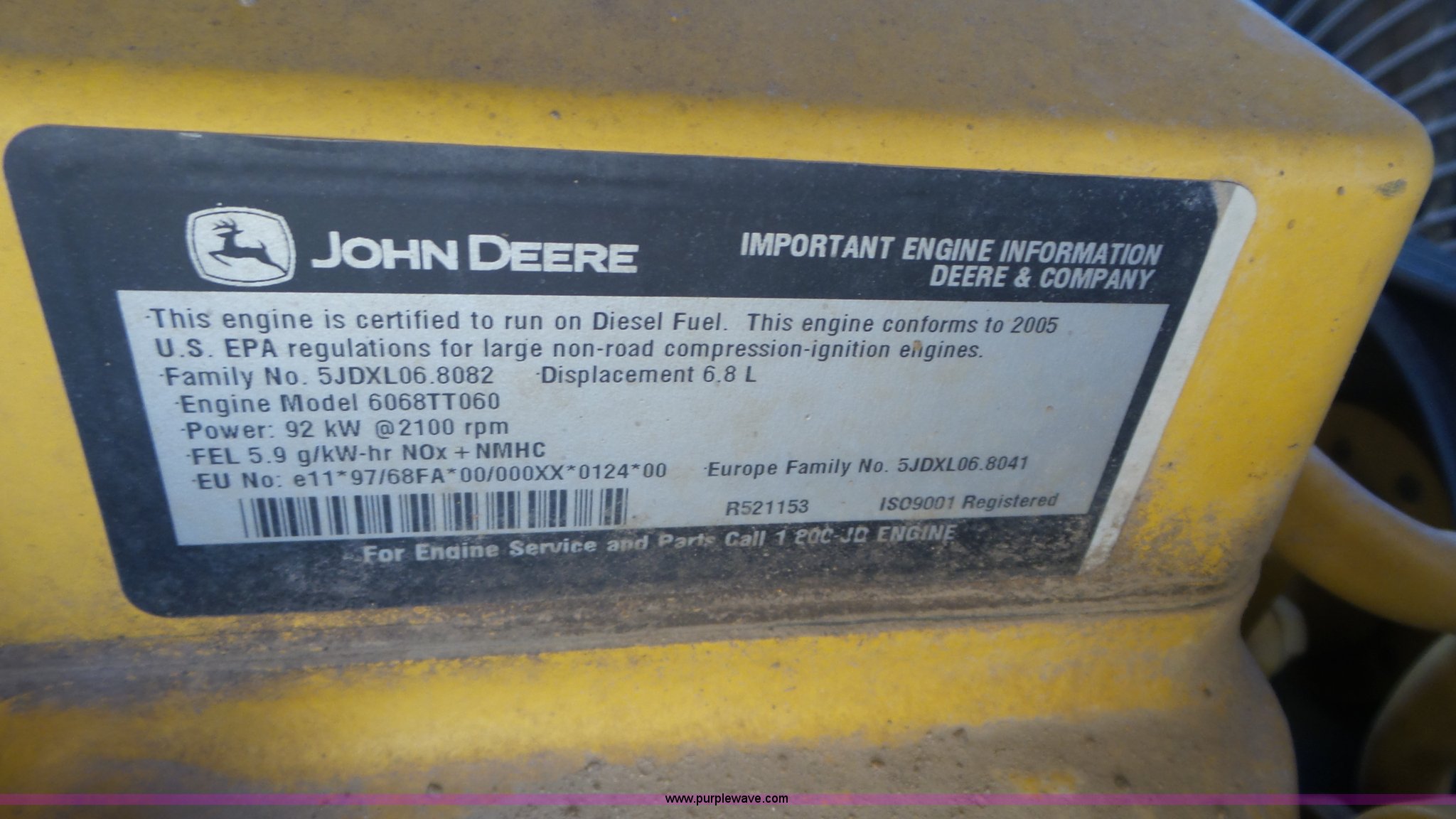 - John Deere 6068TT060 6.8L six cylinder turbo diesel engine