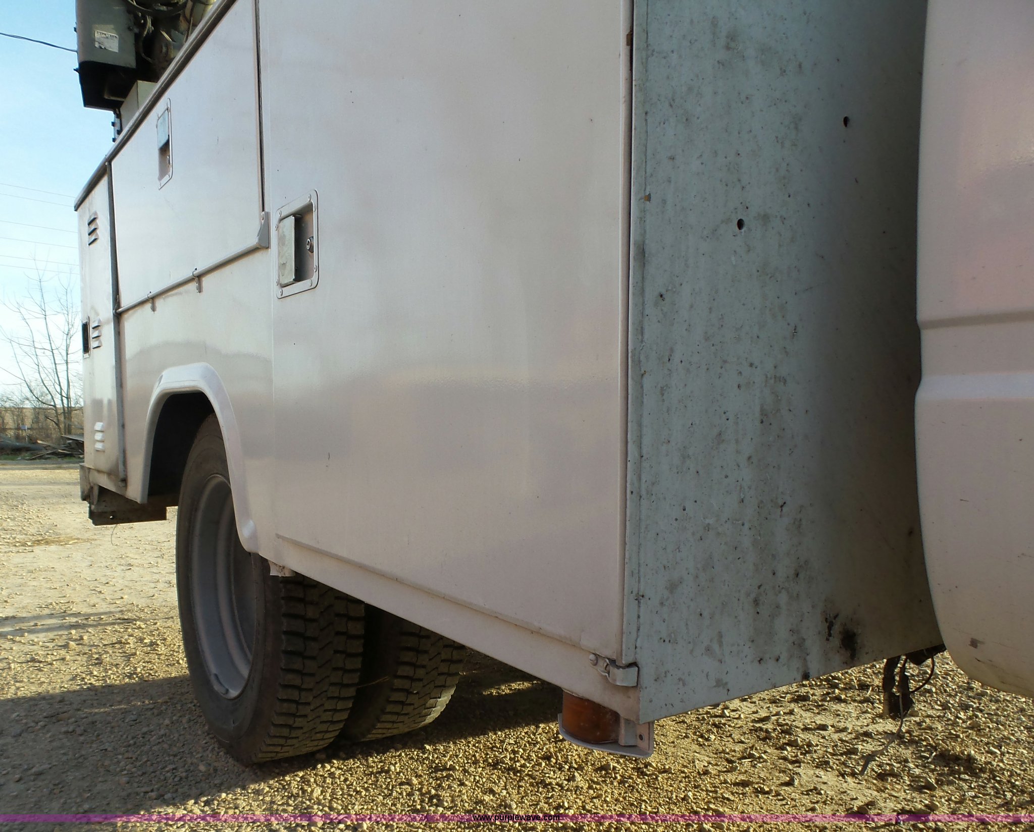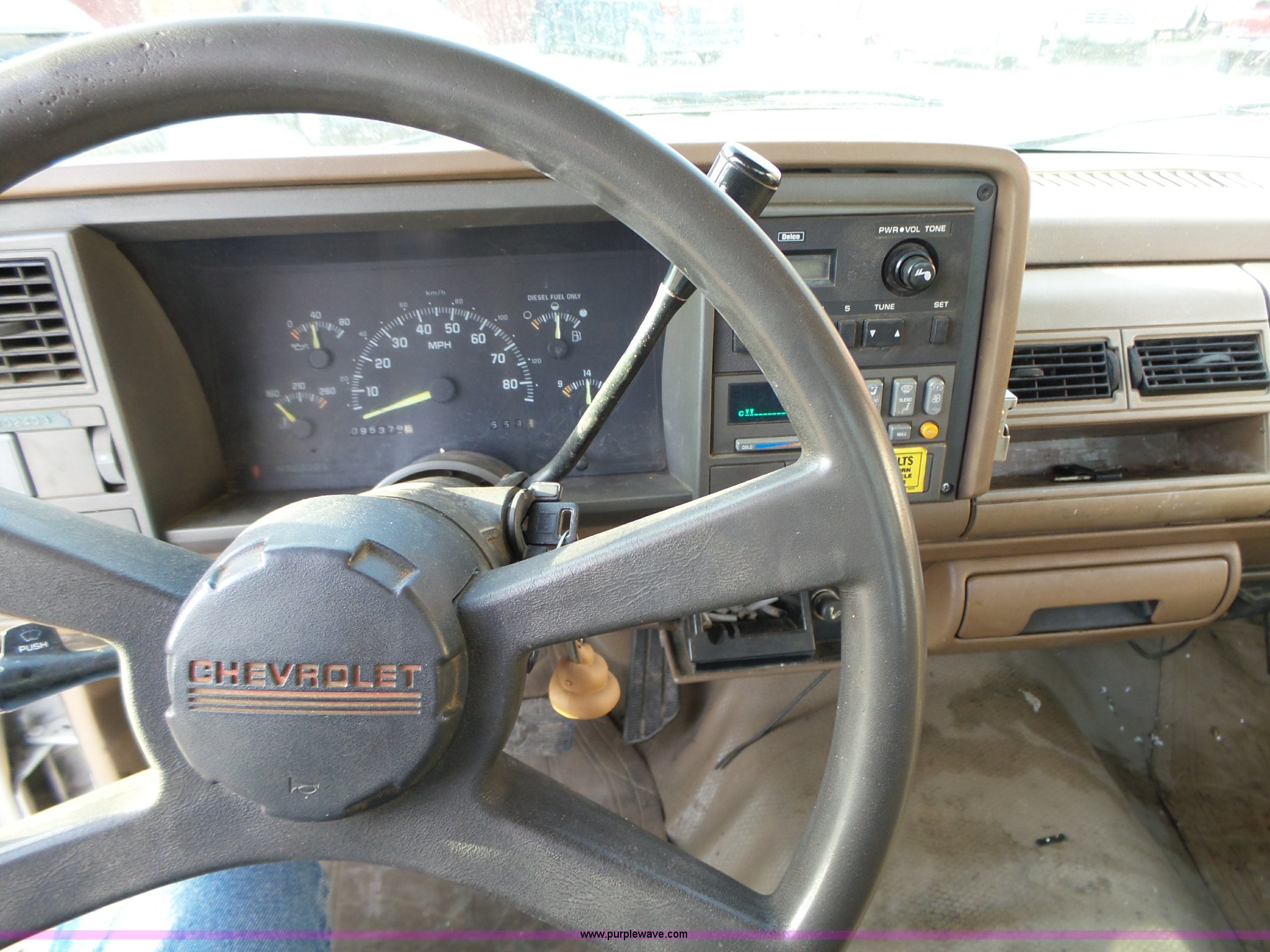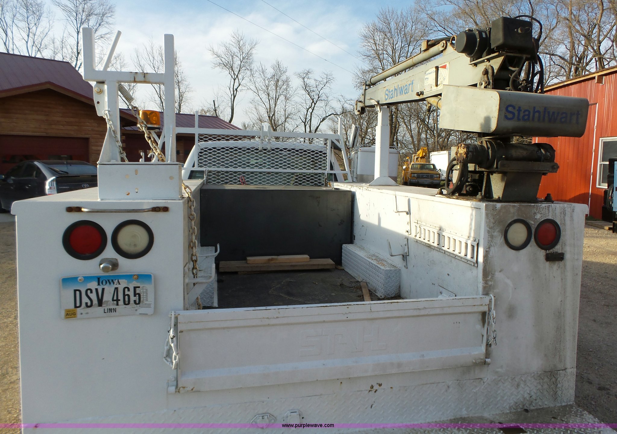 Purple Wave is selling a used Service Truck in Iowa. This item is a 1994 Chevrolet 3500HD utility truck with crane with the following: 95,378 miles on odometer, 6.5L V8 OHV 16V turbo diesel engine, Automatic transmission, AC and heat, AM, Daily utility bed, 9'L, (3) compartments per side, Fluid tank, Stahlwart crane, 15' boom length, Single sheave hook block, 3,800 lbs maximum lift capacity, (2) outriggers, Remote control, Beacon light, Single fuel tank, 138" wheelbase, Spring suspension, Hydraulic brakes, 225/70R19.5 tires, Some remote functions inoperable