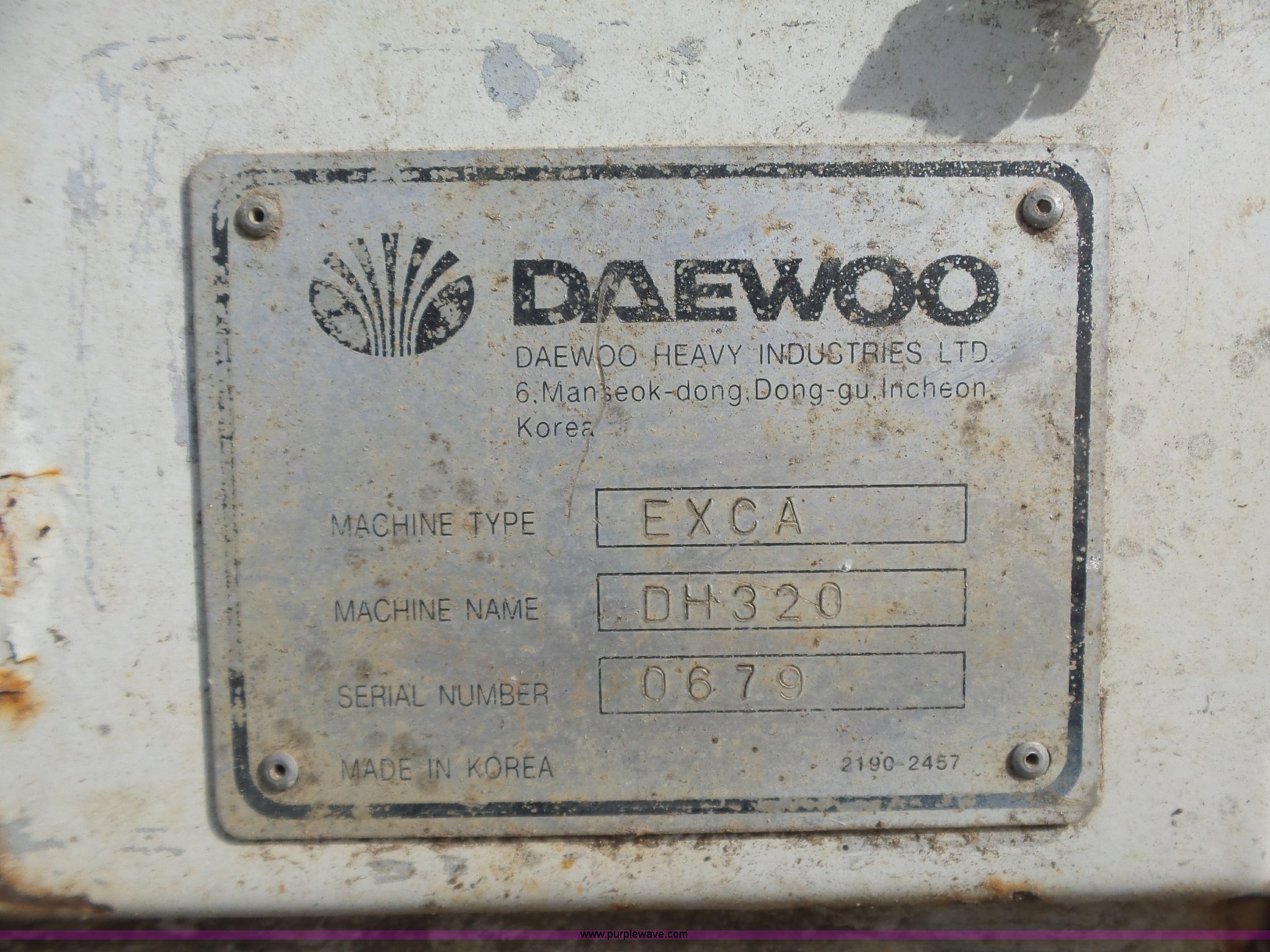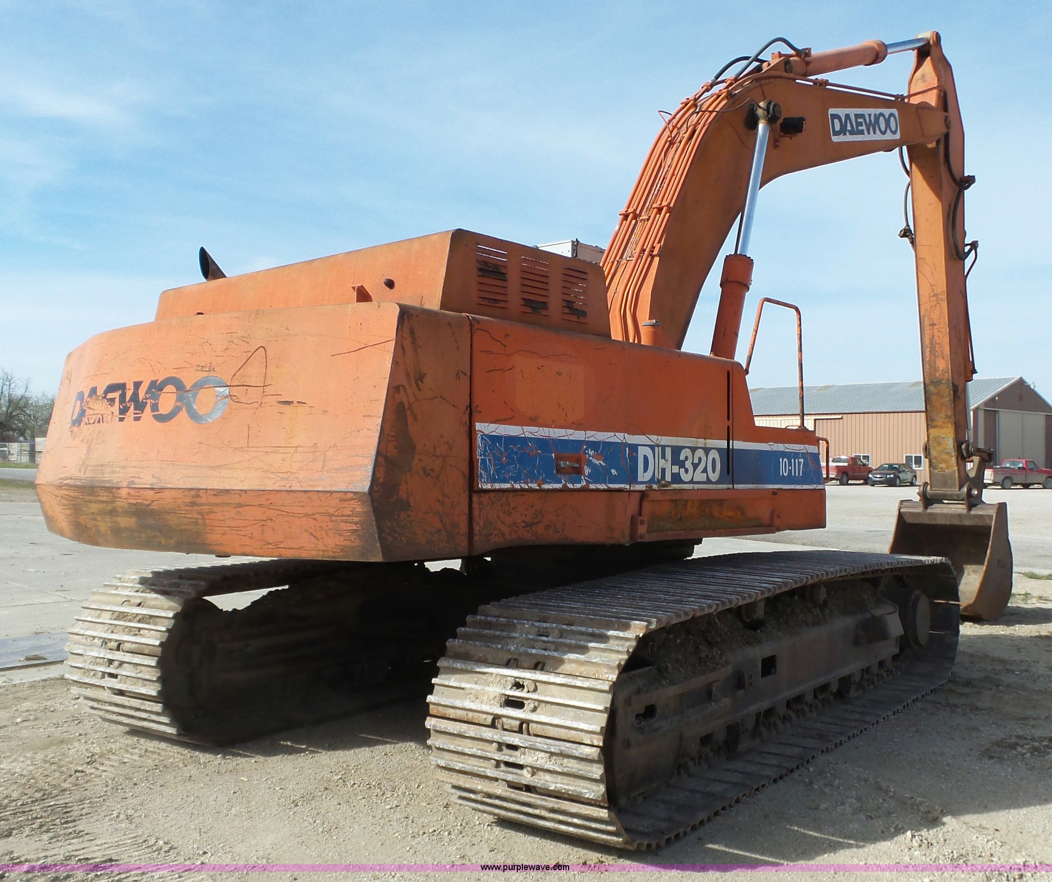 Purple Wave is selling a used Hydraulic Excavator in Kansas. This item is a 1995 Daewoo DH320 excavator with the following: Daewoo six cylinder diesel engine, Hydrostatic transmission, EROPS, AC and heat, Suspension seat, Standard boom, 163" stick length, Dart 46"W bucket, 33.5"W steel triple grouser track pads, 70,500 lbs. base operating weight, Swings slow to the right, Boom lift cylinder leak, Serial 0674, Unit# 10-117