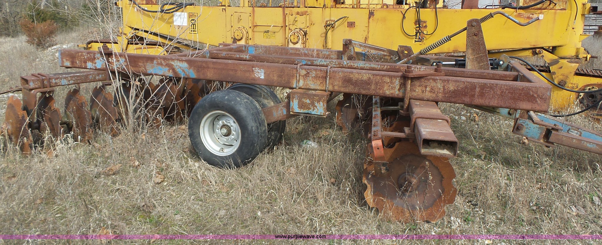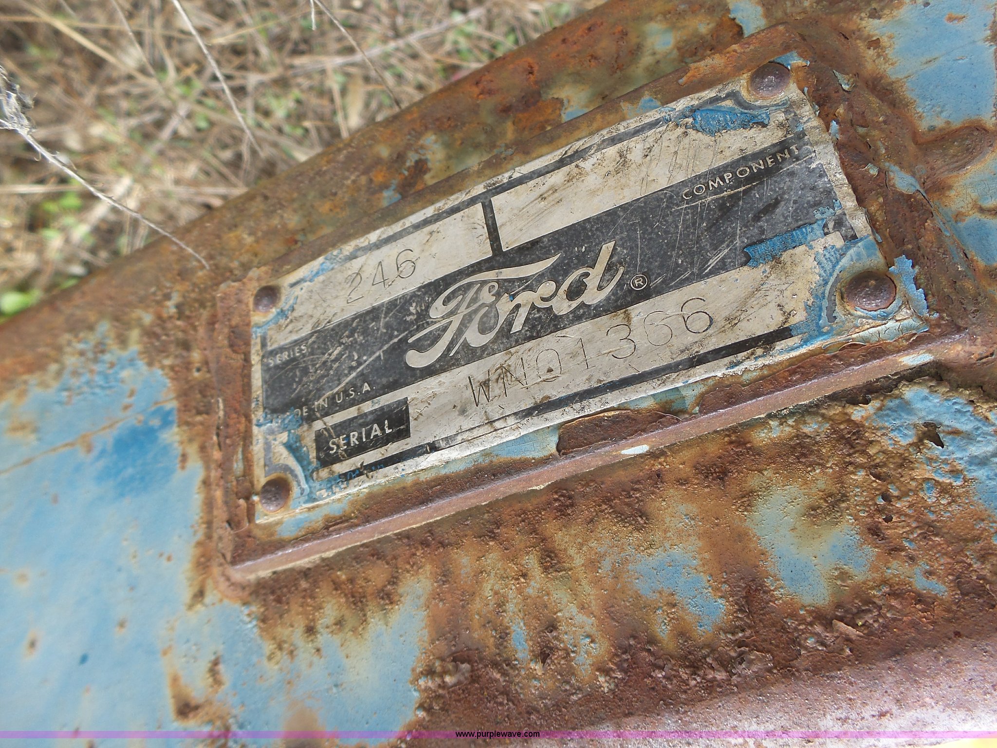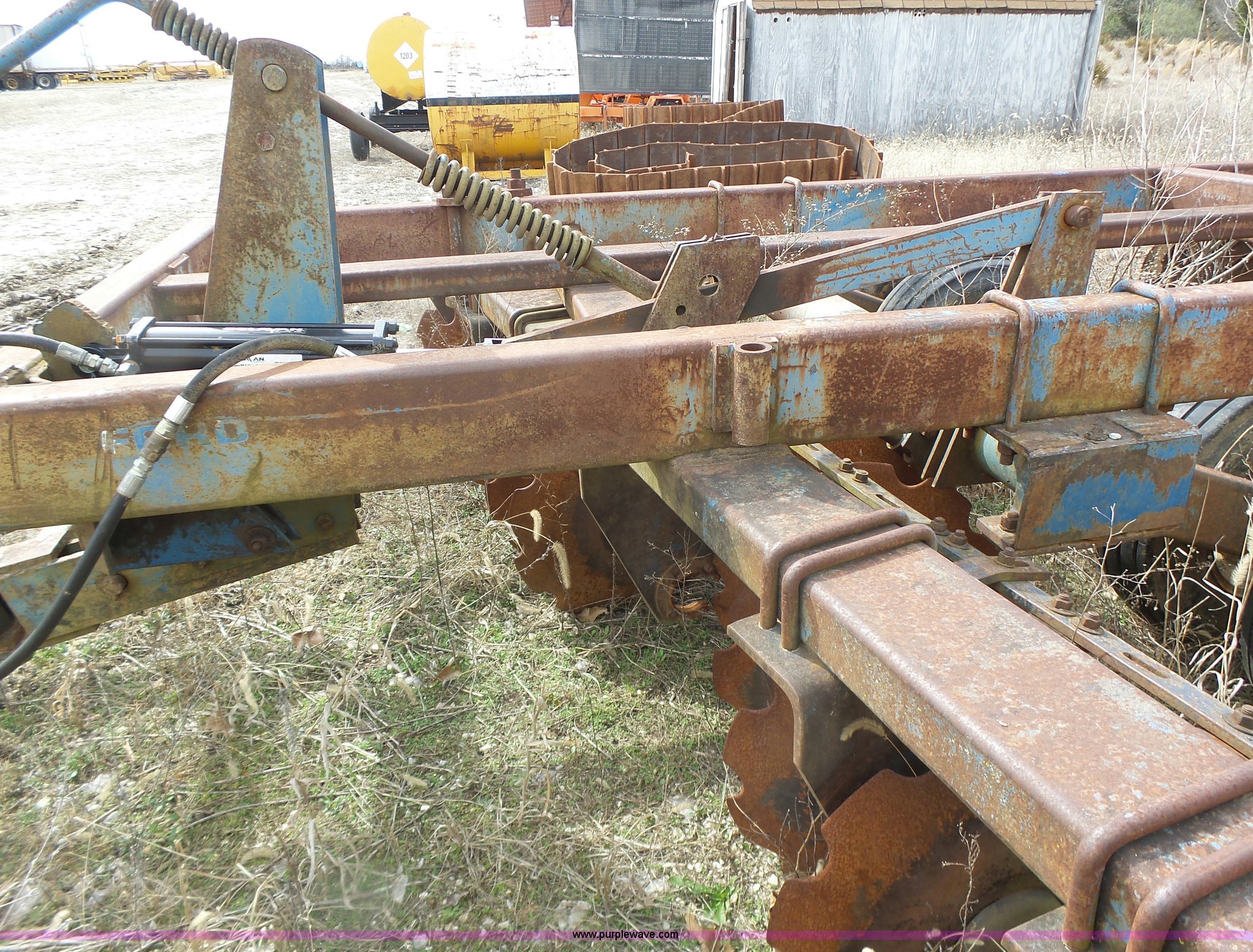 Purple Wave is selling a used Disk in Missouri. This item is a Ford 246 disk with the following: 13'W, 24" front and rear blades, 12" spacing, Disk scrapers, Hydraulic lift, Manual leveler, Pin hitch, 12.5-15 tires, Serial WN01366