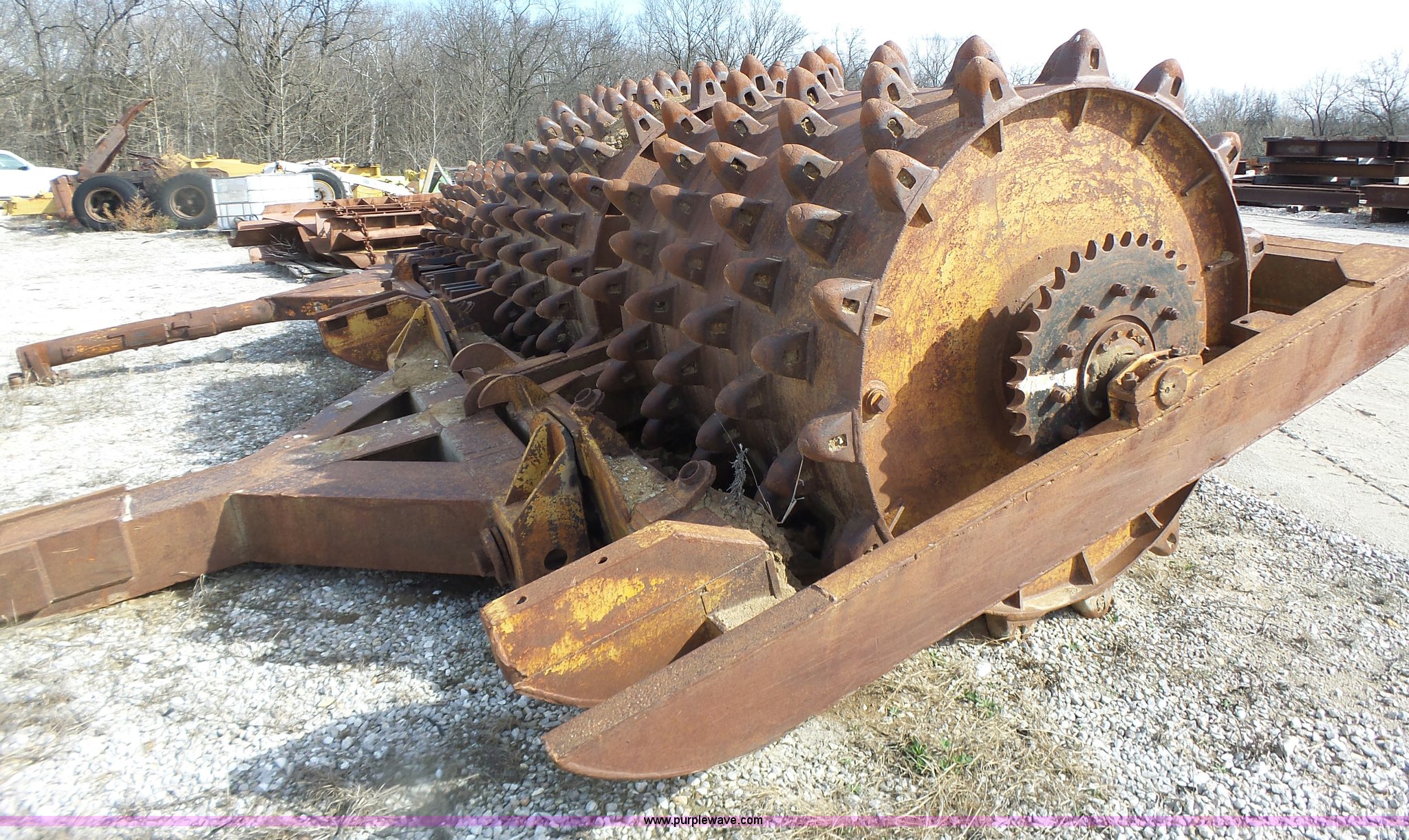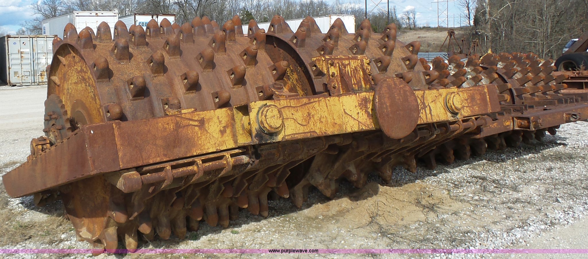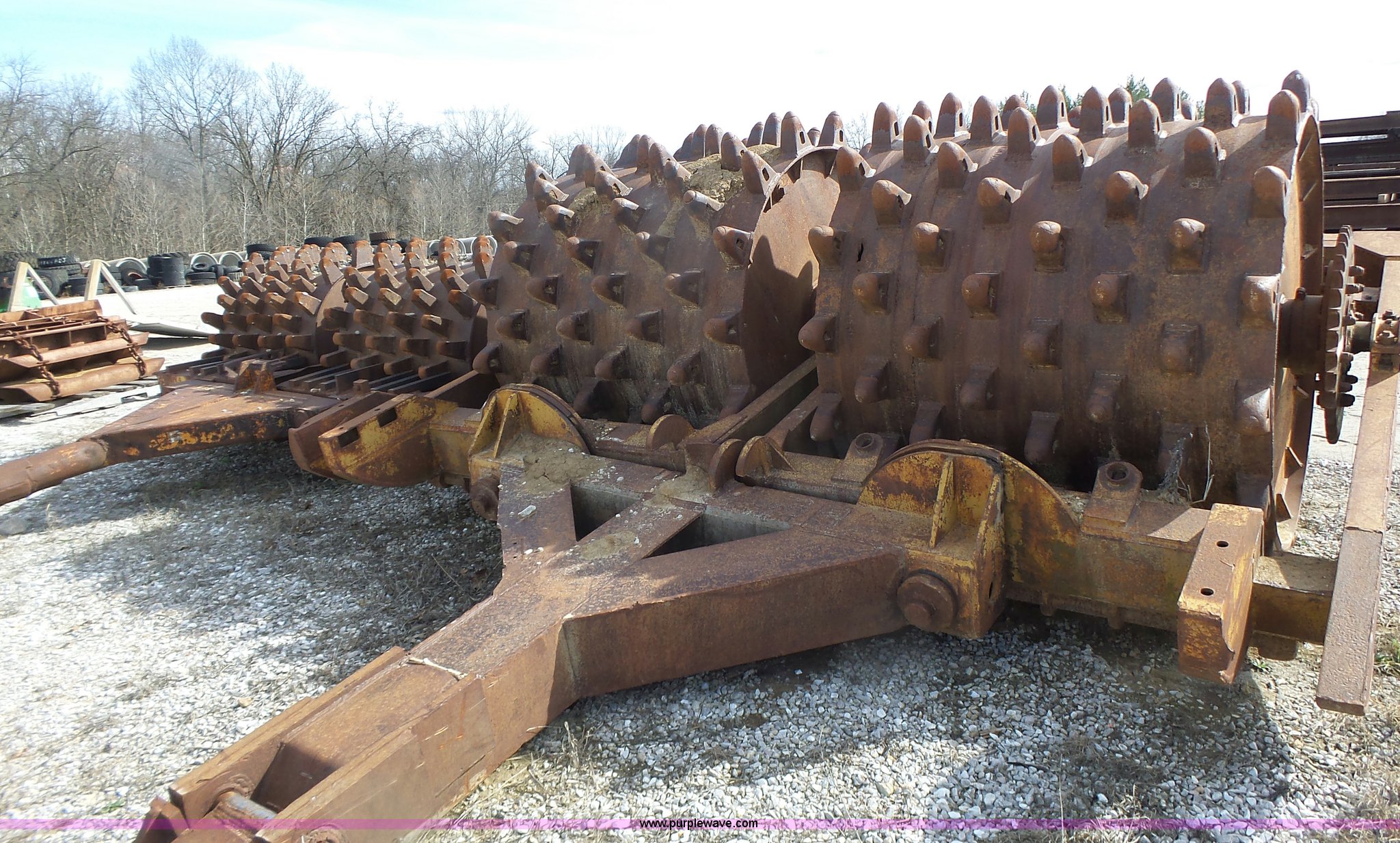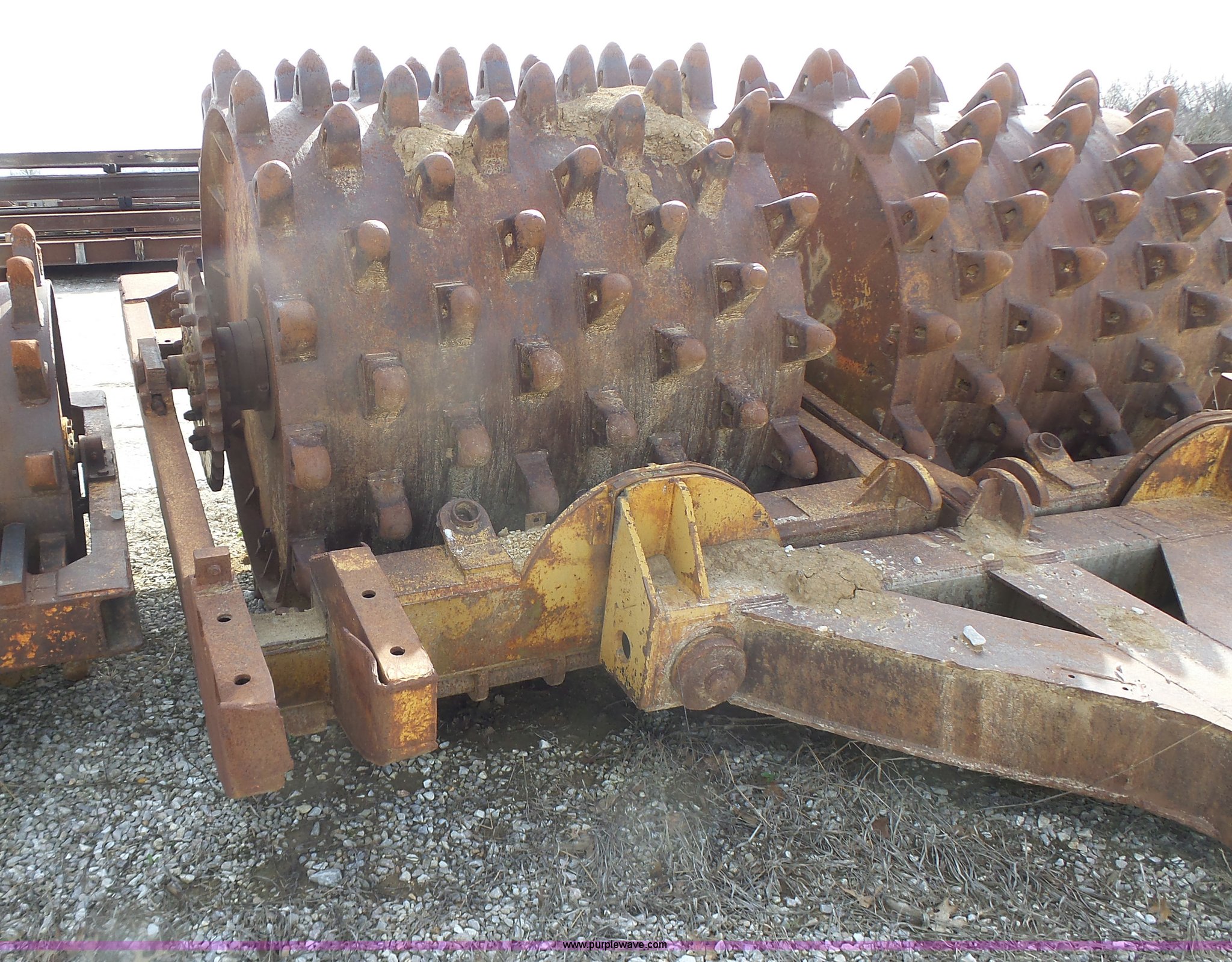 Purple Wave is selling a used Double Drum Roller Compactor in Missouri. This item is a Sheeps foot roller with the following: 13'W, Dual rollers, Pin hitch