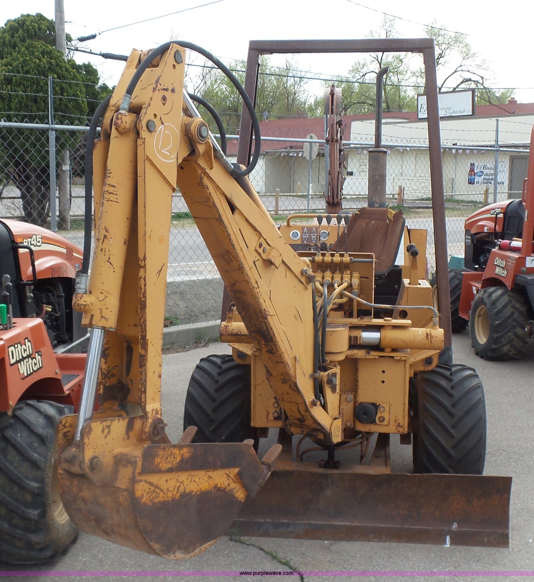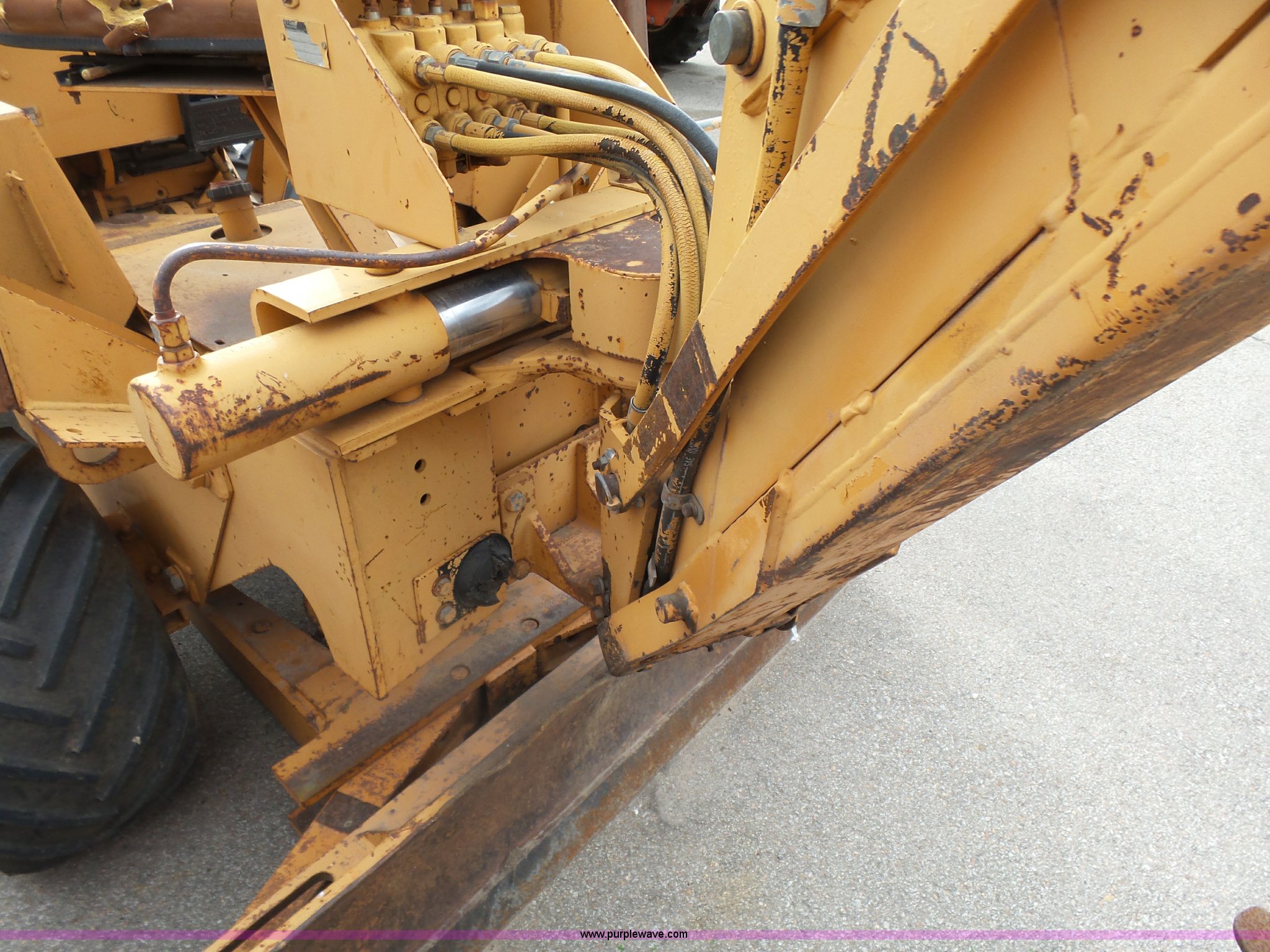 Purple Wave is selling a used Trencher or Rock Saw in Kansas. This item is a Case 360 trencher with the following: 1,069 hours on meter, Deutz two cylinder diesel engine, Hydrostatic transmission, Roll bar, Trencher, 3' maximum digging depth, 15"W backhoe bucket, 5'W back fill blade, 26 x 12.00-12 tires, Pivot on trencher worn, Recently replaced blower belts on engine, seat, filters, and ignition switch, Recently rebuilt starter and backfill blade hydraulic cylinder, Serial X1255987