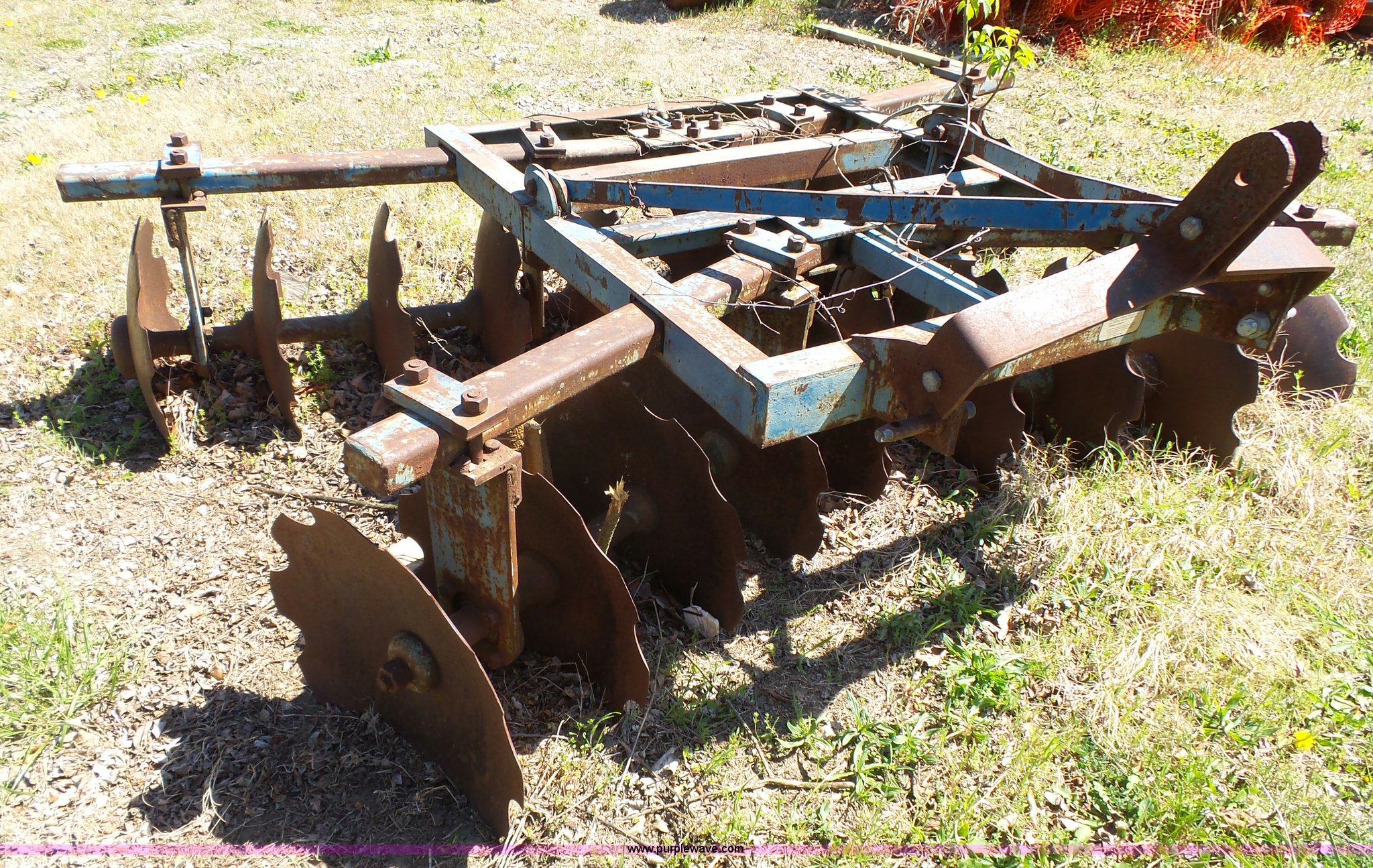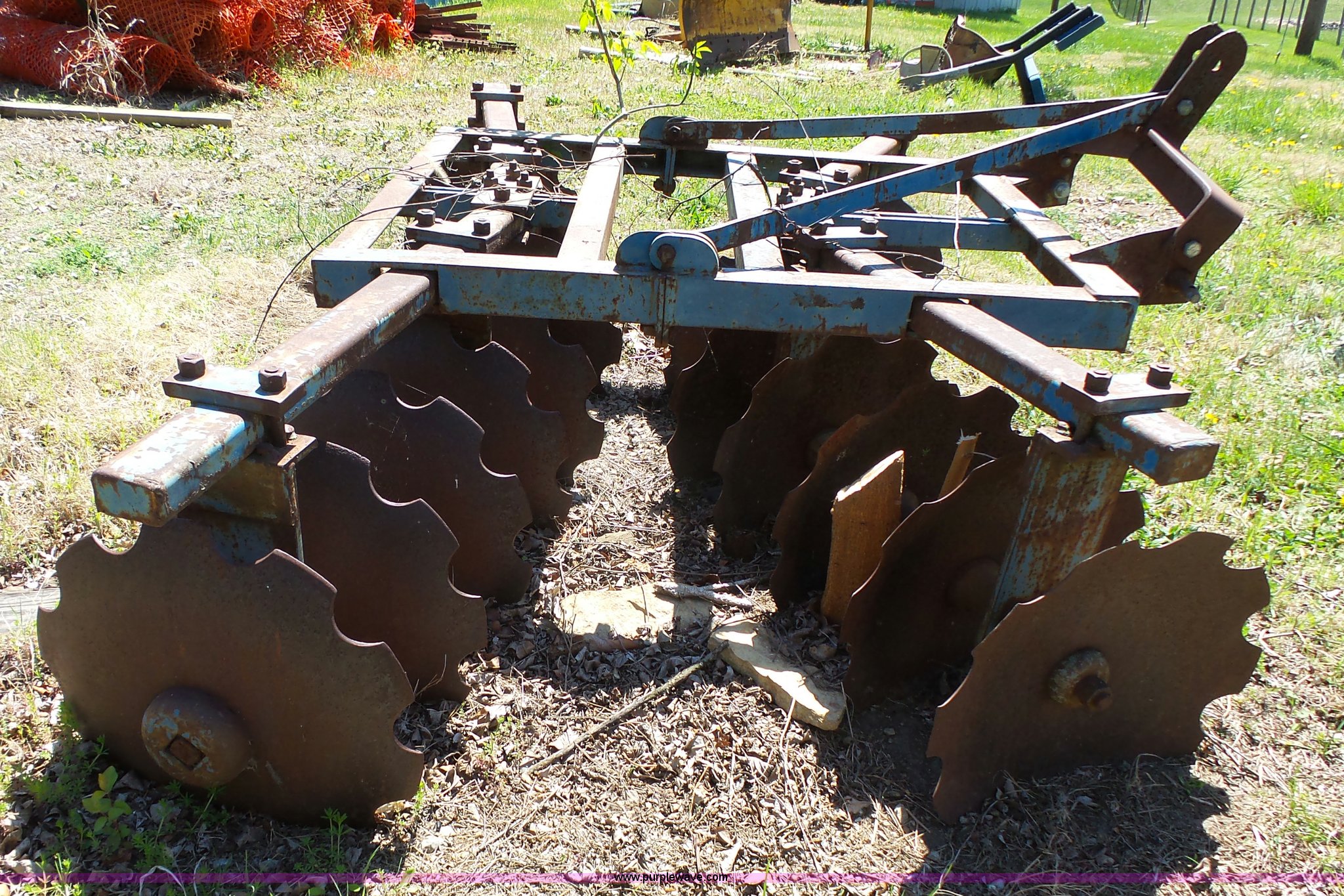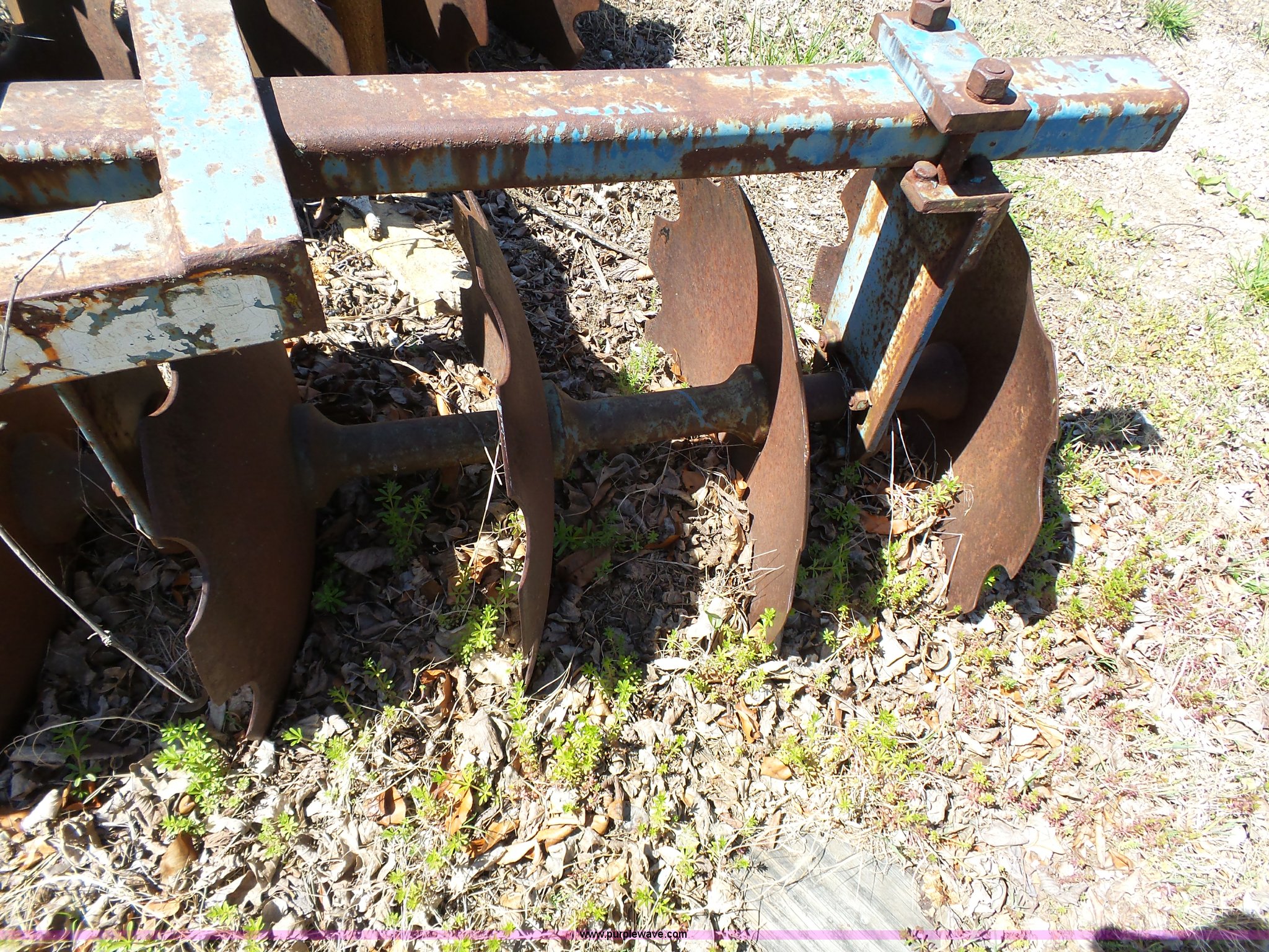 Ford disk. Model 11M2264, Series 222, 94"W, 19.5" disks, 9" spacing, Three point, One outside disk damaged, Serial 4811134. USD 450. 4401 SE Shawnee Heights Rd. Tecumseh, KS 66542