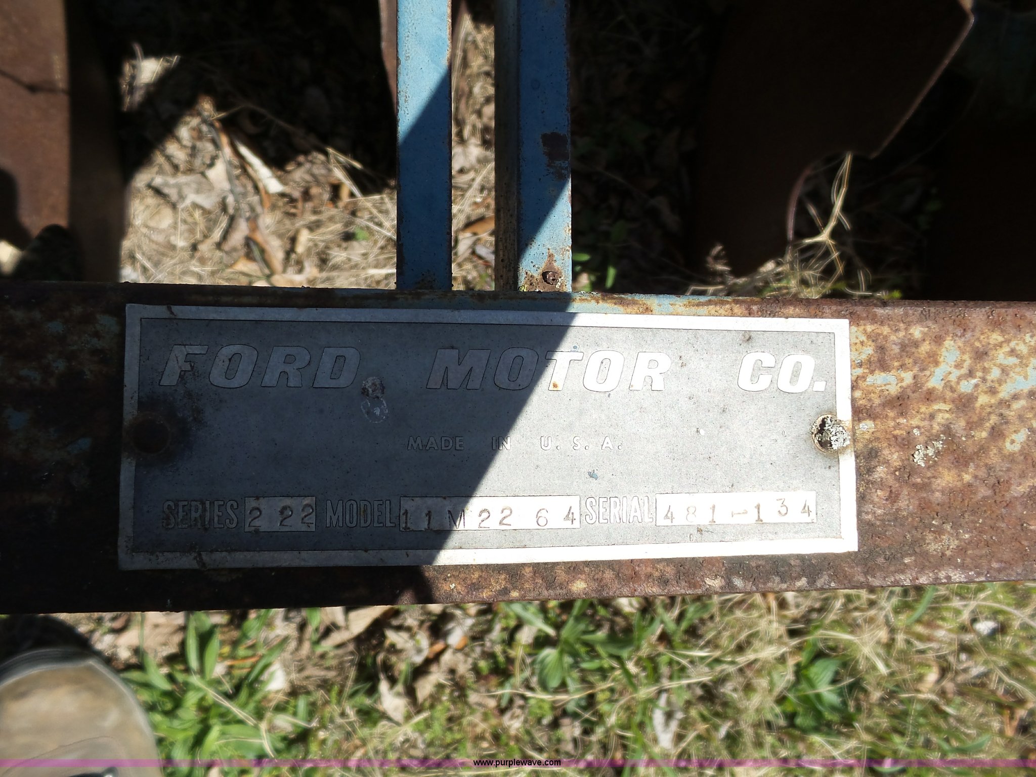 Purple Wave is selling a used Disk in Kansas. This item is a Ford disk with the following: Model 11M2264, Series 222, 94"W, 19.5" disks, 9" spacing, Three point, One outside disk damaged, Serial 4811134