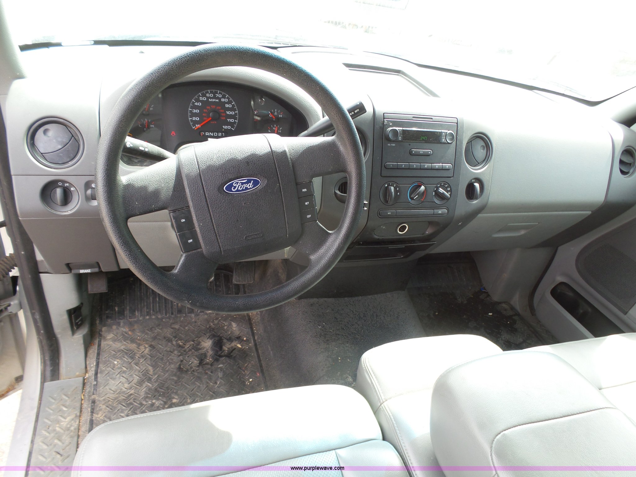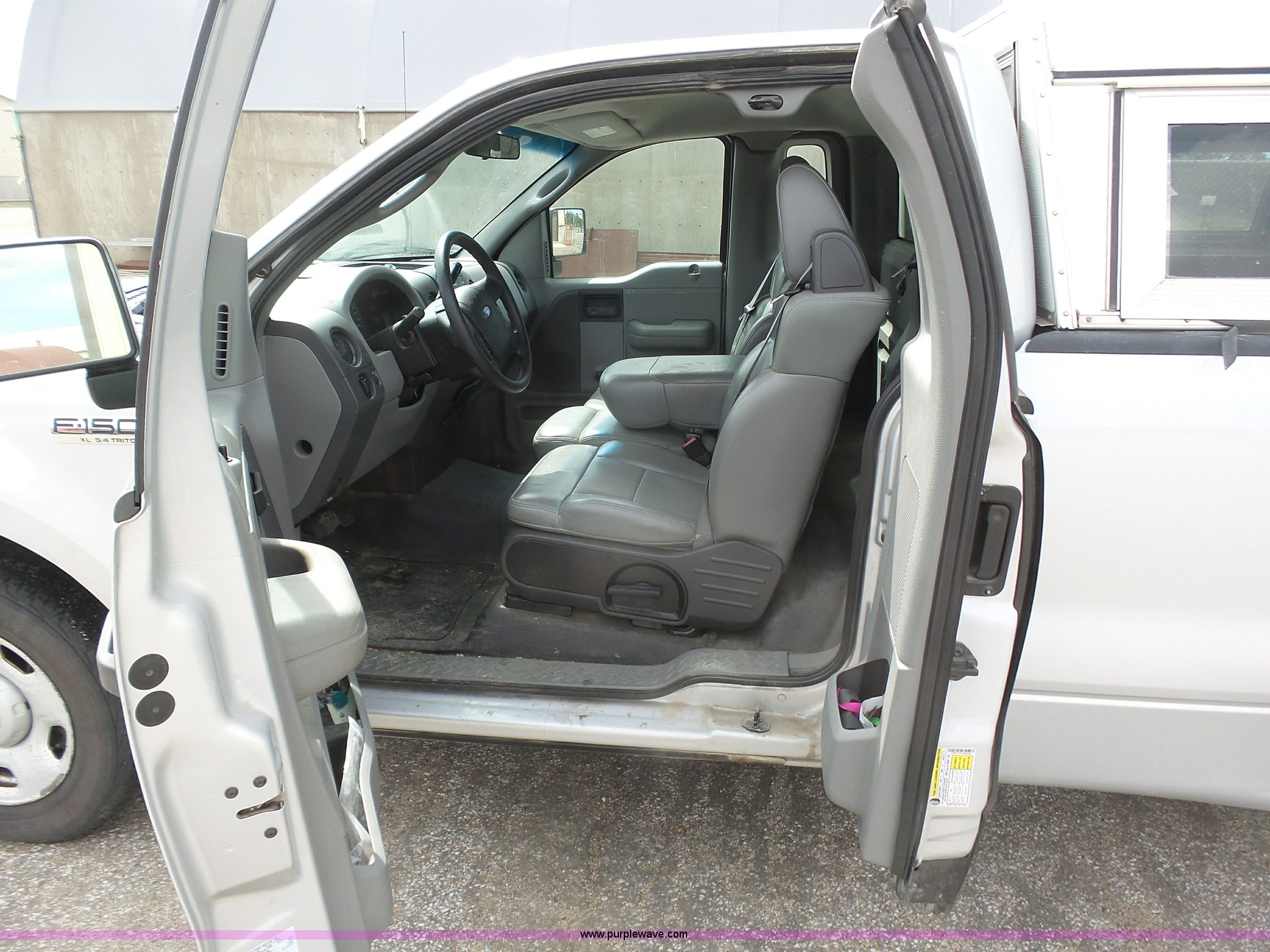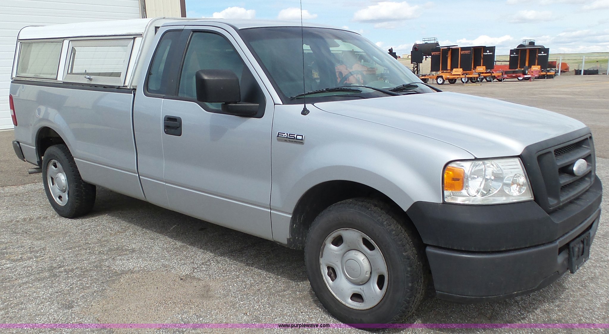 Purple Wave is selling a used 1/2 Ton Pickup or Van in Kansas. This item is a 2007 Ford F150 XL pickup truck with the following: 173,499 miles on odometer, 5.4L V8 SOHC 24V FFV gas engine, Automatic transmission, AC and heat, Tilt, Cruise, Manual windows and locks, Vinyl interior, Topper, Receiver hitch, Trailer wiring, P235/70R17 tires, Engine runs rough, Check engine light is on, One bad cylinder, Interior/exterior cosmetic damage, Drivers seat torn, Windshield cracked