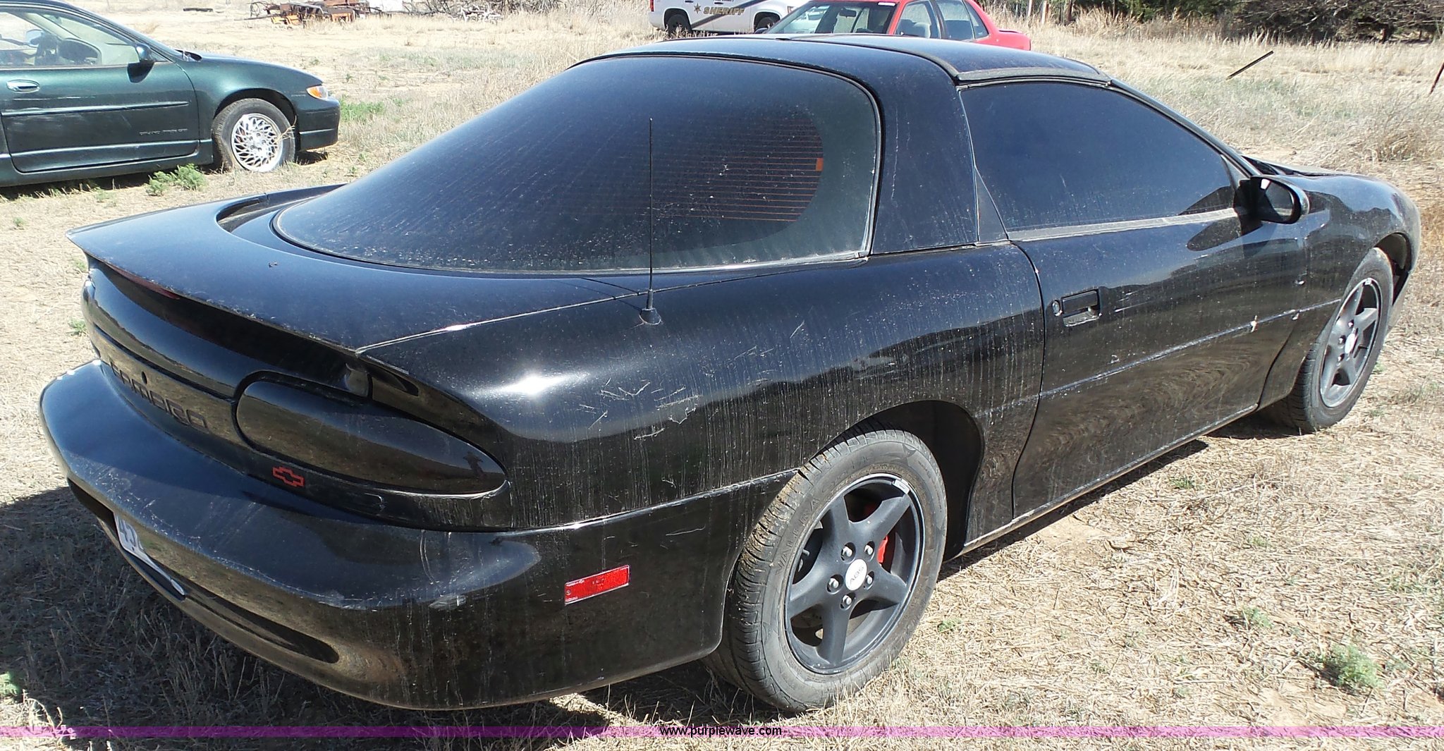 1998 Chevrolet Camaro. 158,650 miles on odometer, 5.7L V8 OHV 16V gas engine, Automatic transmission, AC and heat, Tilt, Cruise, AM/FM/CD, Power windows, locks, mirrors, and seat, Vinyl interior, Sunroof, 245/50ZR16 tires, Interior/exterior cosmetic damage. Kansas title. 2G1FP22G9W2140298. Ford County Sheriff's Office. 10972 113 Rd. Dodge City, KS 67801