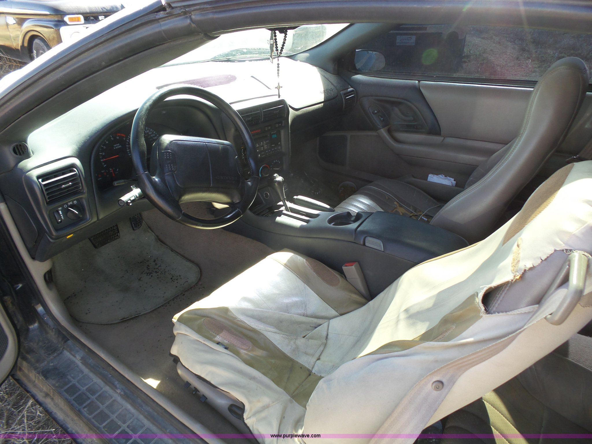 Purple Wave is selling a used Passenger Vehicle in Kansas. This item is a 1998 Chevrolet Camaro with the following: 158,650 miles on odometer, 5.7L V8 OHV 16V gas engine, Automatic transmission, AC and heat, Tilt, Cruise, AM/FM/CD, Power windows, locks, mirrors, and seat, Vinyl interior, Sunroof, 245/50ZR16 tires, Interior/exterior cosmetic damage