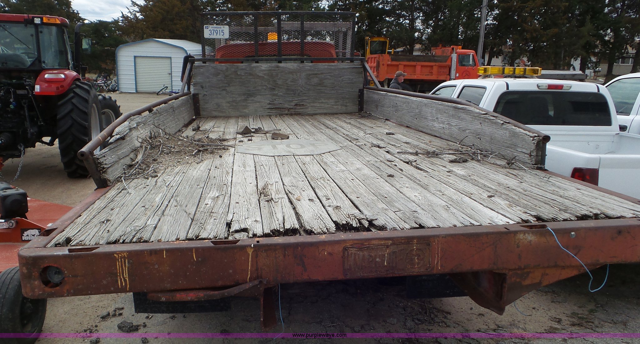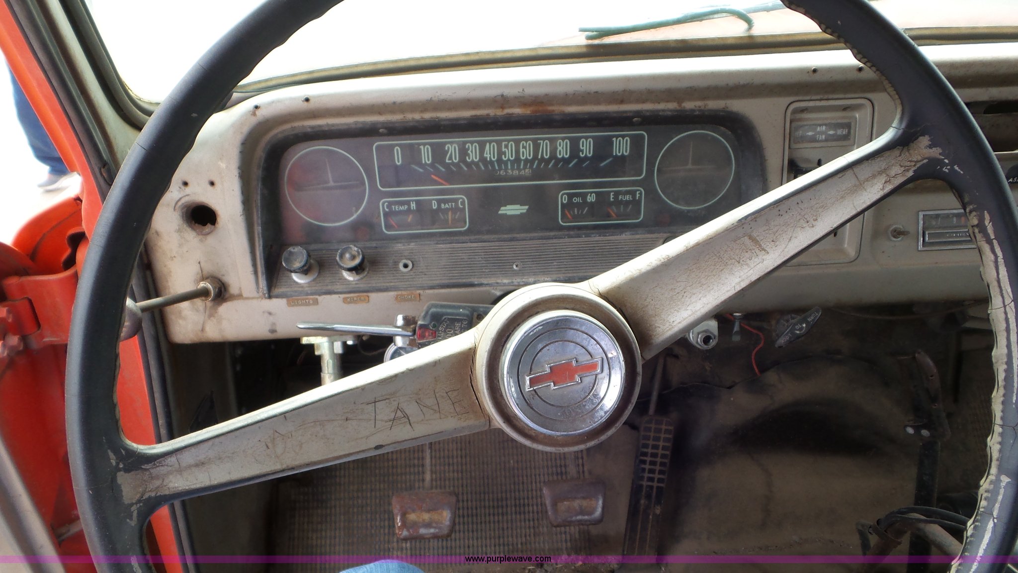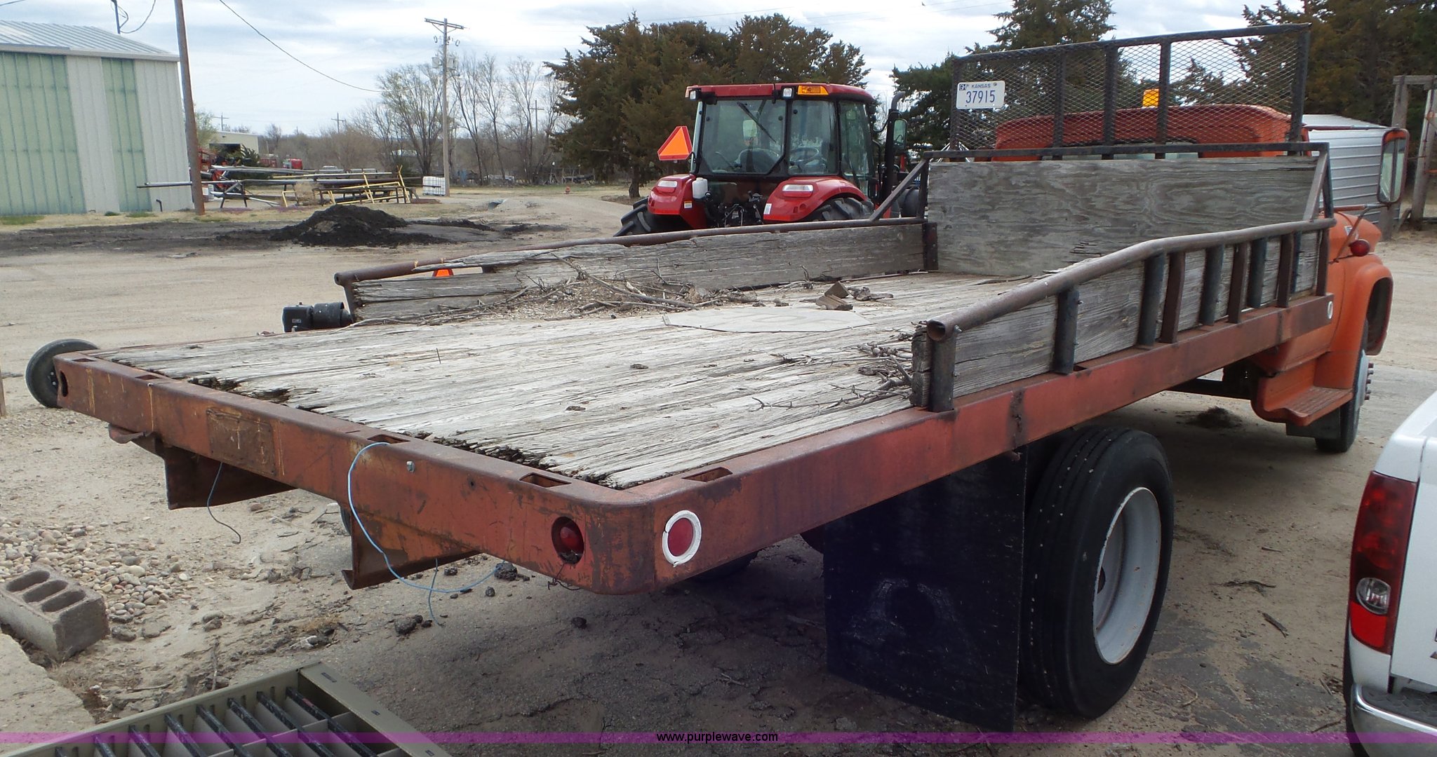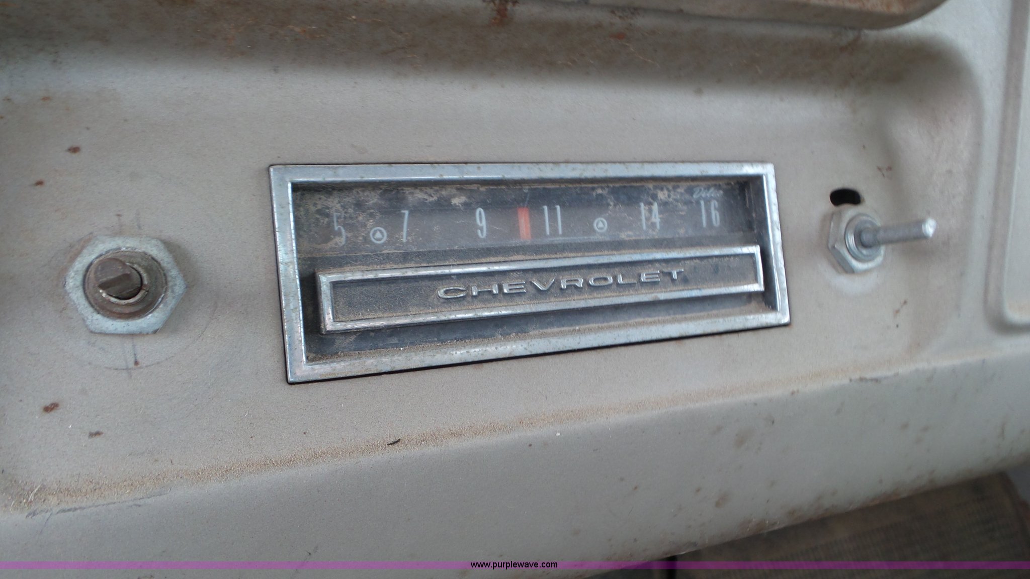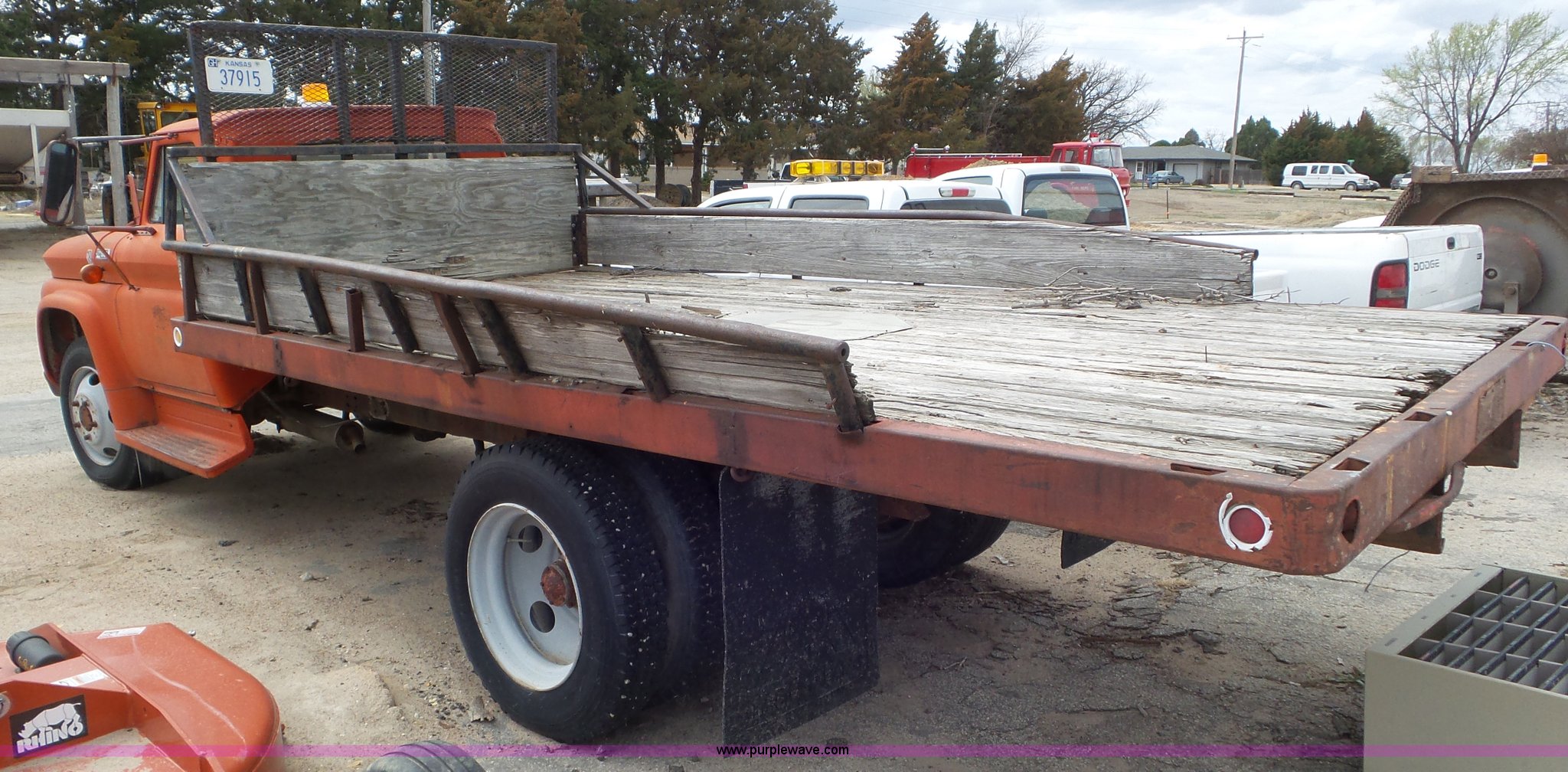 Purple Wave is selling a used Flat Bed Truck in Kansas. This item is a 1965 Chevrolet C60 dump flatbed truck with the following: 6,384 miles on odometer, 292 C.I.D. six cylinder gas engine, Four speed manual transmission, Single axle, Heat, AM/FM, Suspension seat, PTO, 16'L x 8'W dump flatbed, Wood floor, Single hoist, Single fuel tank, Spring suspension, Hydraulic brakes, 9-22.5 tires, Non-operational unit